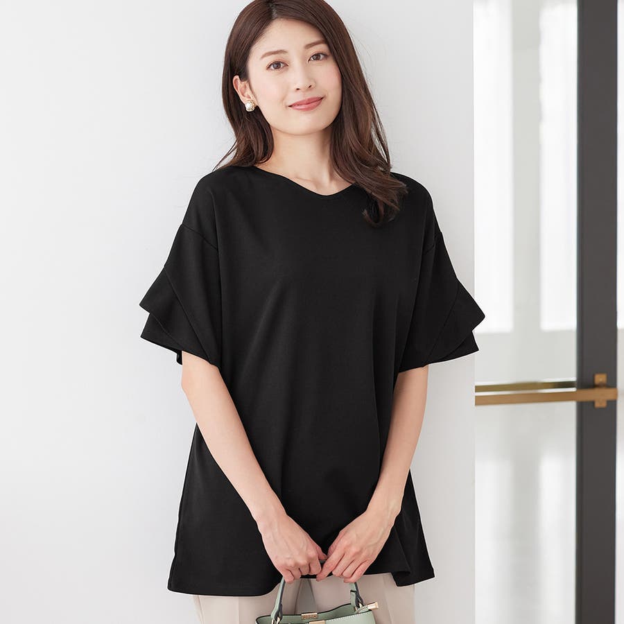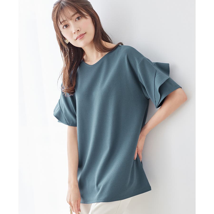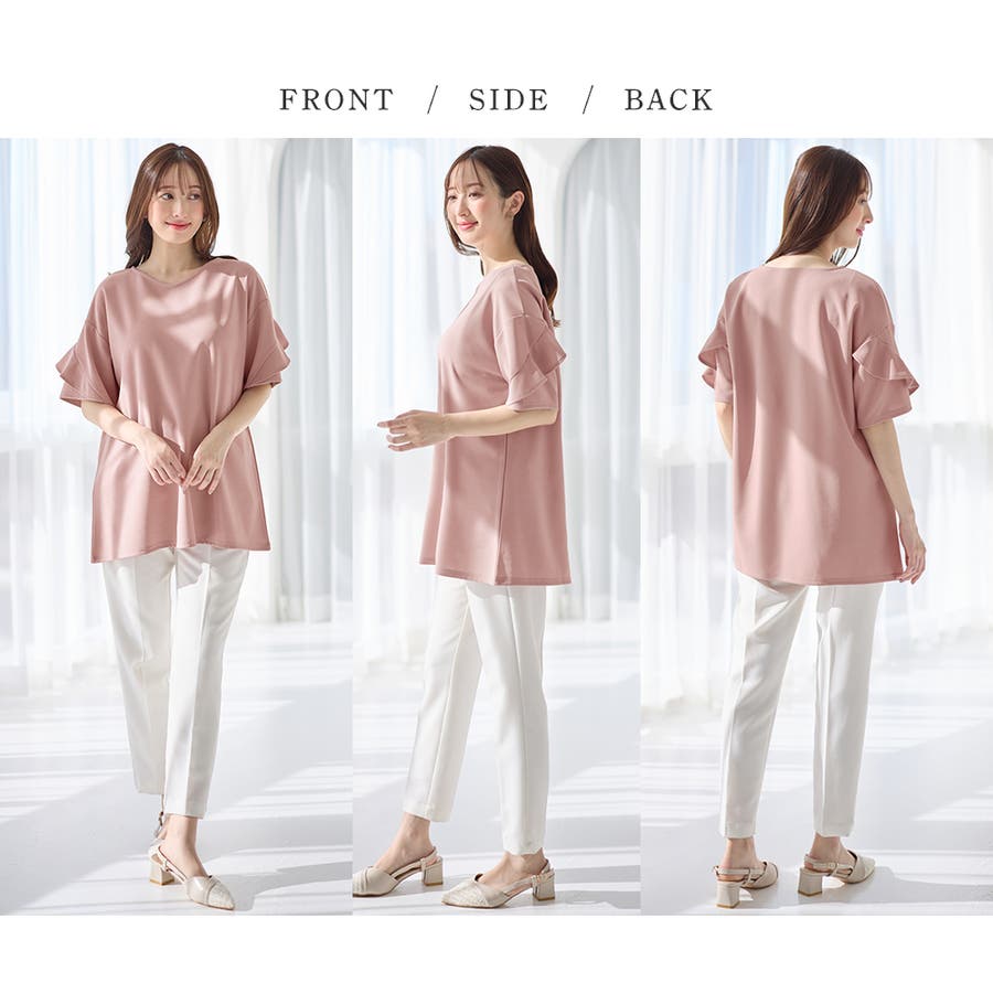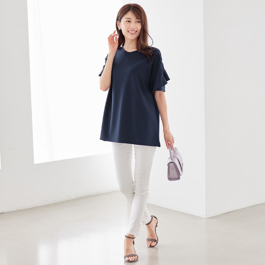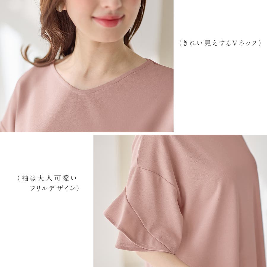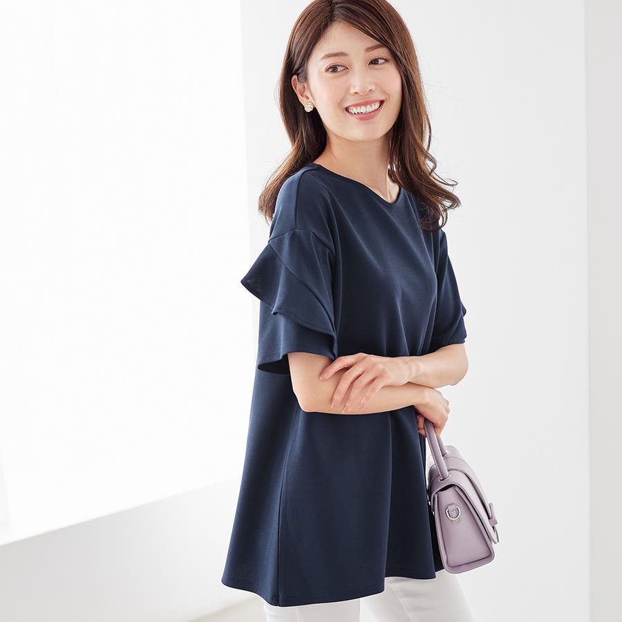 【お客様の声にお応えしました!】上品キレイな袖フリルで可愛く華奢魅せ。キレイなAラインシルエットでおしゃれに体型カバー。