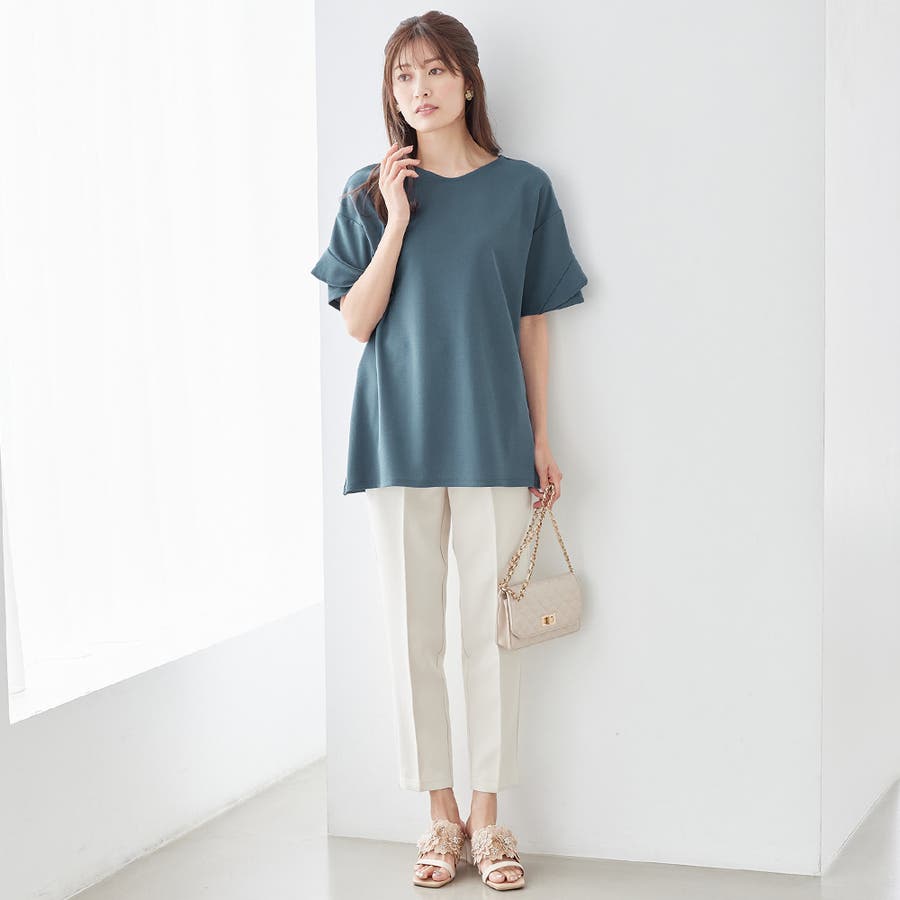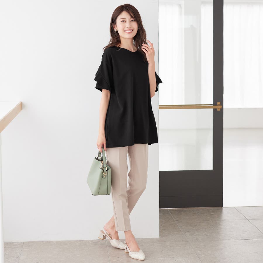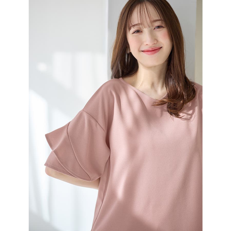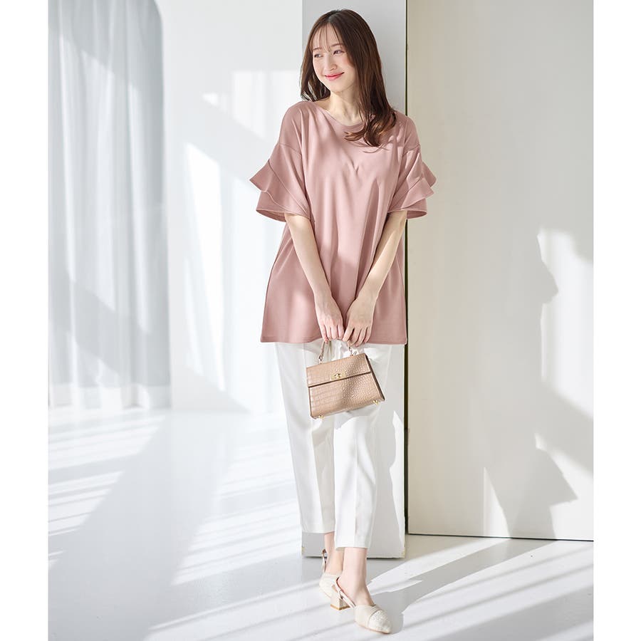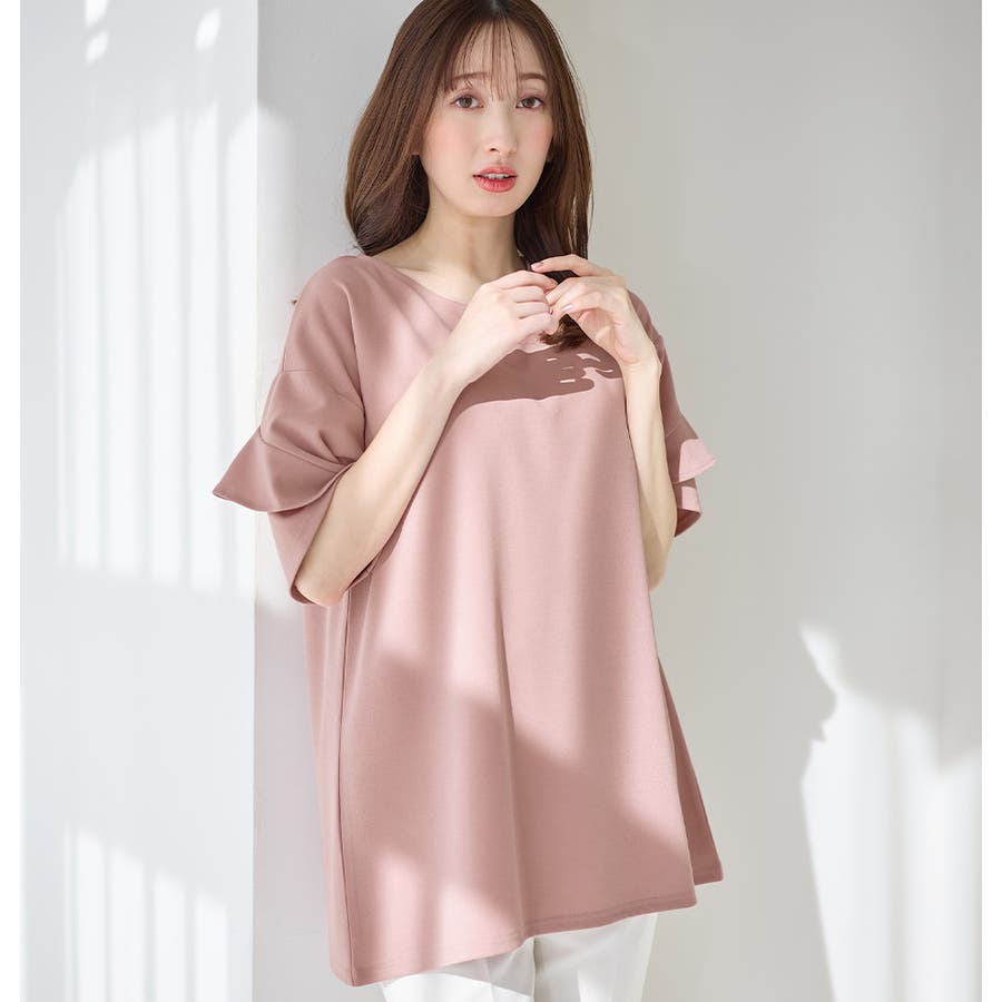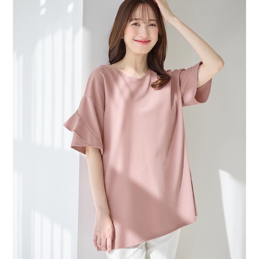 【お客様の声にお応えしました!】上品キレイな袖フリルで可愛く華奢魅せ。キレイなAラインシルエットでおしゃれに体型カバー。