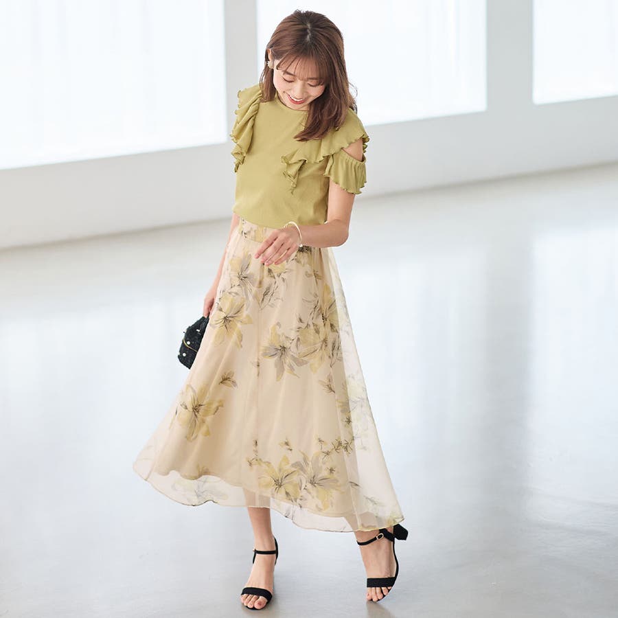 大人フェミニンコーデにオススメの、上品な花柄スカート。