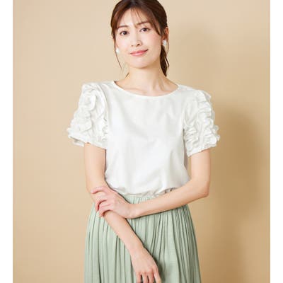 夏に嬉しい接触冷感機能付き!大胆にあしらった袖のフリルが華やかで着映える夏カットソー