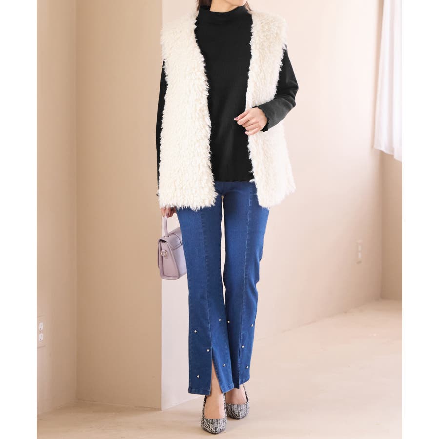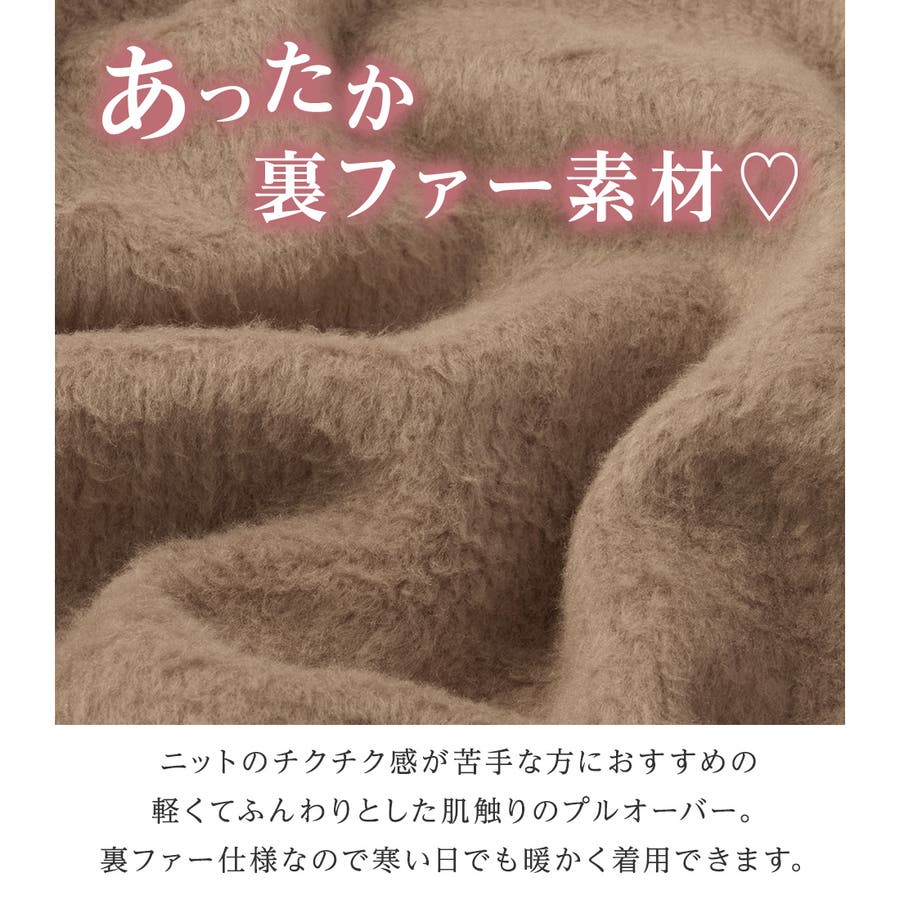 ・軽くてふんわりとした優しい肌触りの裏ファー素材。寒い時期でも暖かく着用できます
