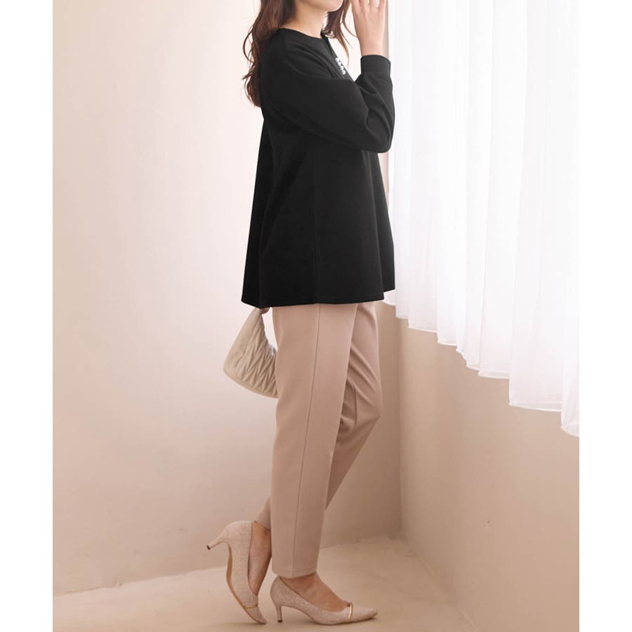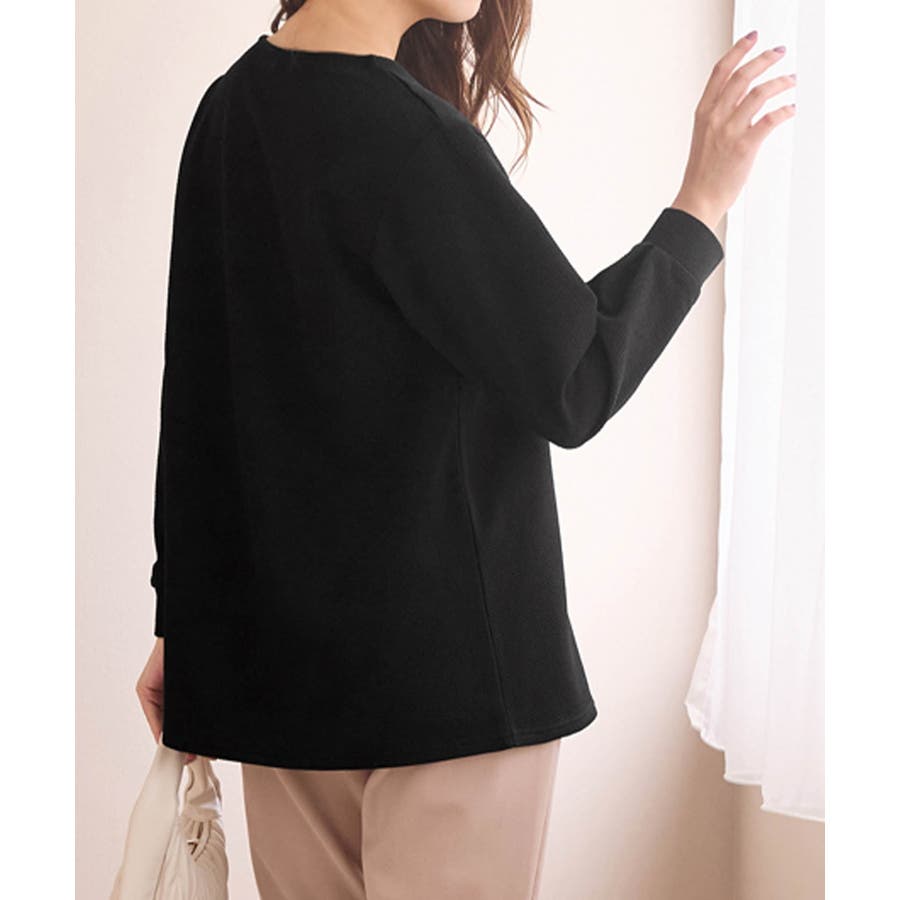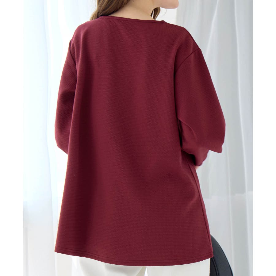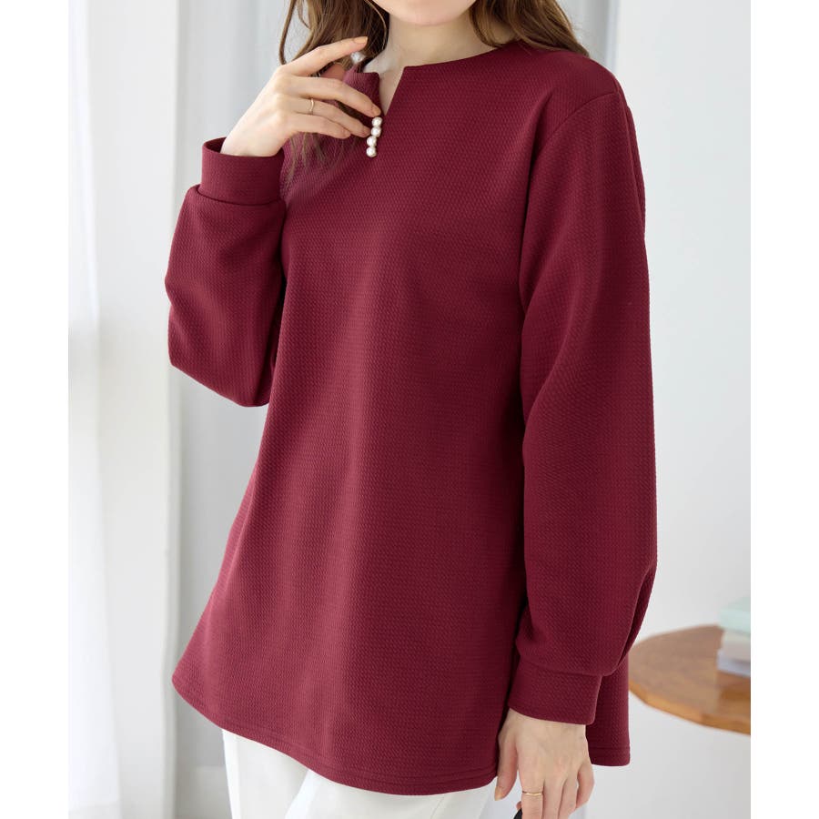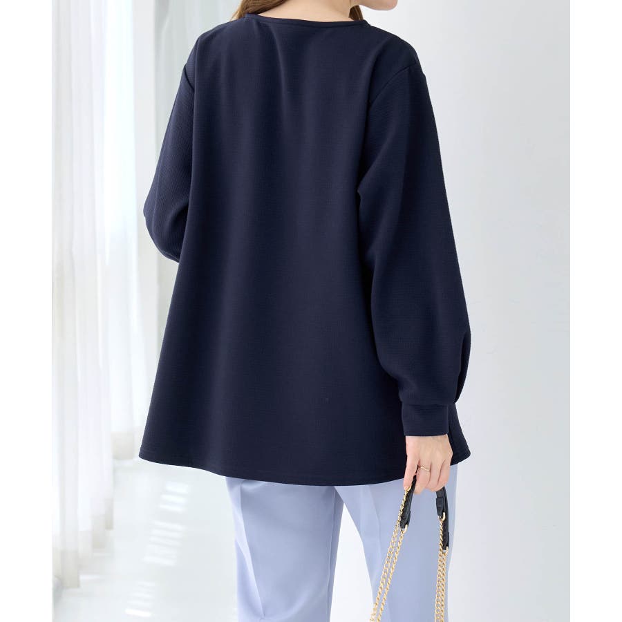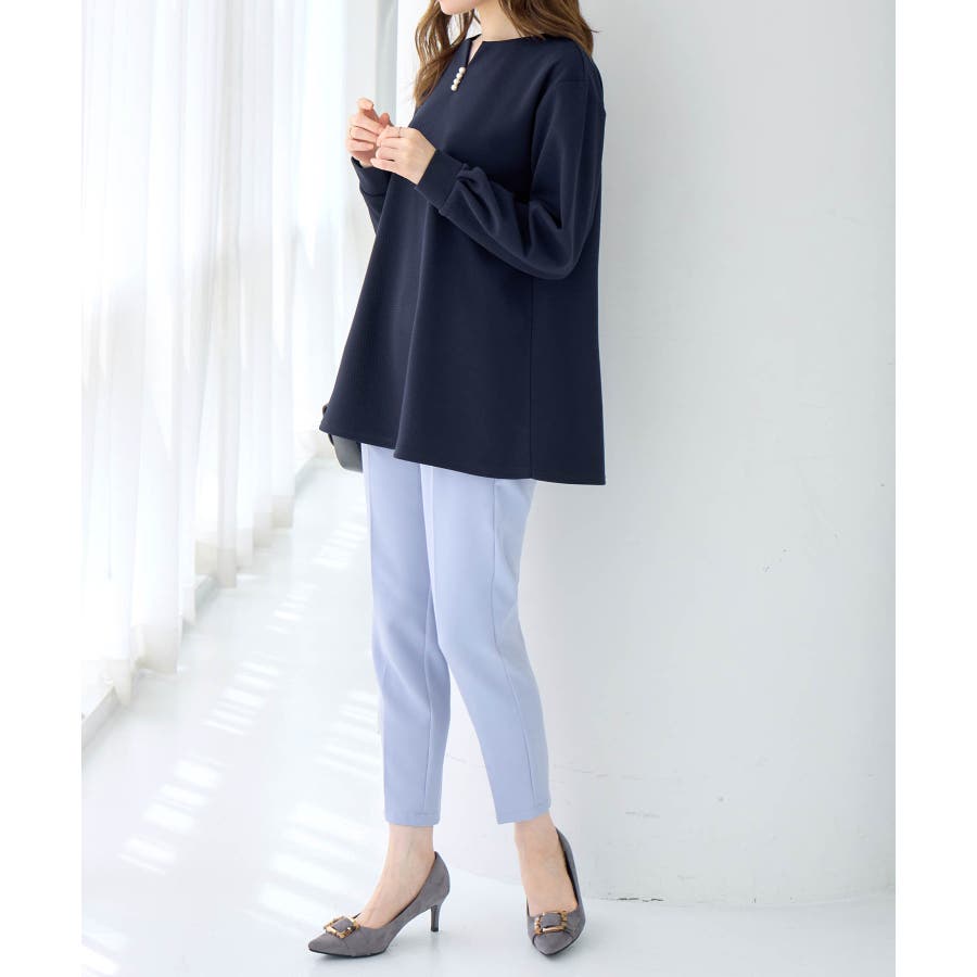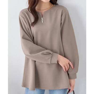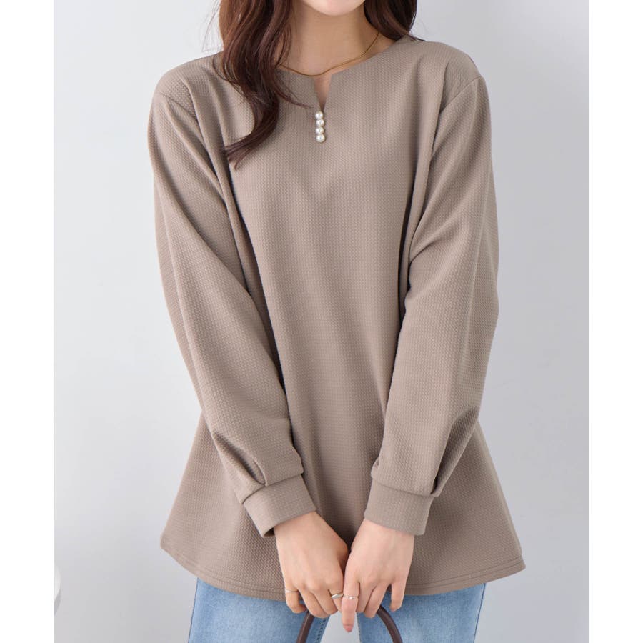 ・すっきりとしたキーネックにパール調ボタンで衿元にアクセント♪