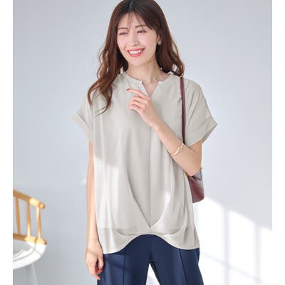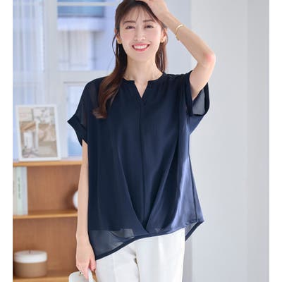 ・表地は上品な透け感のあるシフォン素材、裏地には暑い時期でも快適な綿混カットソー素材を使用しています。