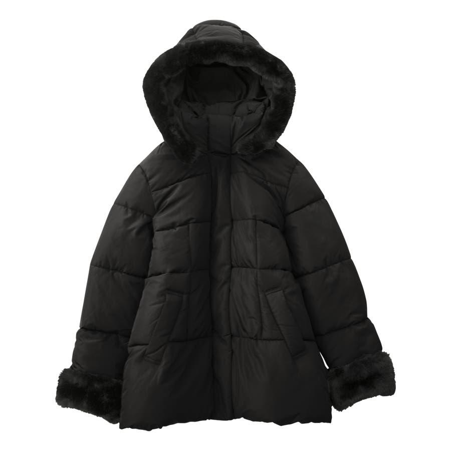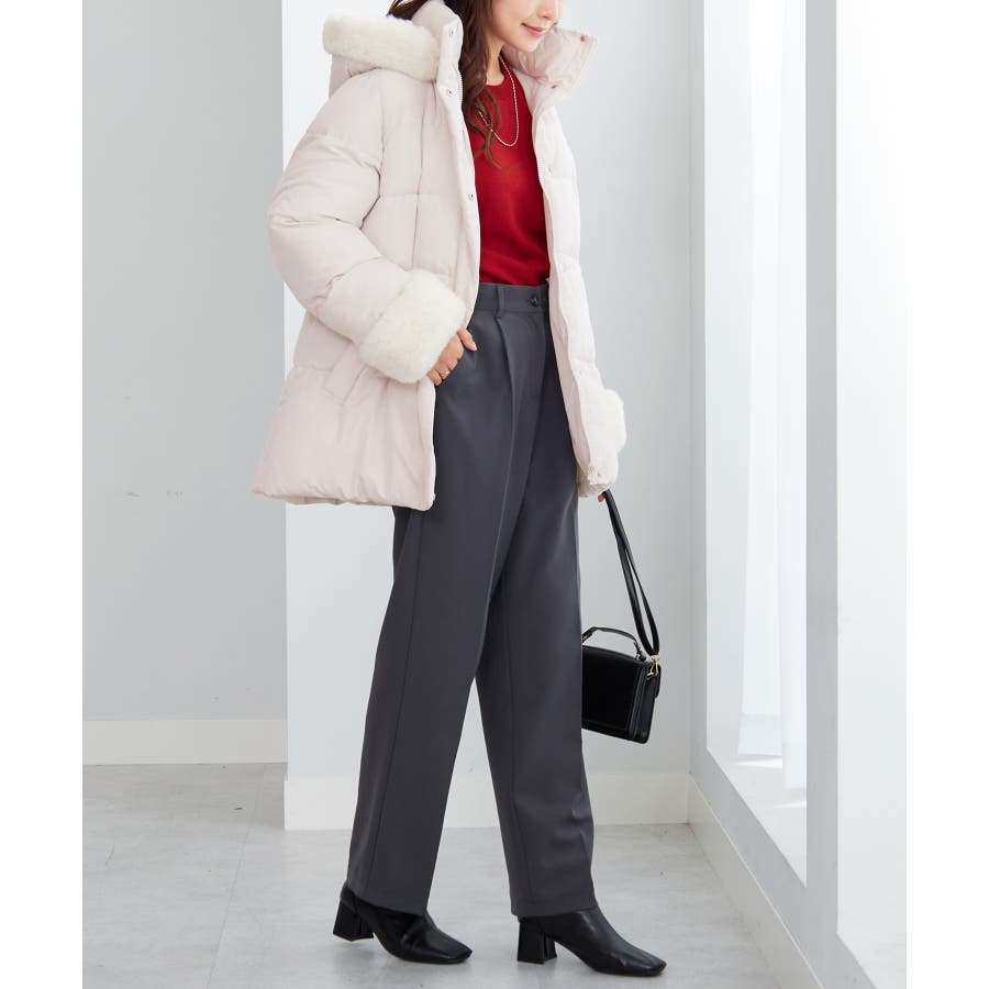・ストンと落ちるIラインシルエットは、体のラインを拾いにくく、縦長見せ効果ですらりとした印象に。