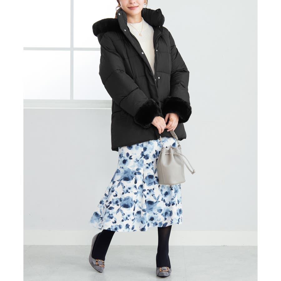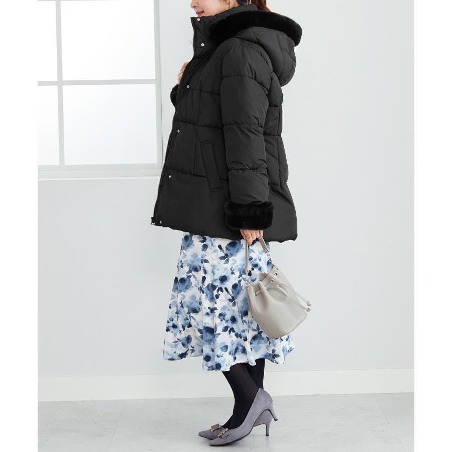 ・ふくらはぎまでしっかり隠れるロング丈で、上品さと体型カバーを兼ね備えています。