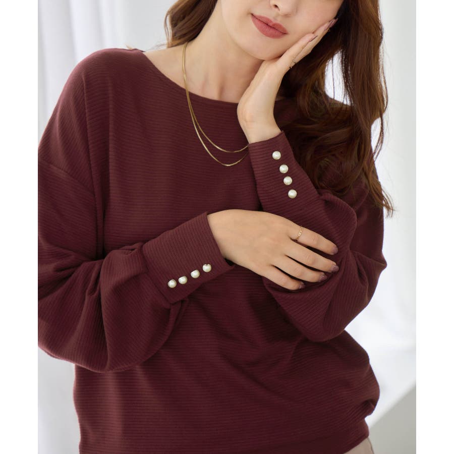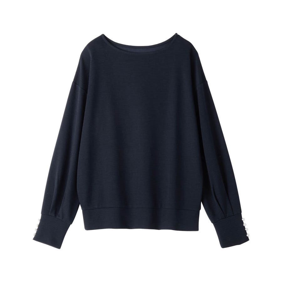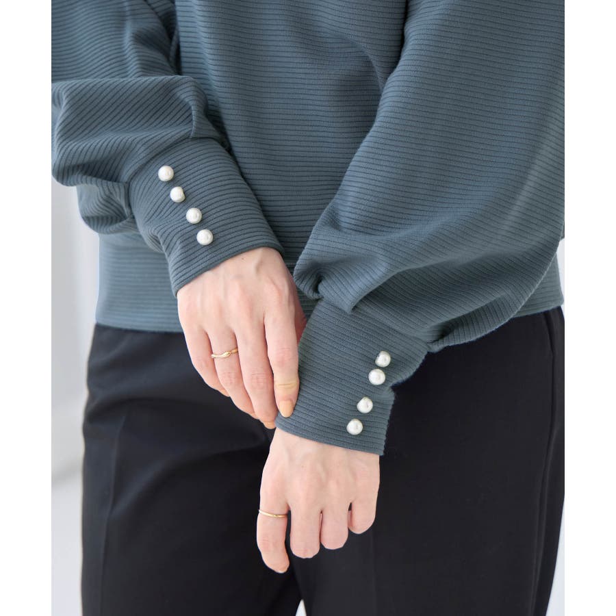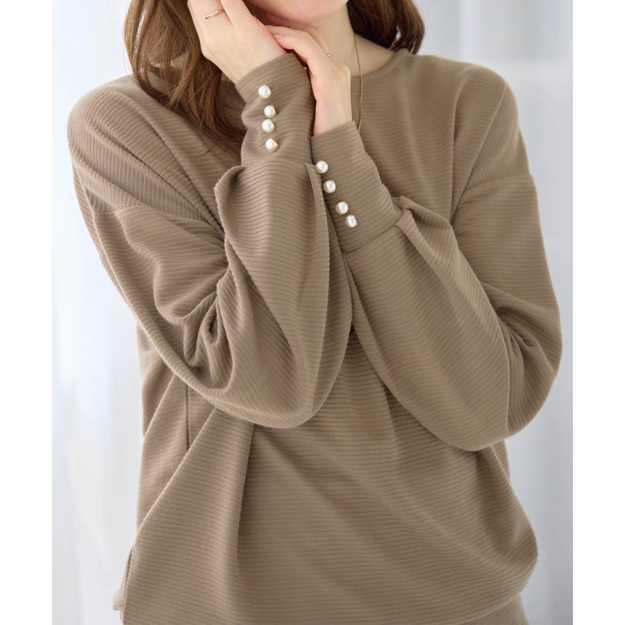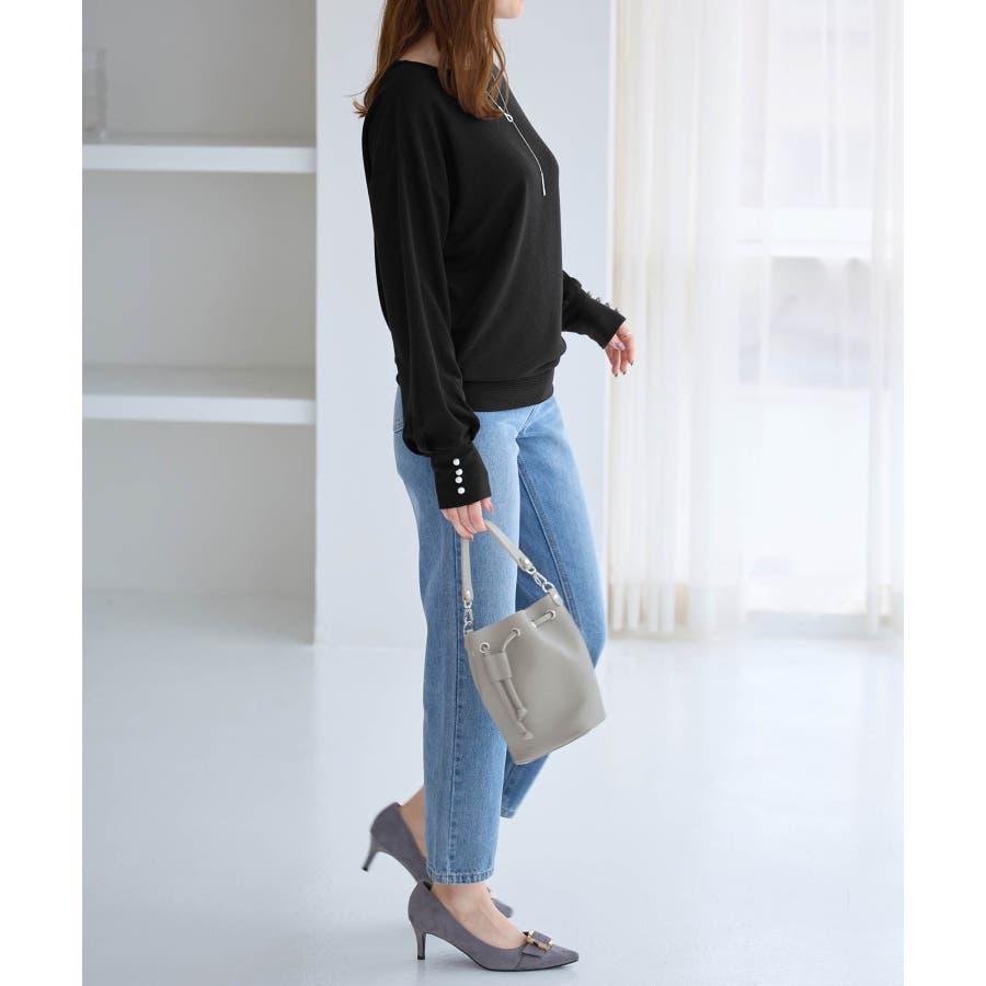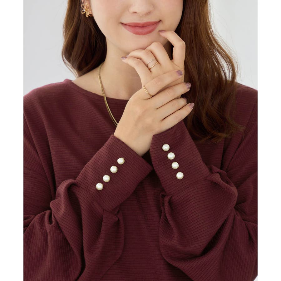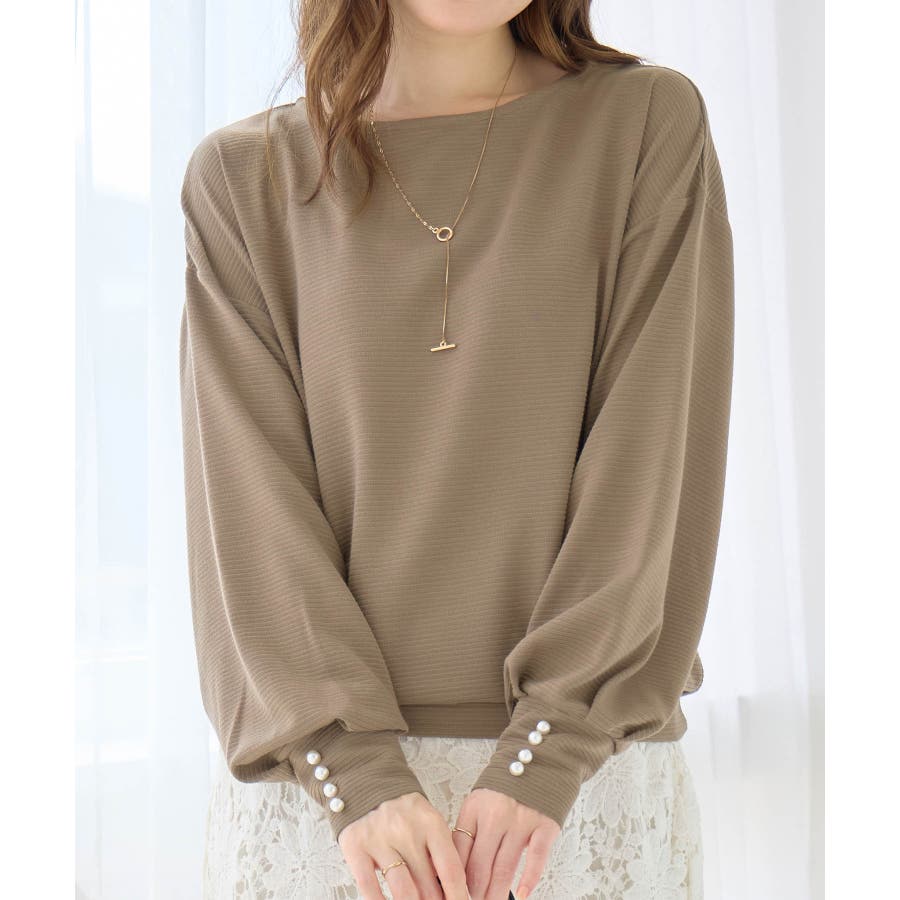 ・シンプルなトップスデザインに、袖口のパール調ボタンが上品なアクセント。