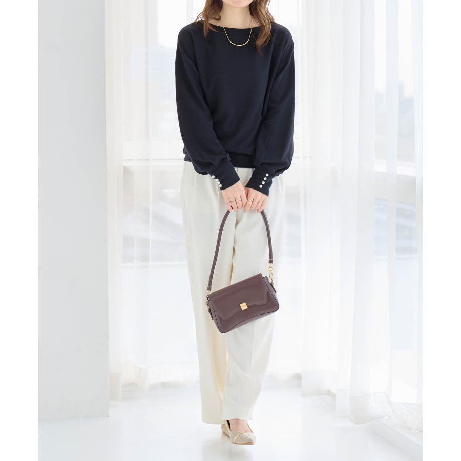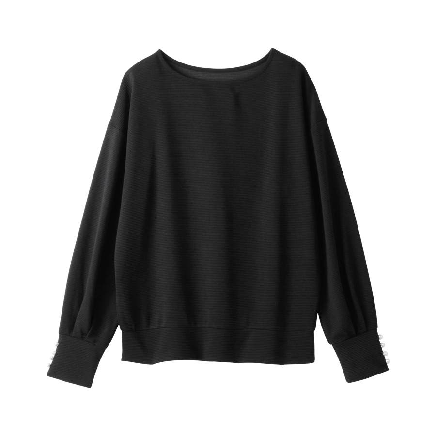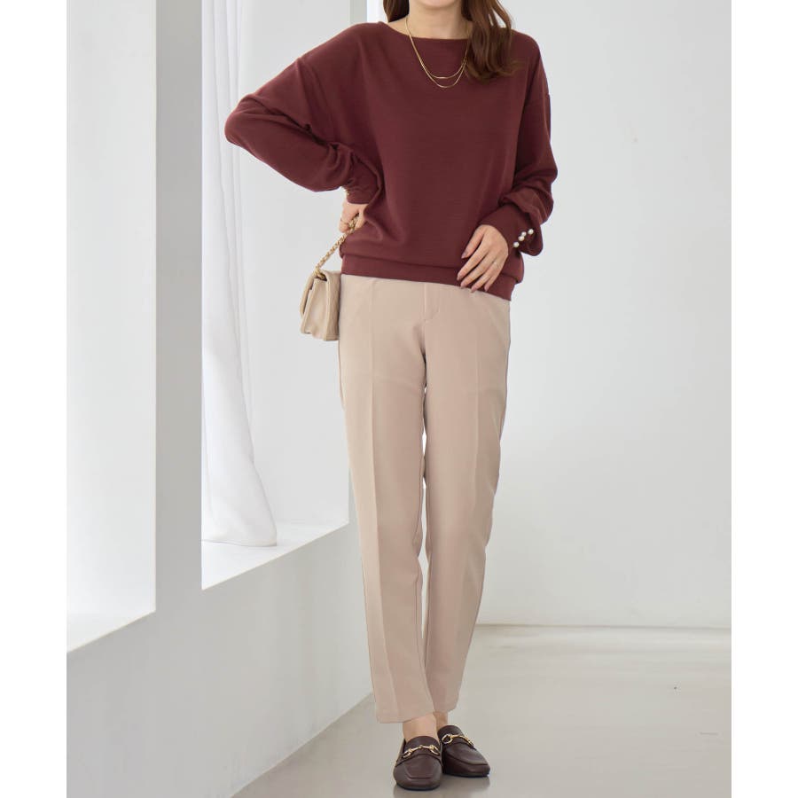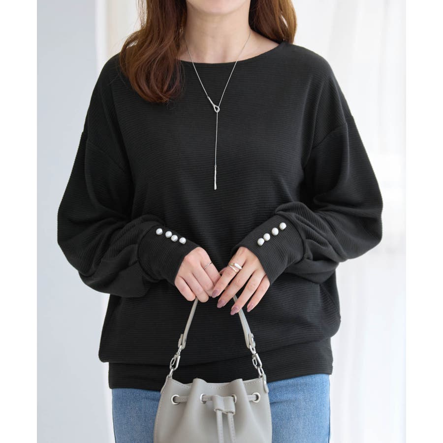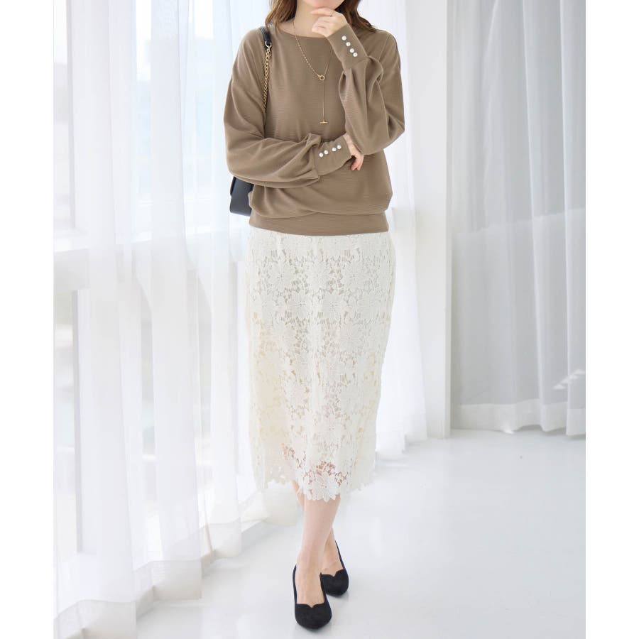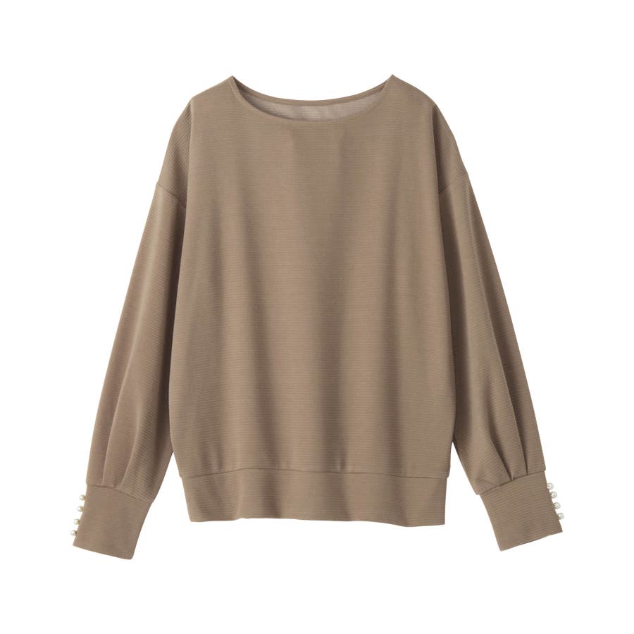 ・シンプルなトップスデザインに、袖口のパール調ボタンが上品なアクセント。