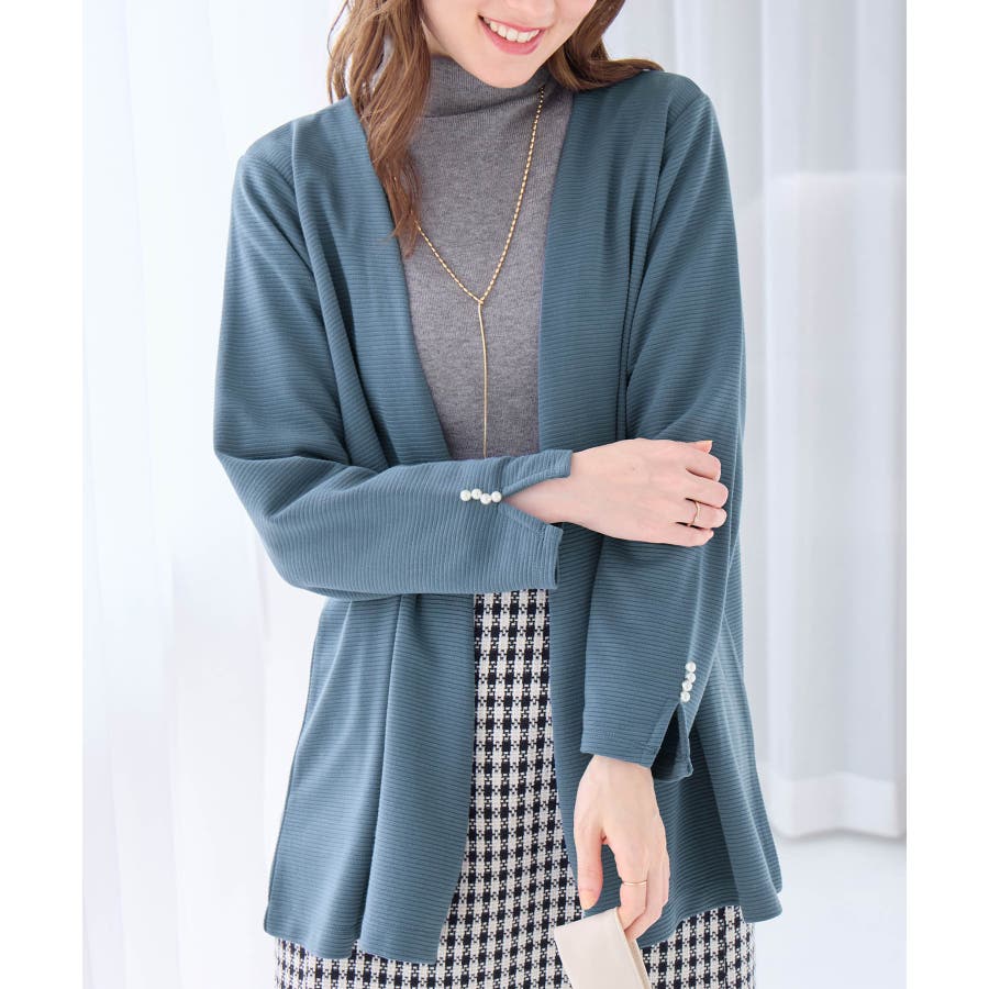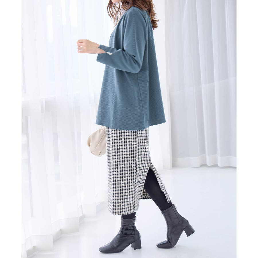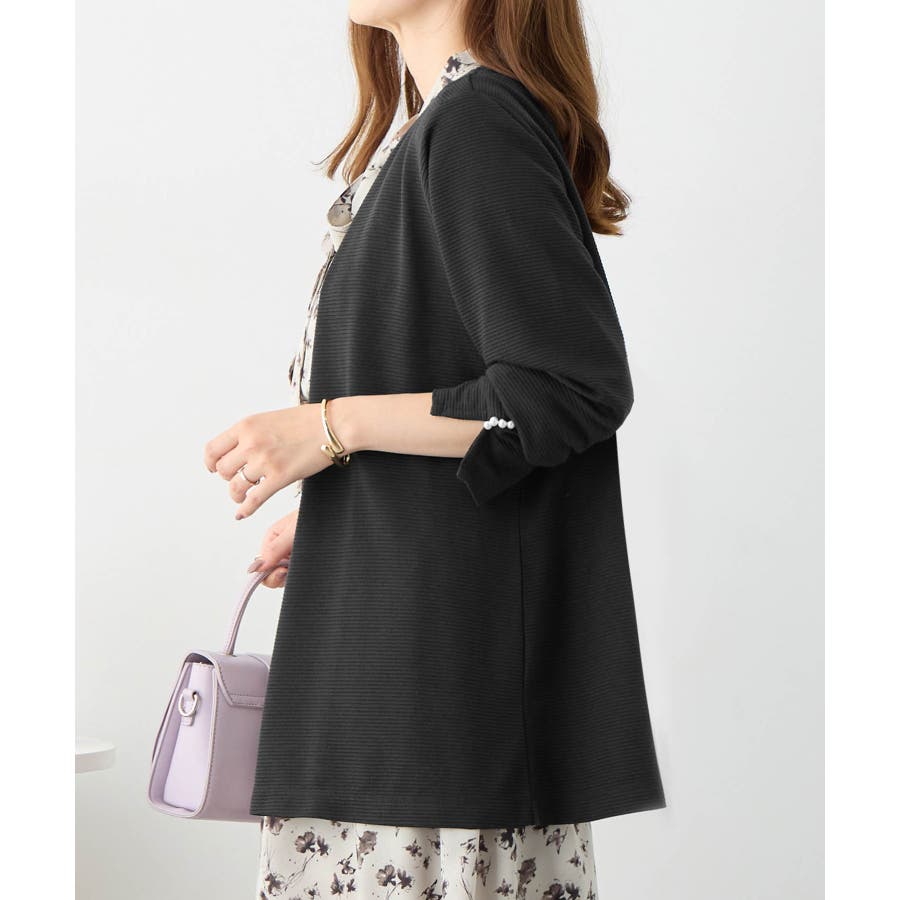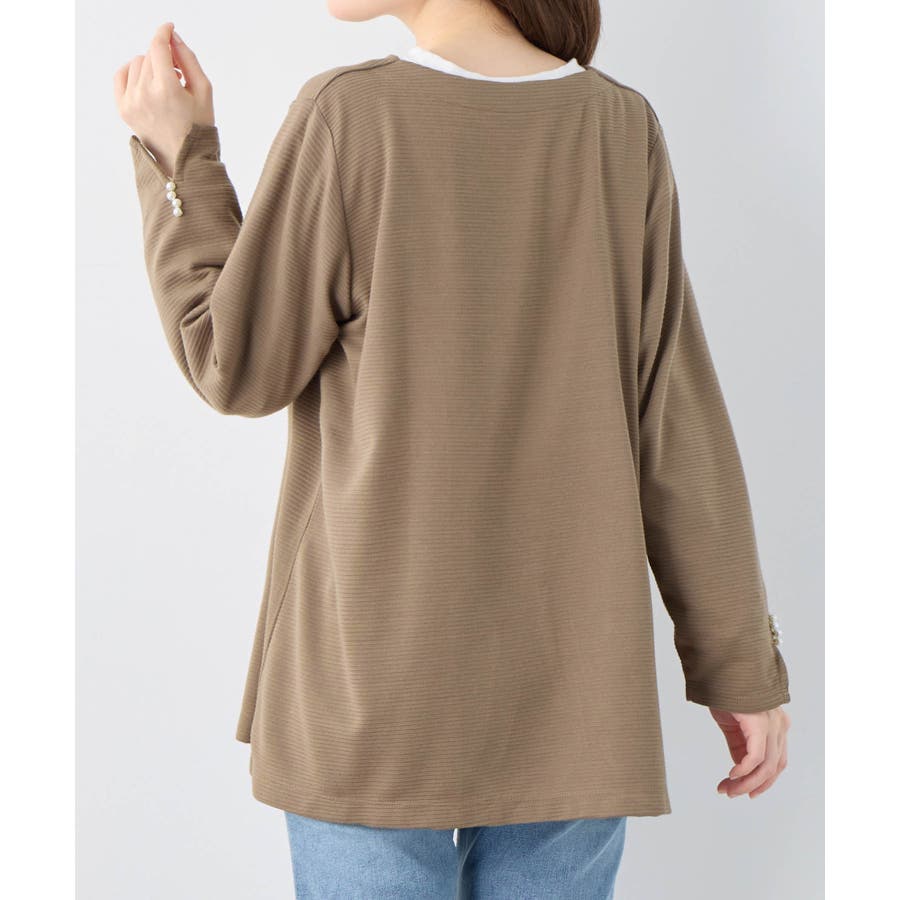 ・袖口のパール調ボタンのあしらいで上品見えします。