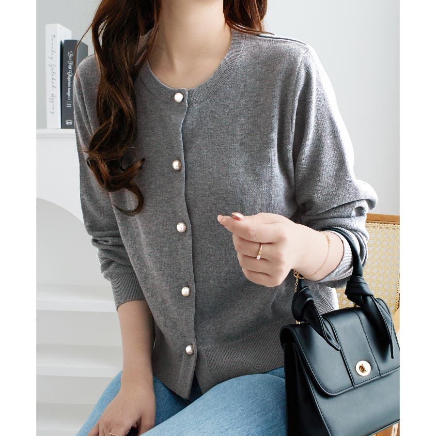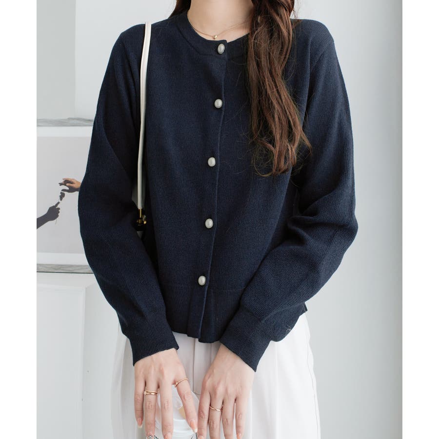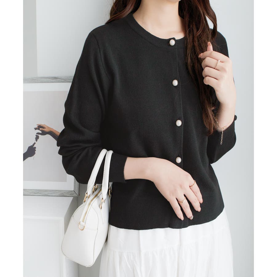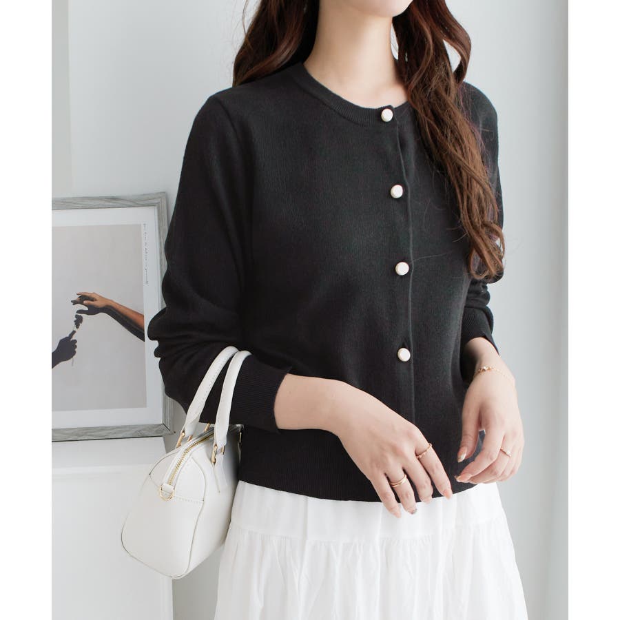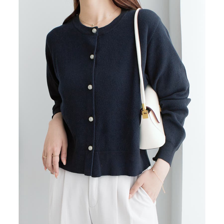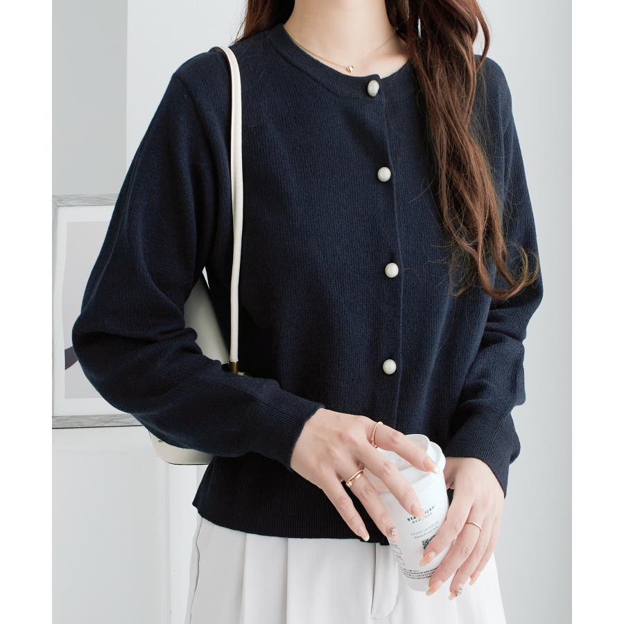 ・シンプルデザインにパール調ボタンが上品なアクセント