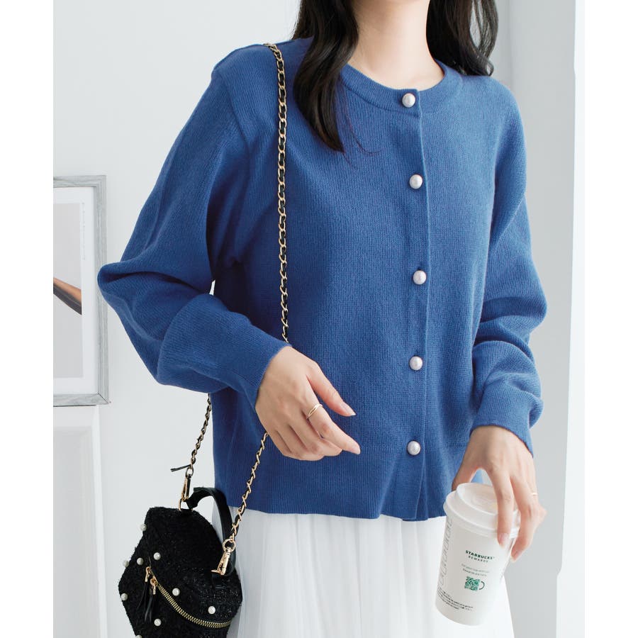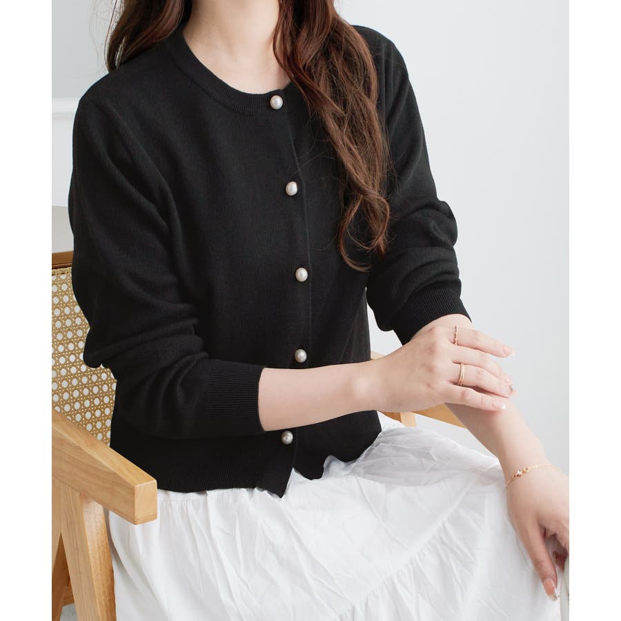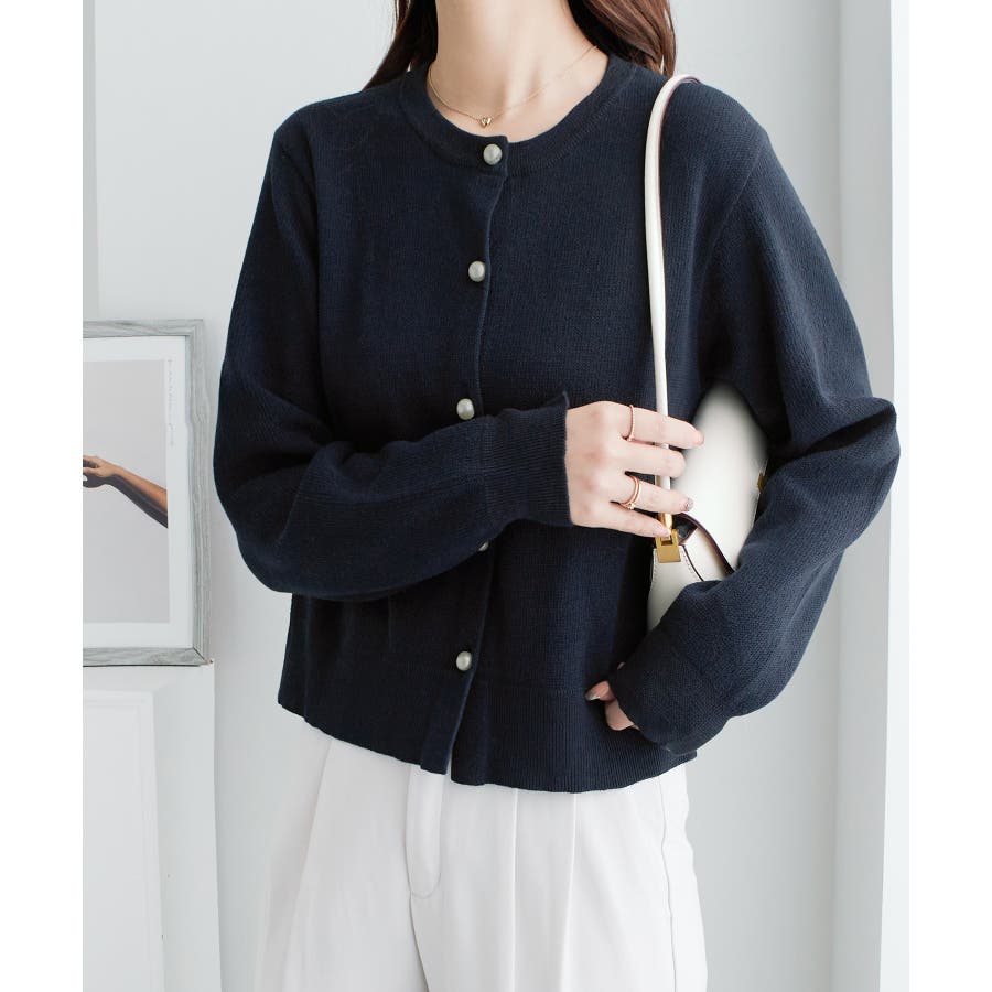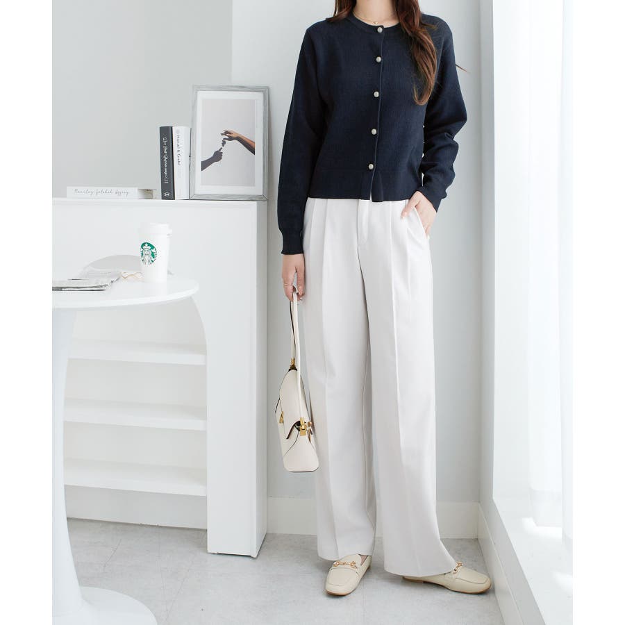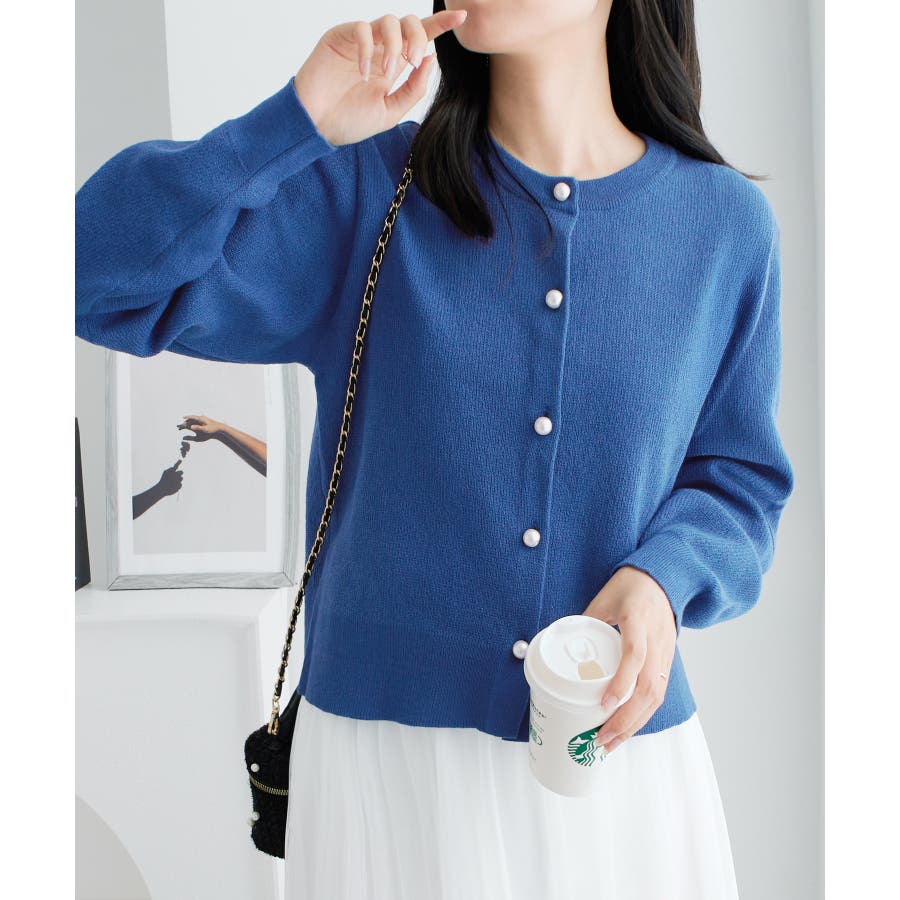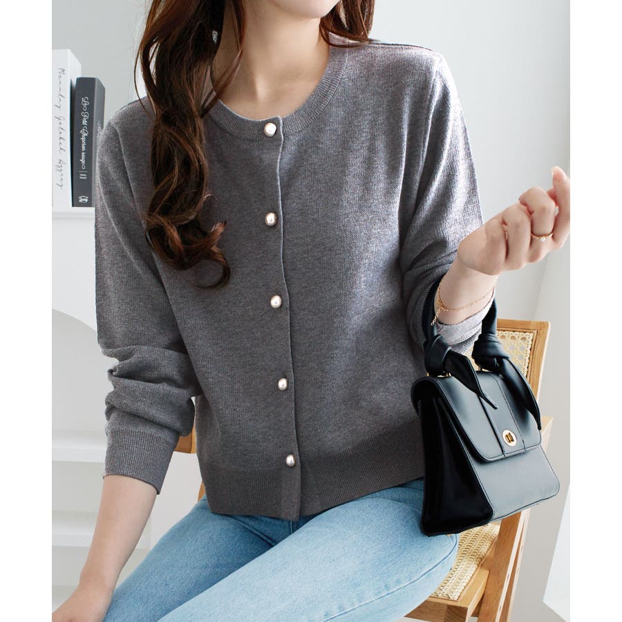 ・シンプルデザインにパール調ボタンが上品なアクセント