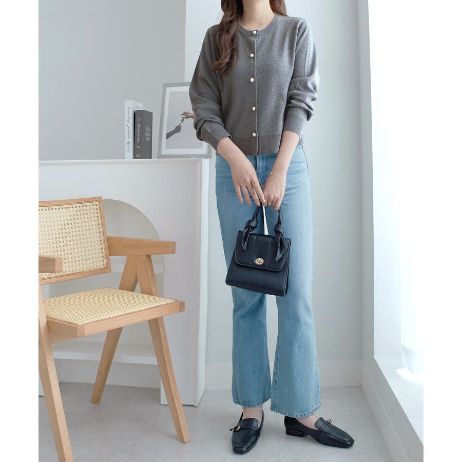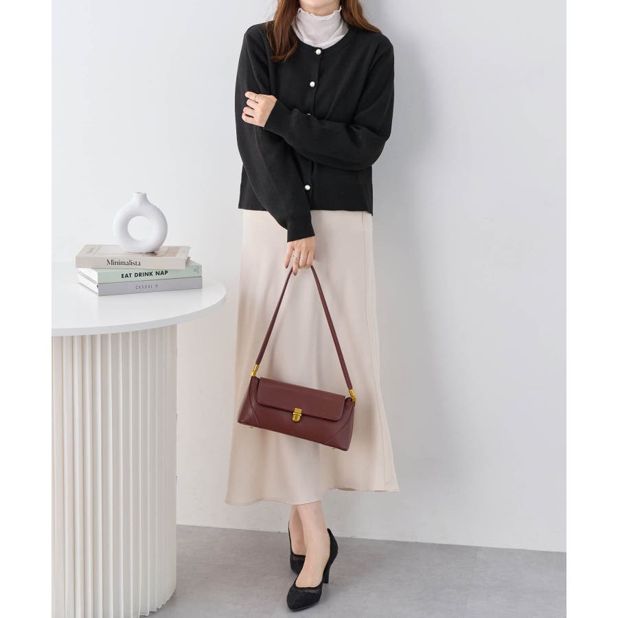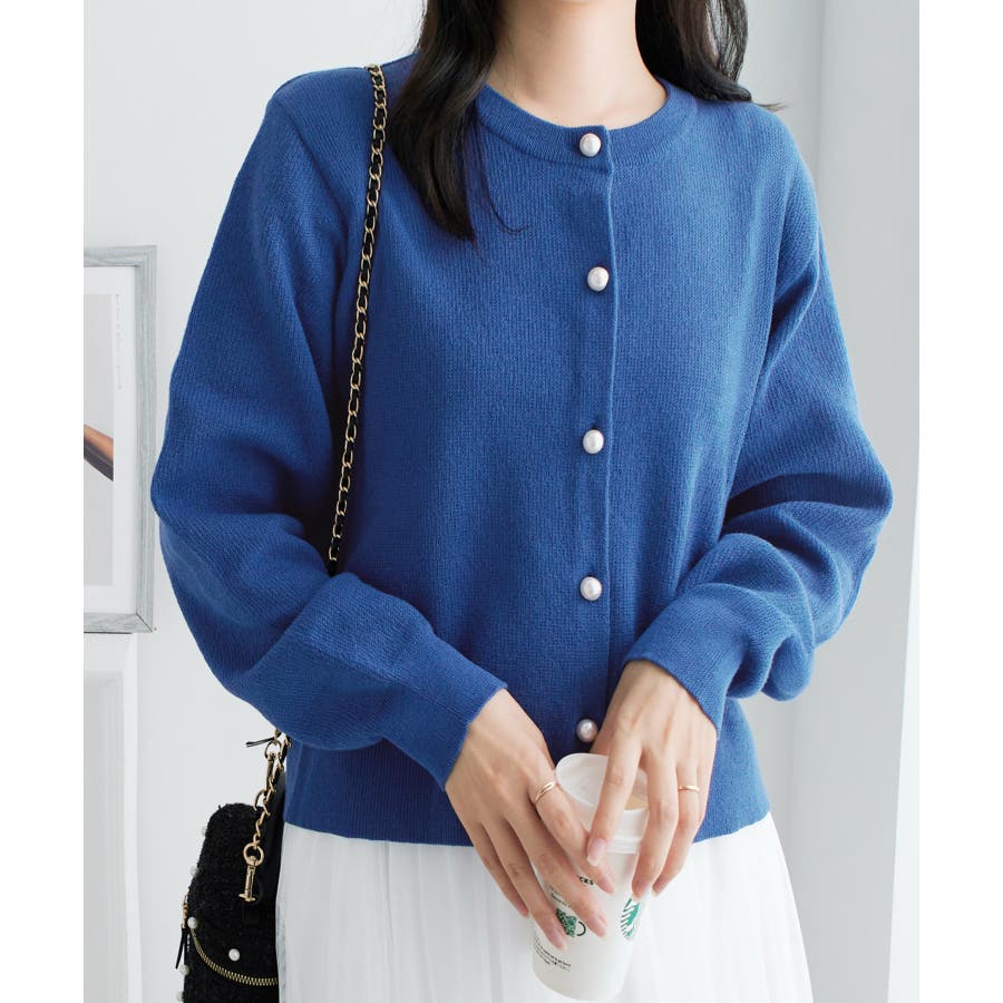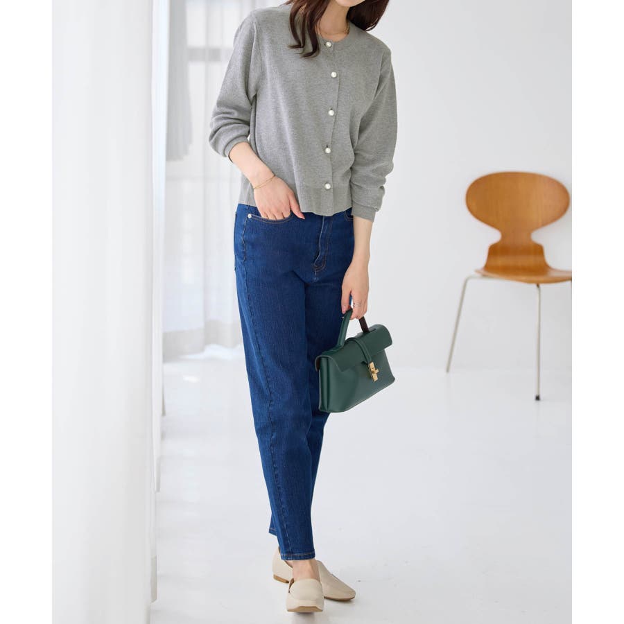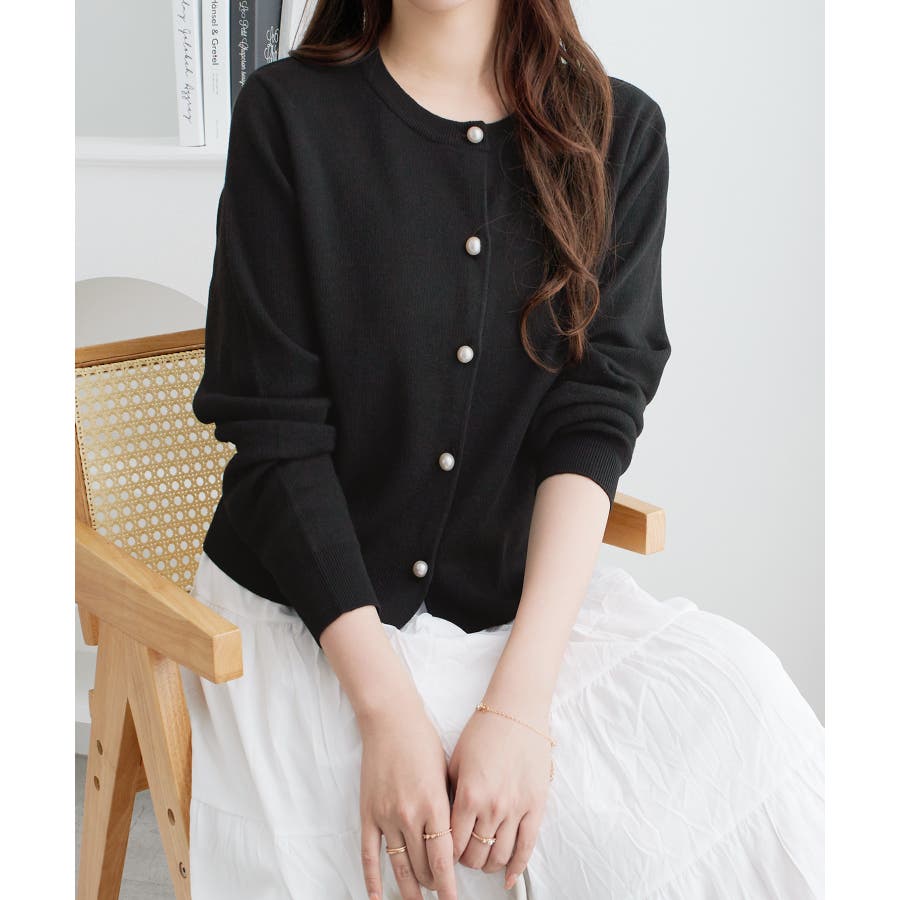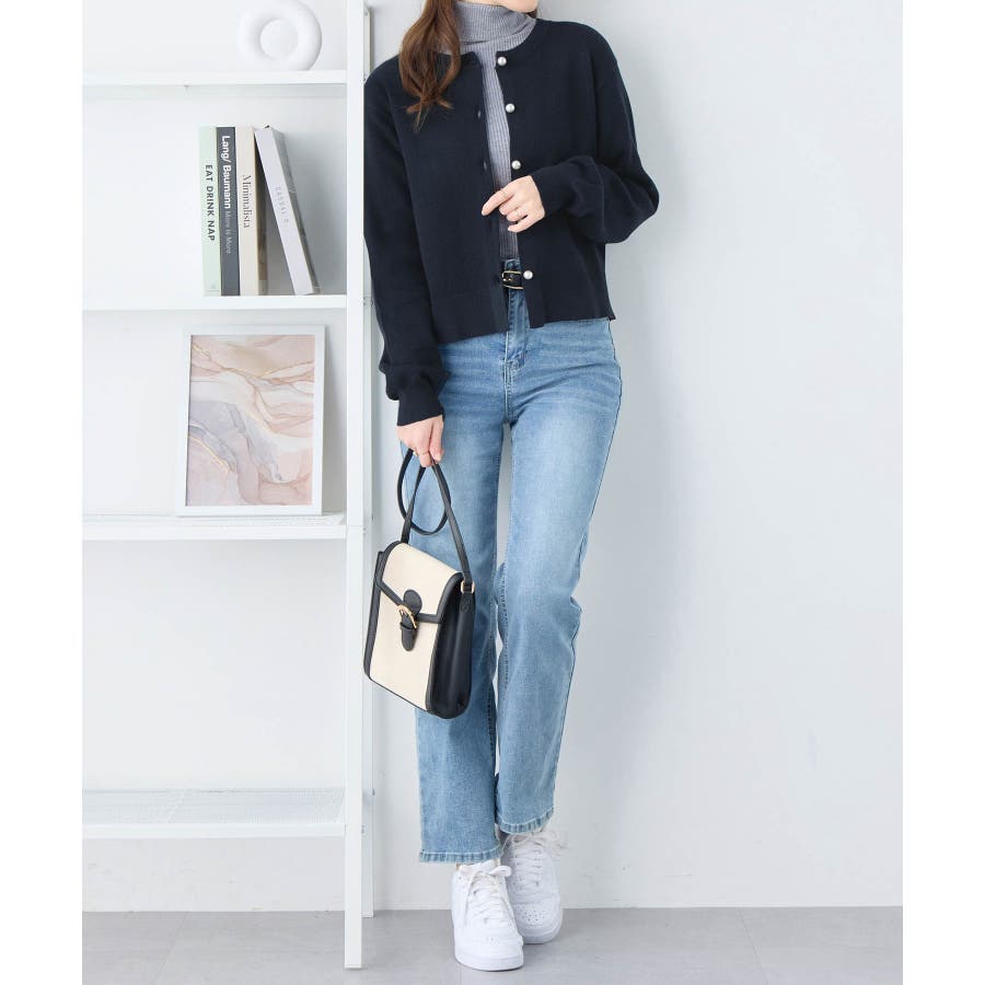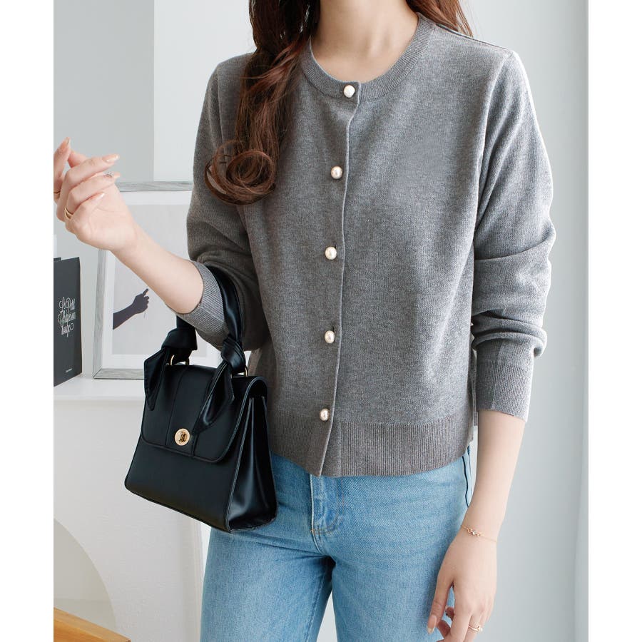 ・シンプルデザインにパール調ボタンが上品なアクセント
