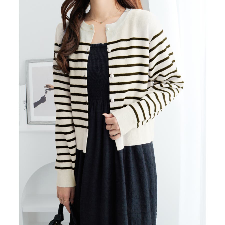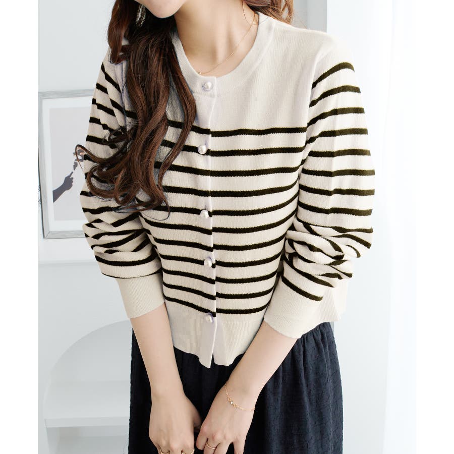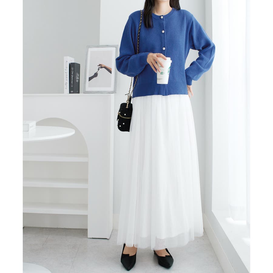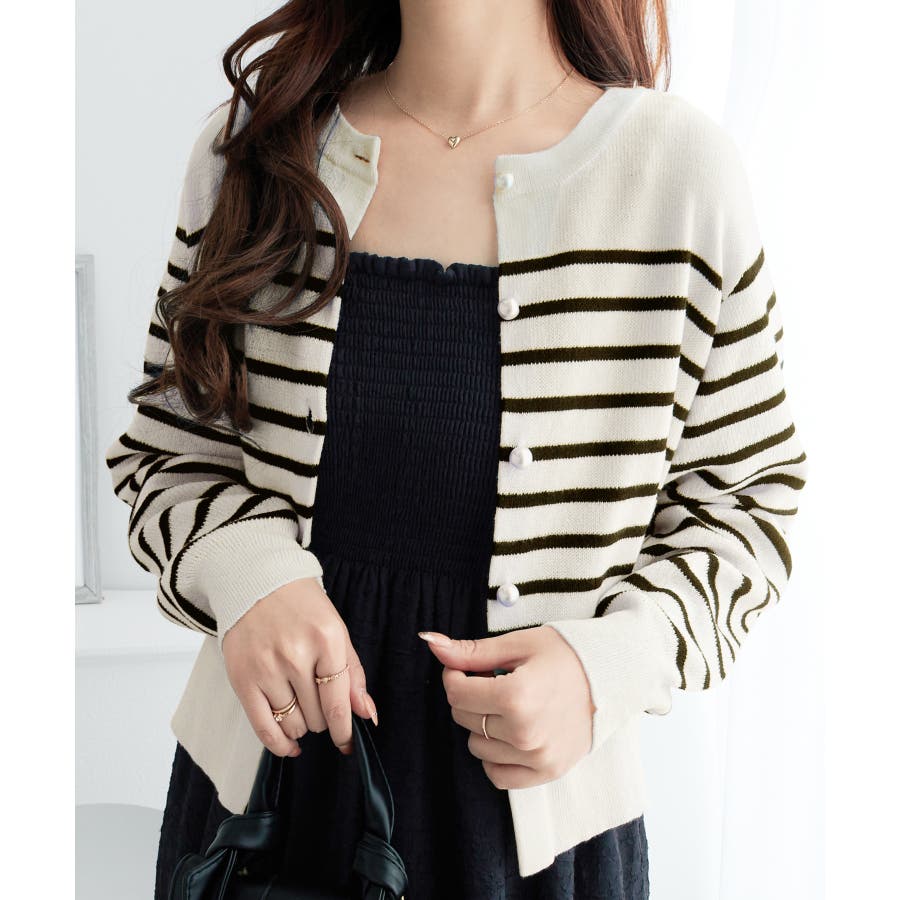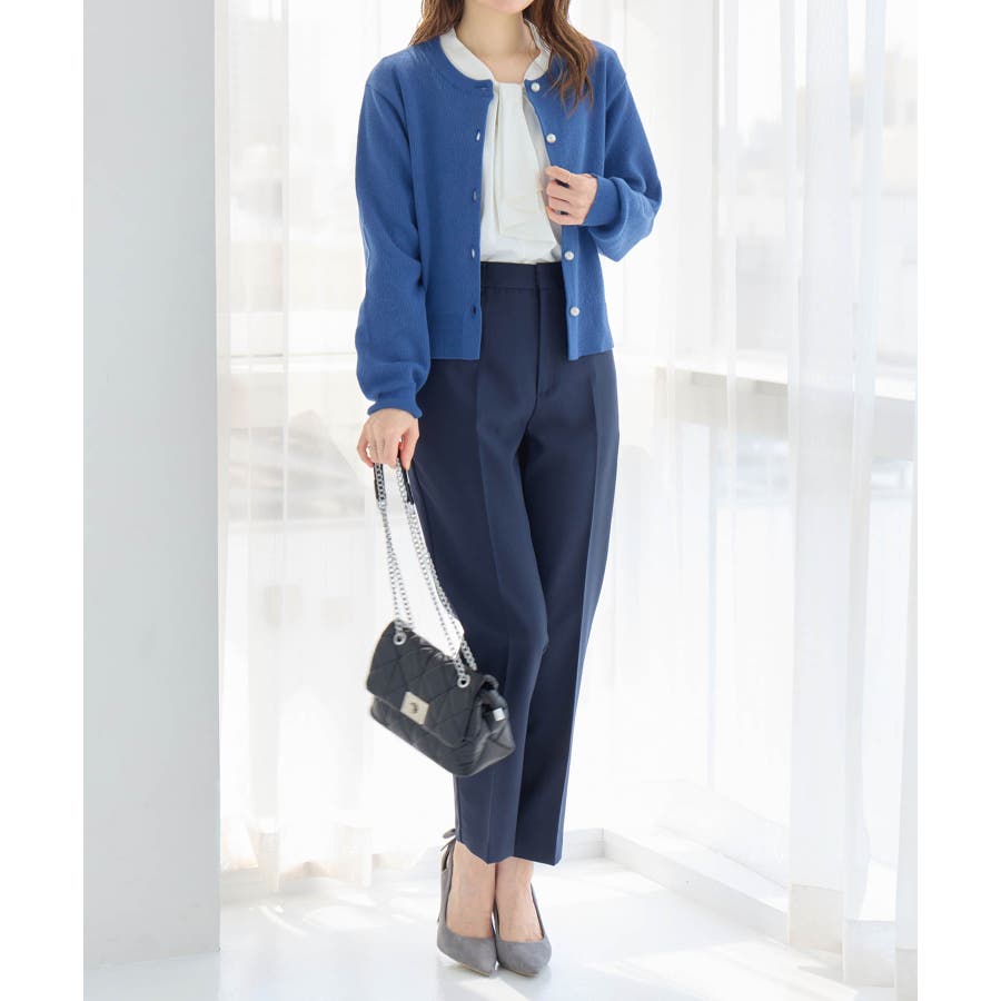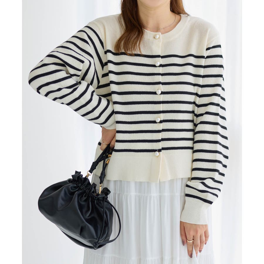 ・シンプルデザインにパール調ボタンが上品なアクセント