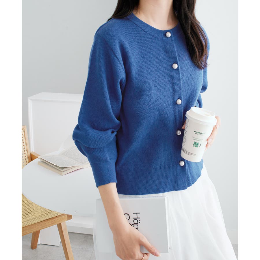 パール調ボタンのきらめきで、さりげなく華やぐ!