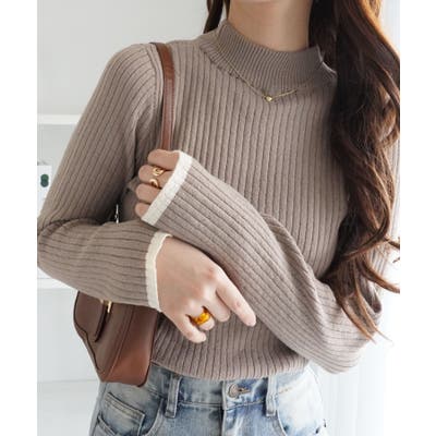 ・袖口に配色を取り入れることでシンプルなリブニットにアクセントが加わり、こなれ感がアップします。