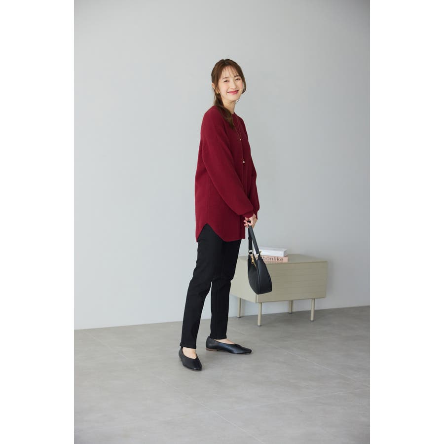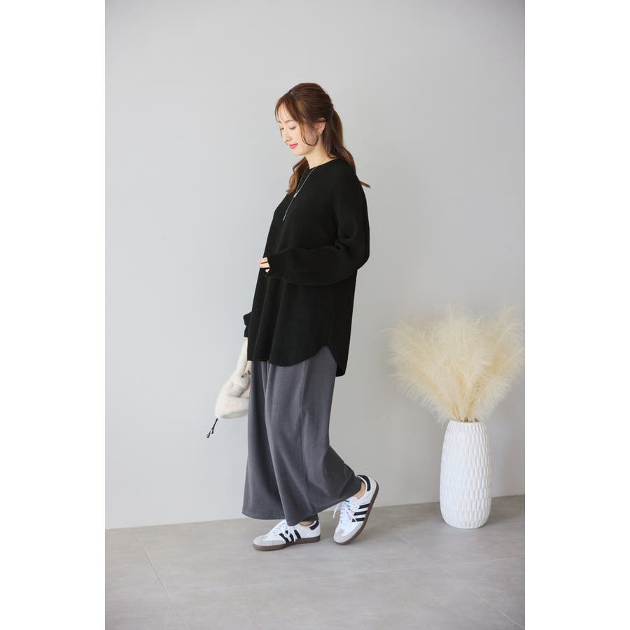 ・横から見ても、こなれ見えするラウンドヘム仕様。ヒップ周りをさりげなくカバーしつつ動きのある印象に。