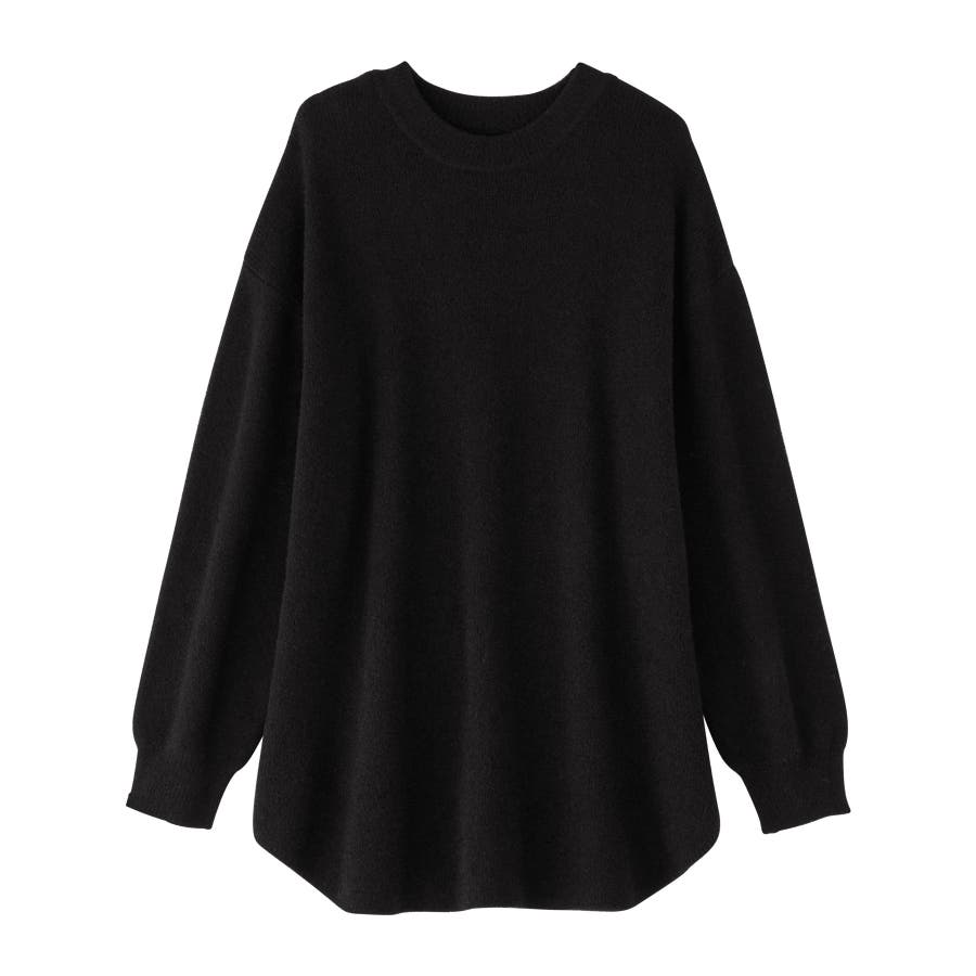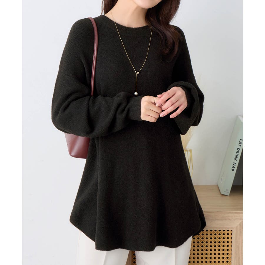 【ブラック】ふんわり裾ラウンドゆるニットチュニック
