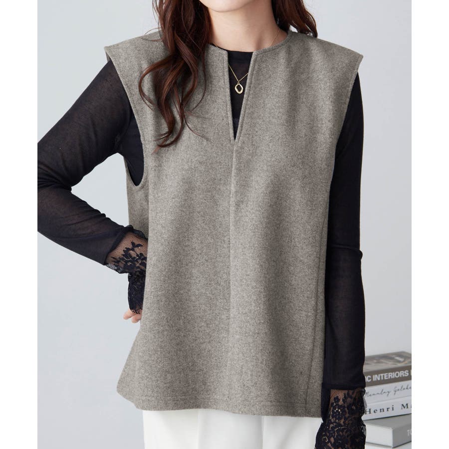 ブラウスやタートルネックニットなどに重ねて、様々なコーデが楽しめる1枚です。