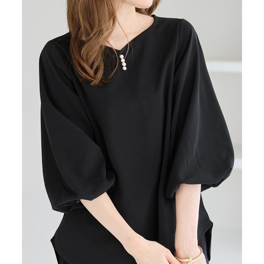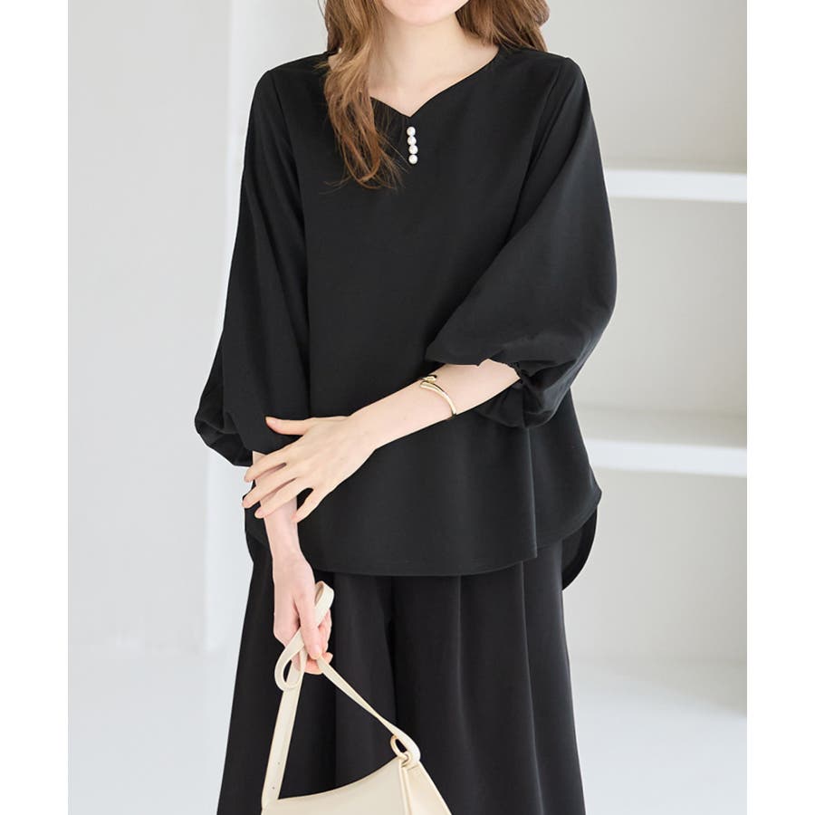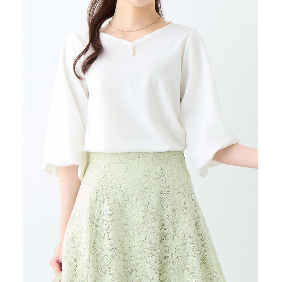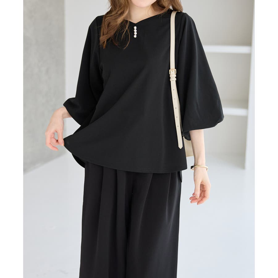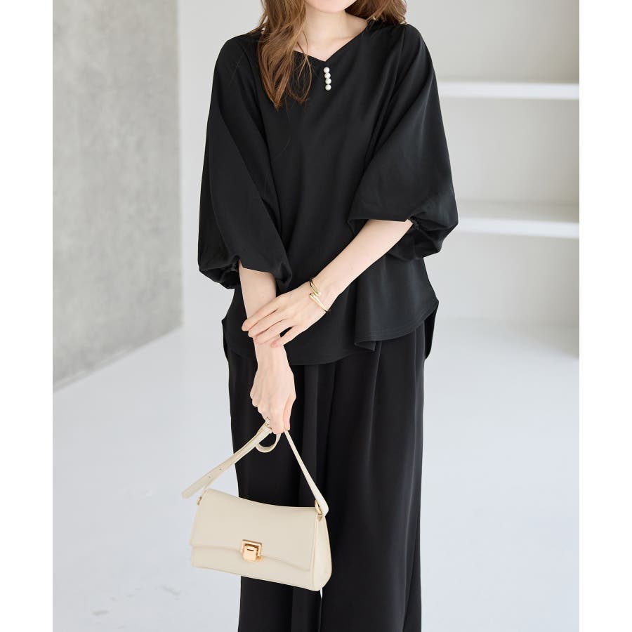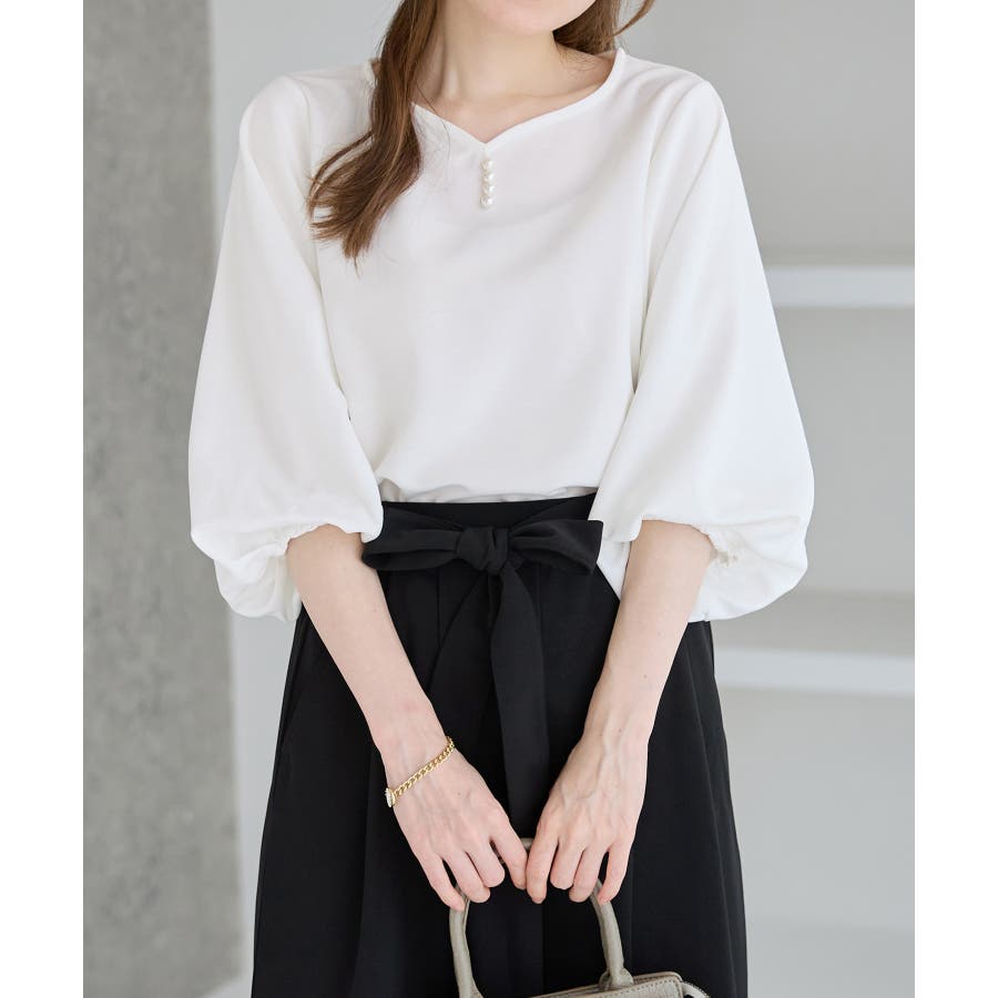 ・アクセいらずで上品に着こなせるパール調ボタンデザイン