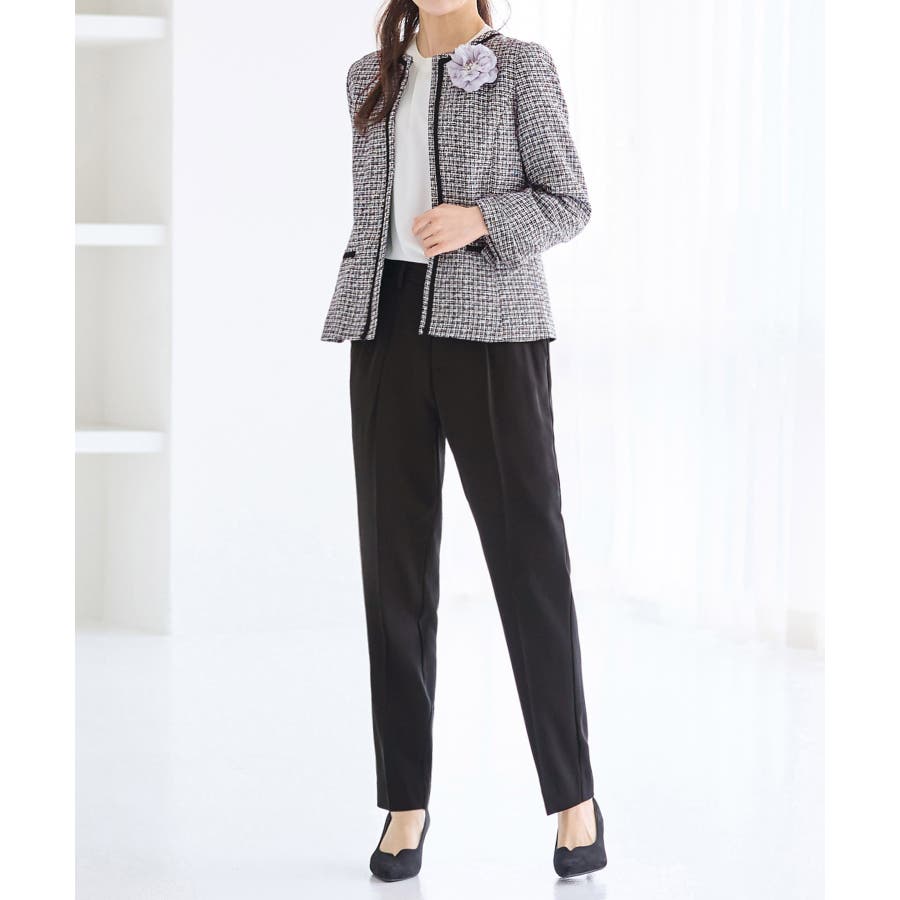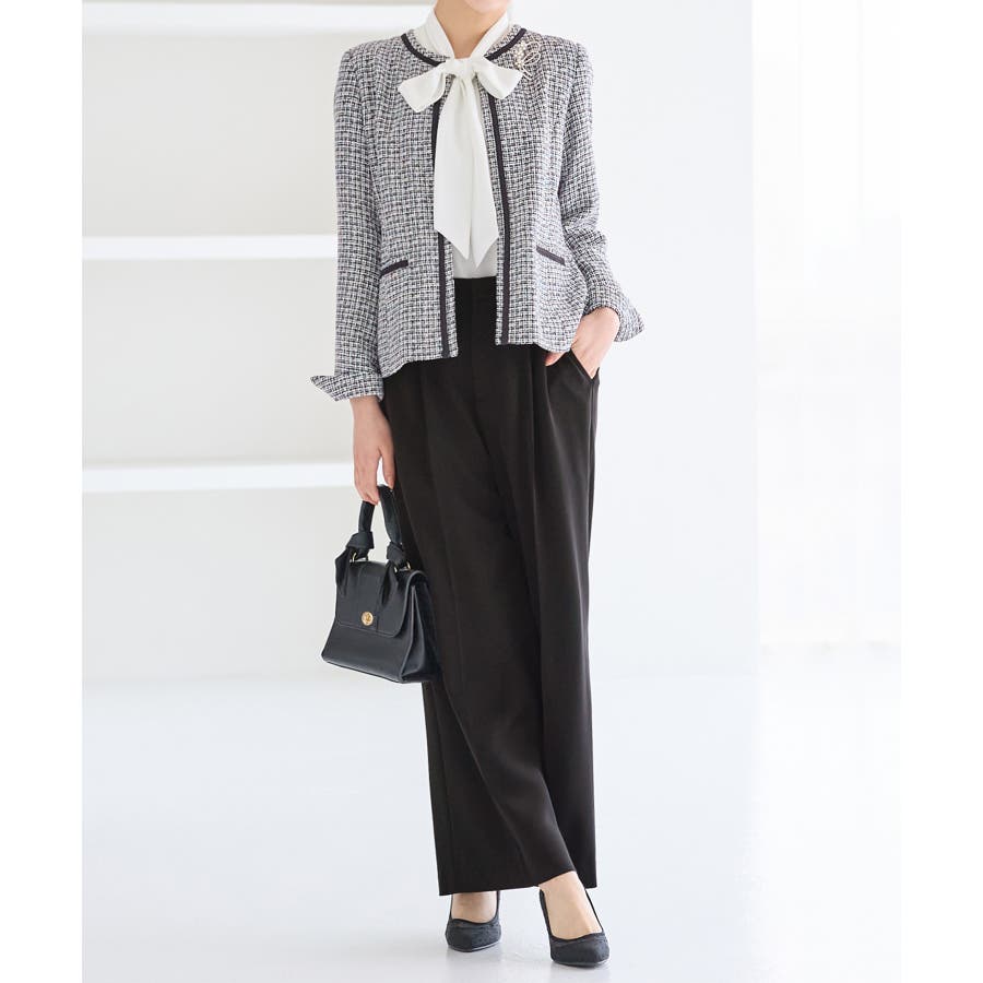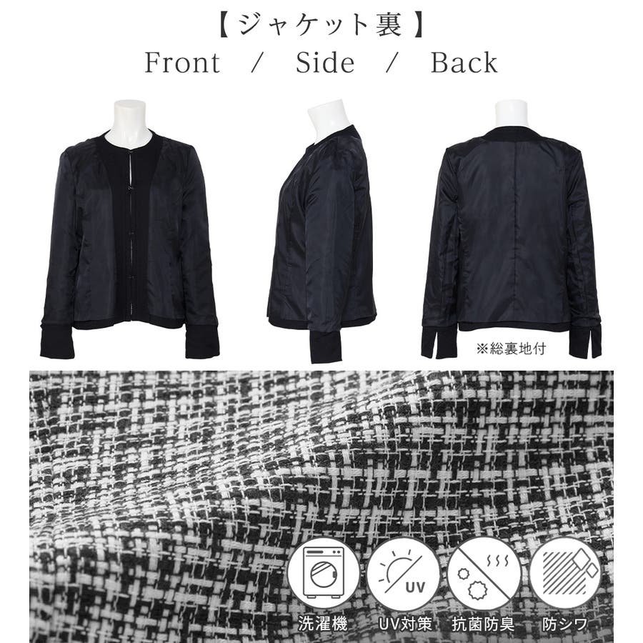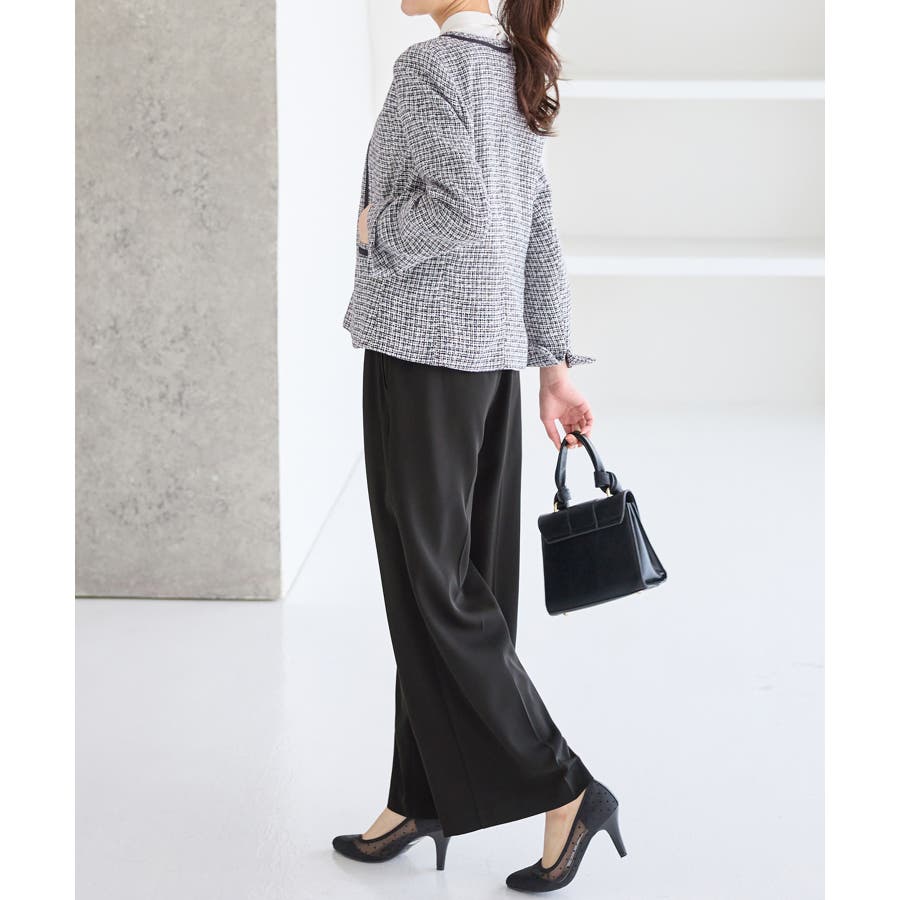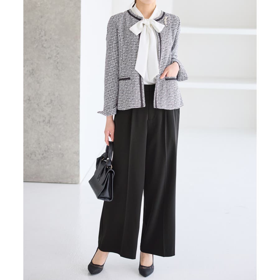 ・ツイード素材&シンプルなノーカラーデザインが大人上品なジャケット