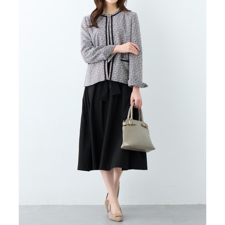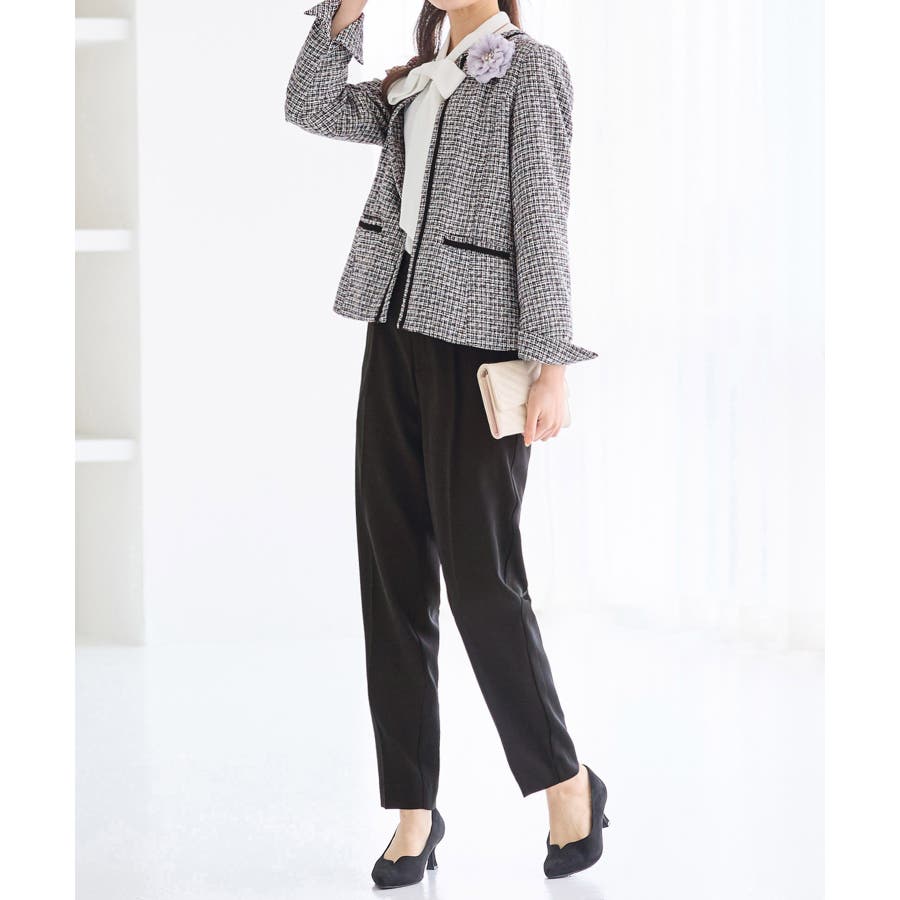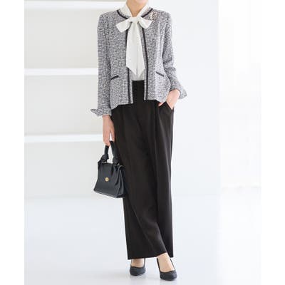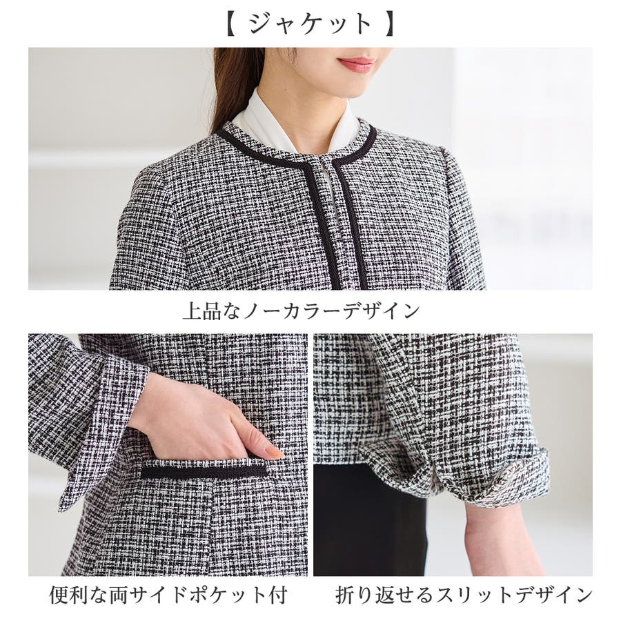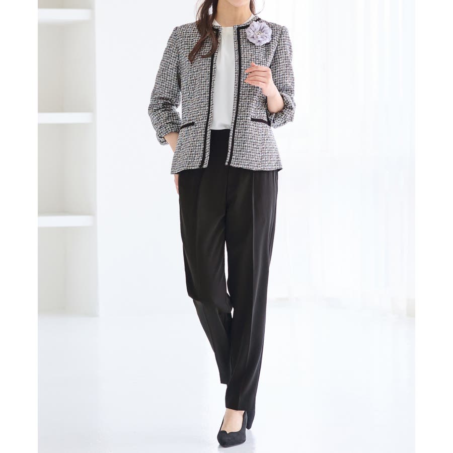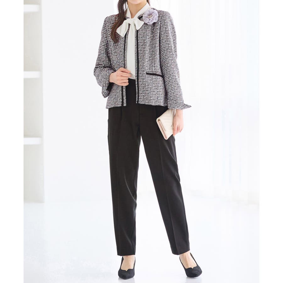 ・ツイード素材&シンプルなノーカラーデザインが大人上品なジャケット