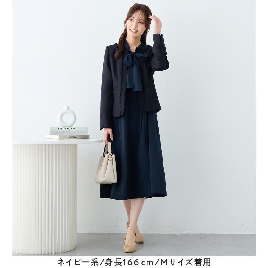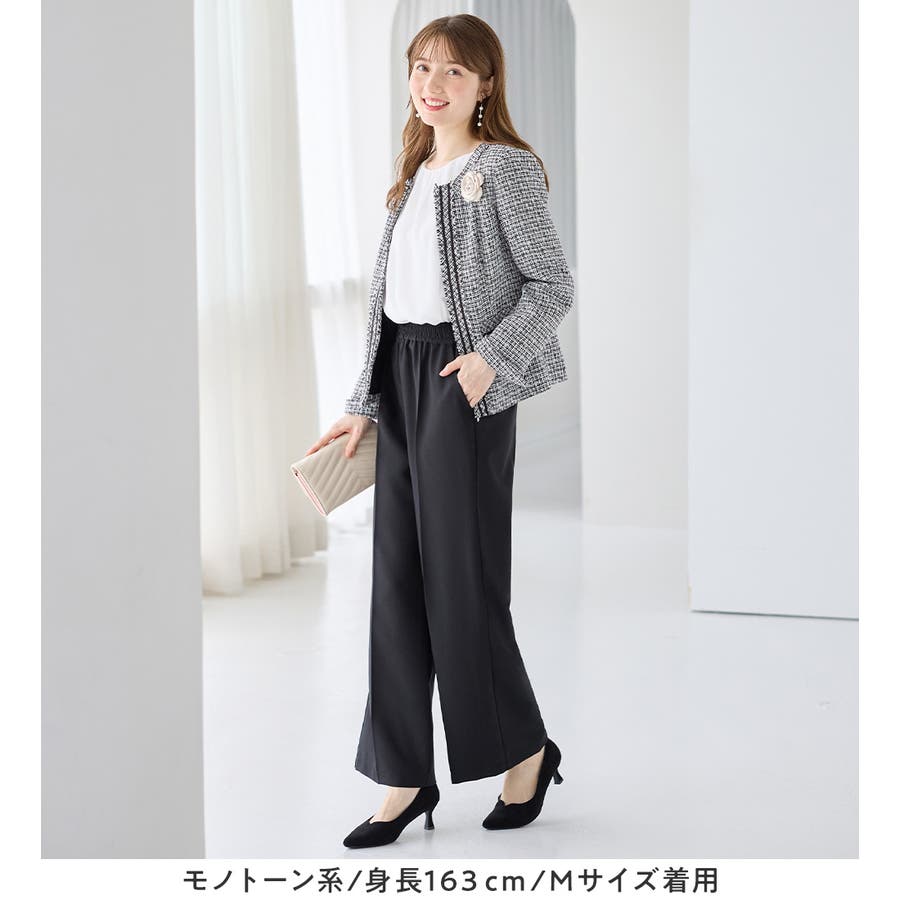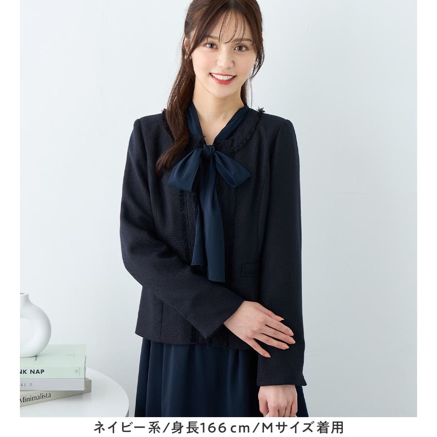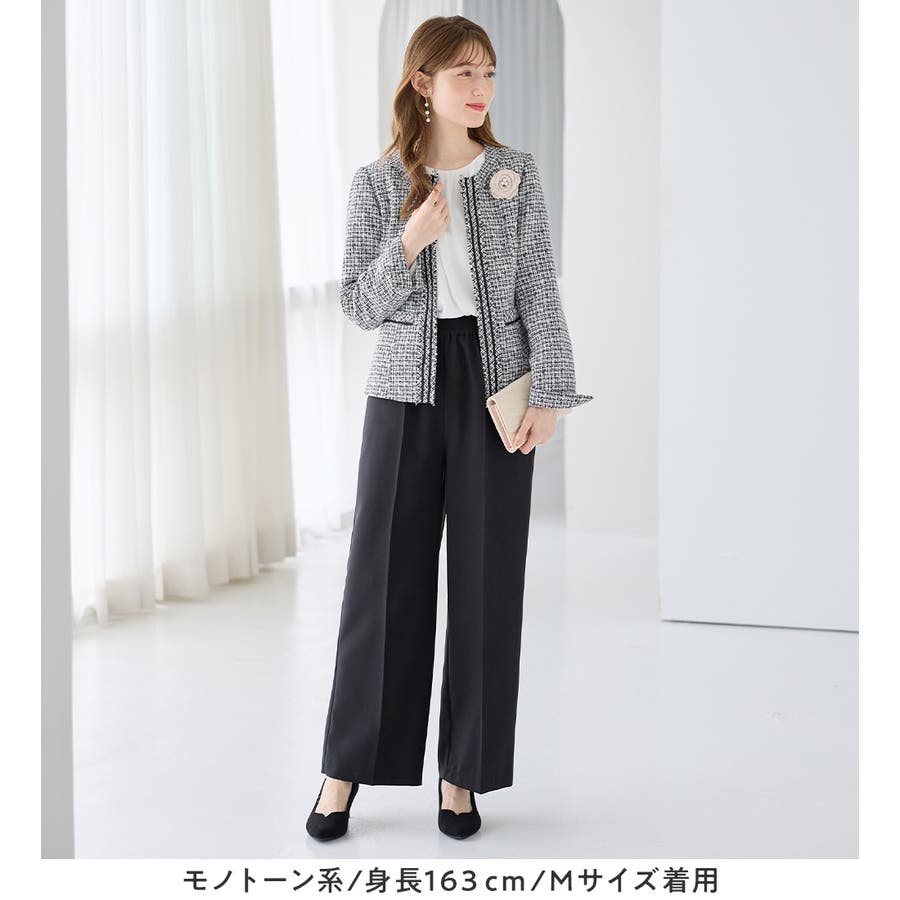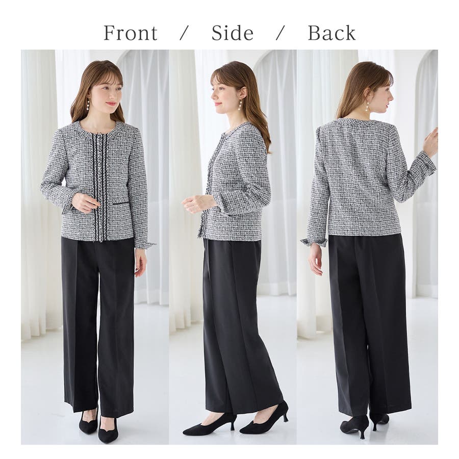 ・高級感のあるツイード素材×ノーカラーで、大人上品&シンプルな装いに。
