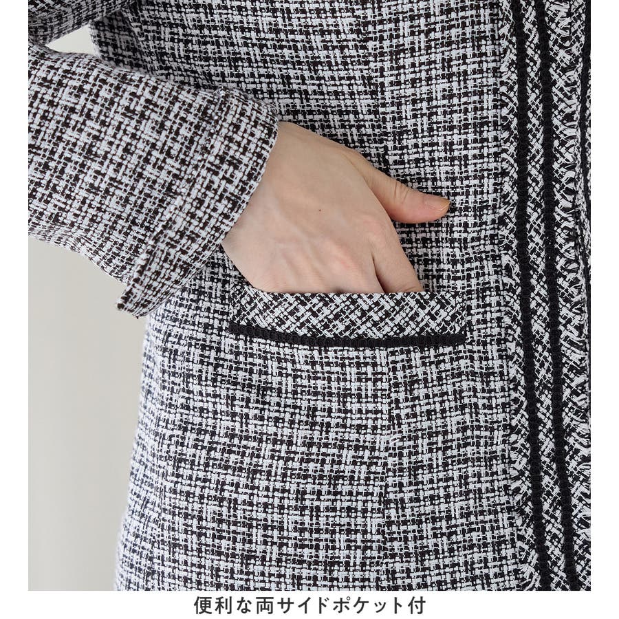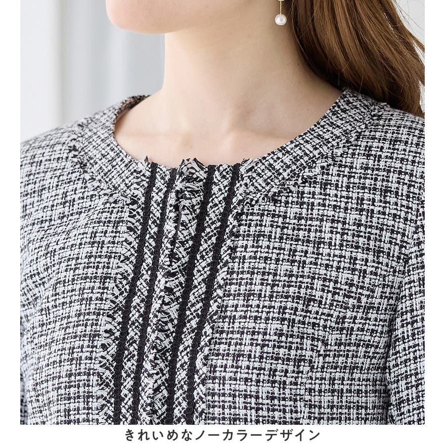 上品な印象のツイード素材×フリンジで華やかなデザイン。