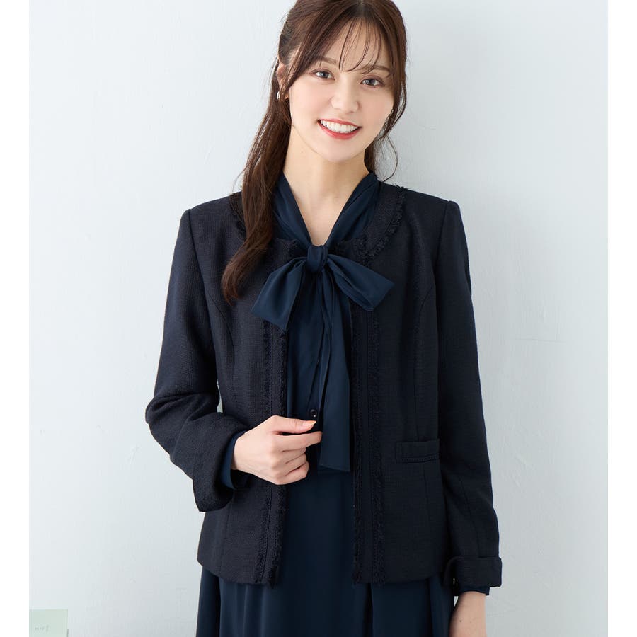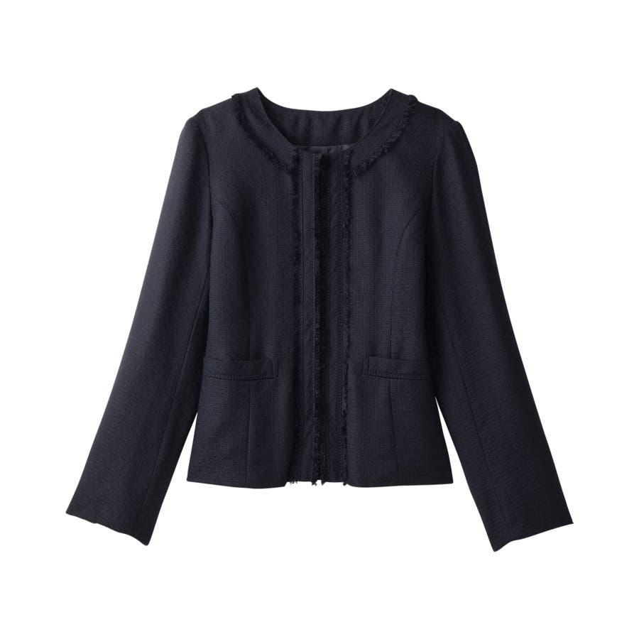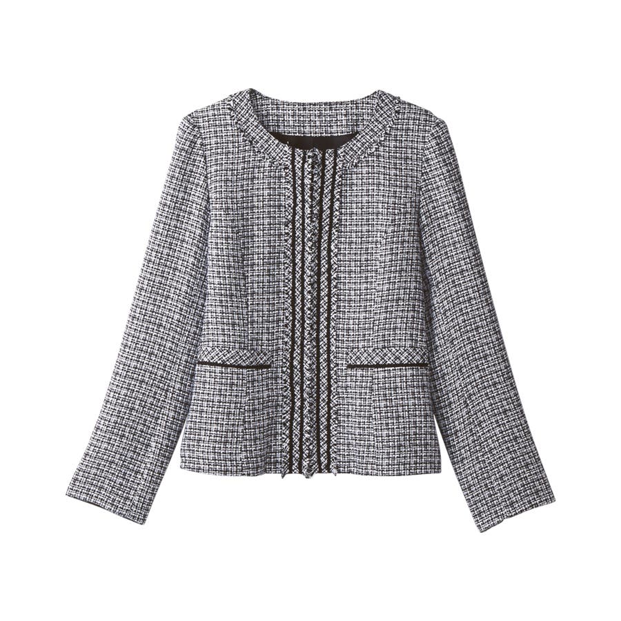 フリンジ&ノーカラーデザインが大人上品なツイードジャケット♪