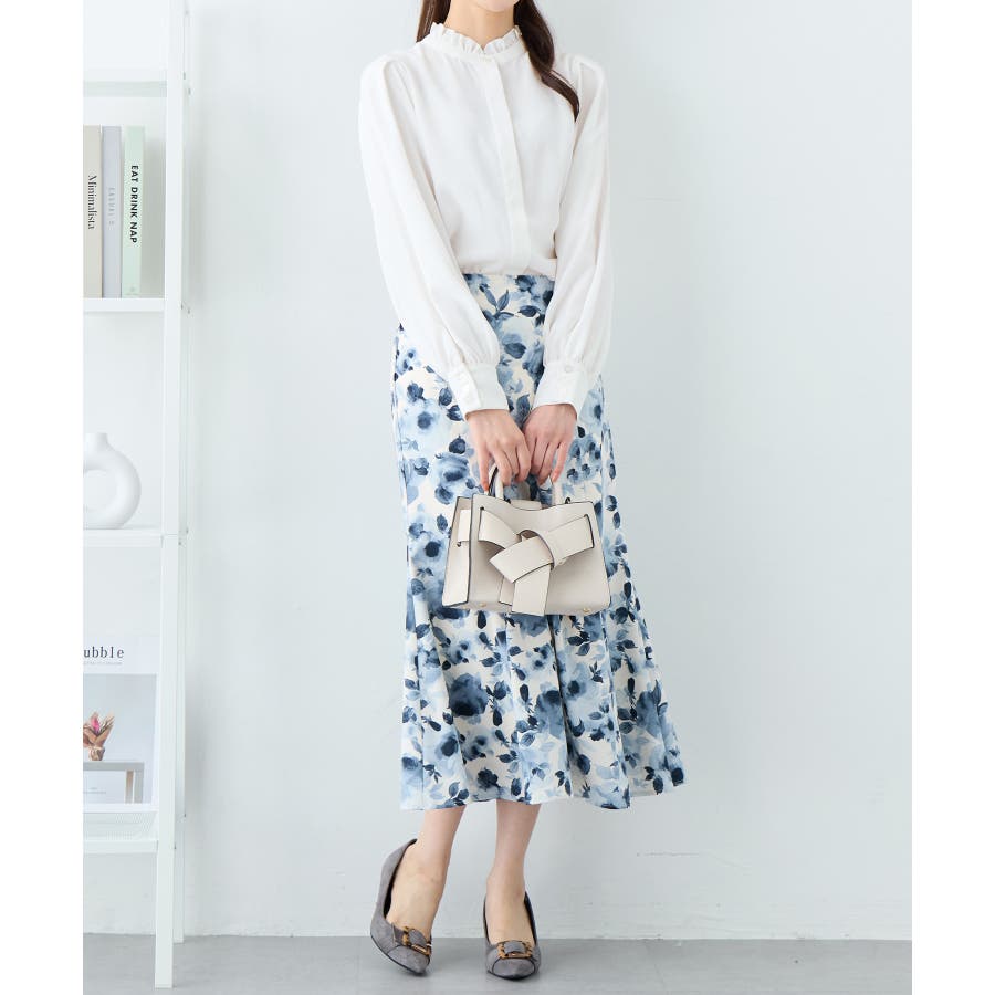 ・胸元にタックを施し、裾にかけてふわっと広がるシルエット