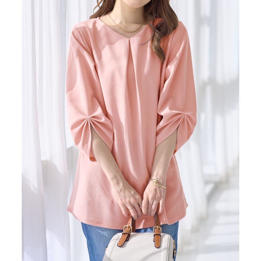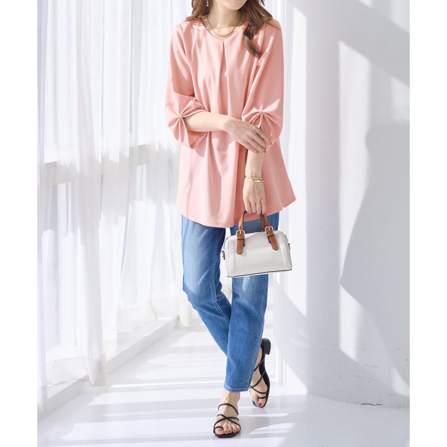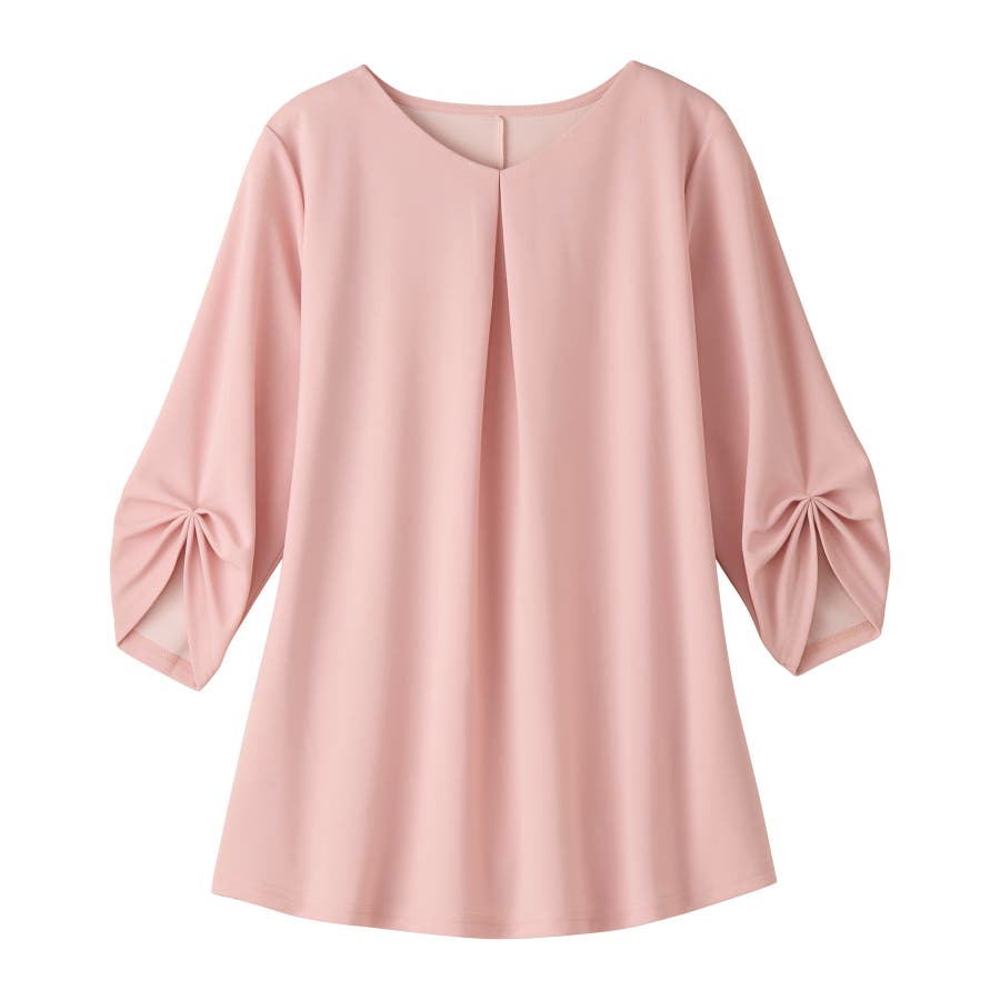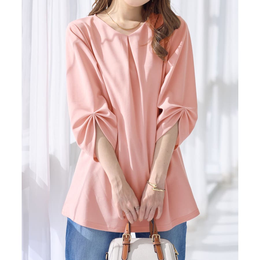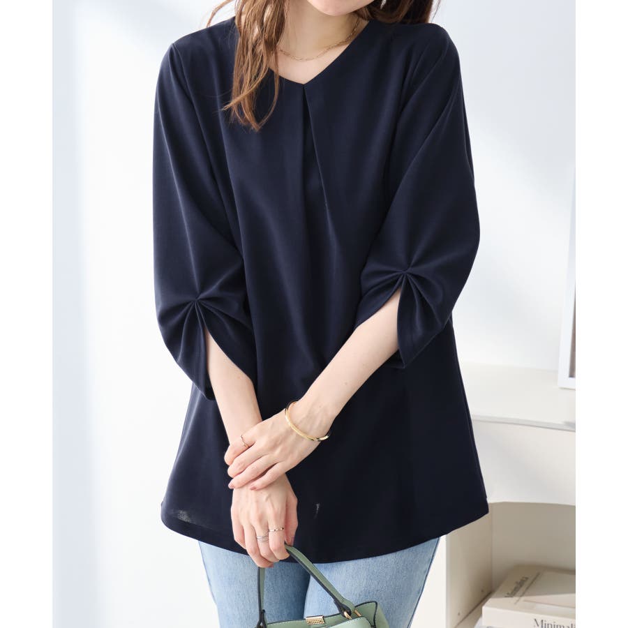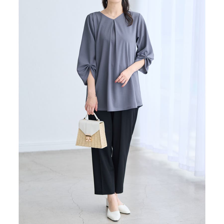 衿元と袖口のタックデザインが大人可愛く、上品魅せを叶えます!
