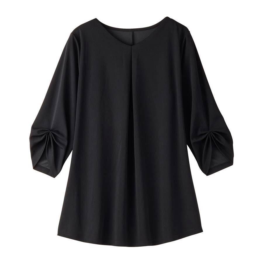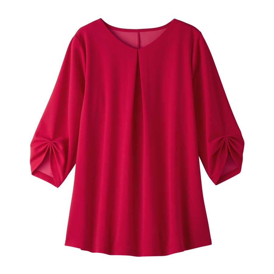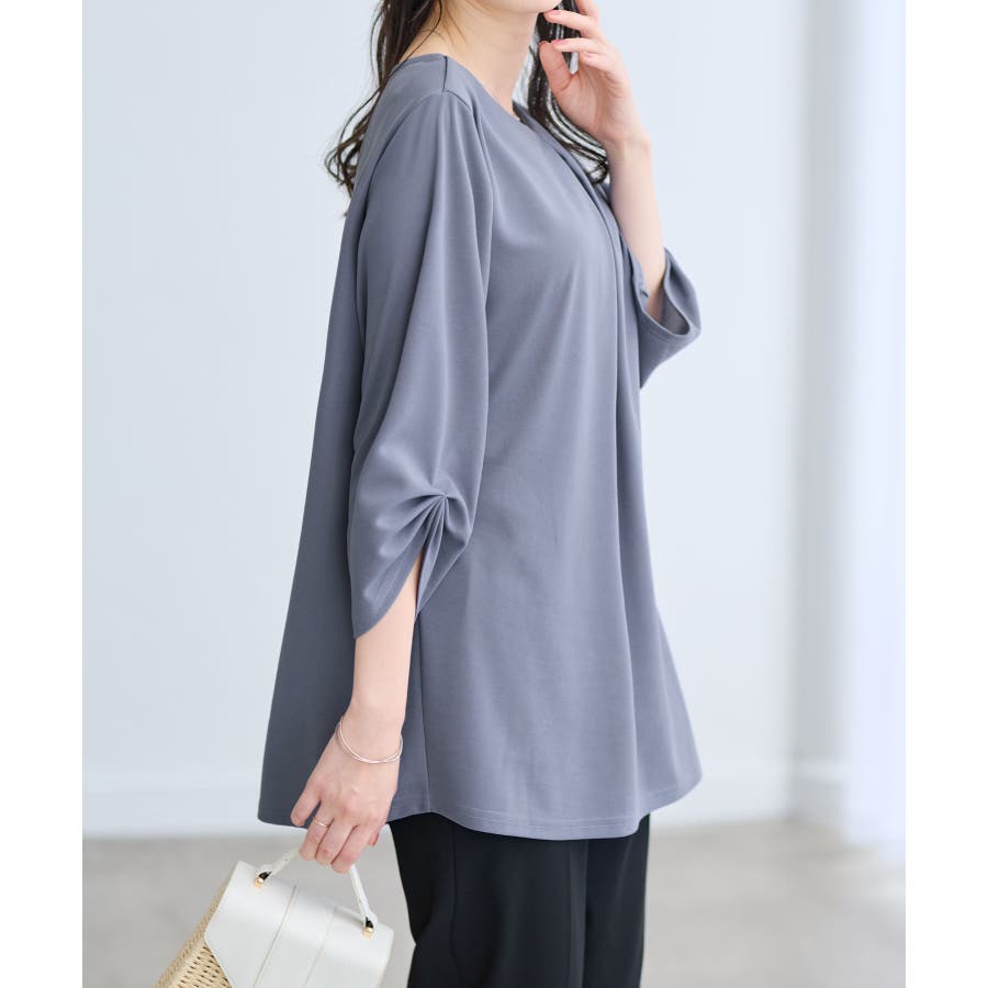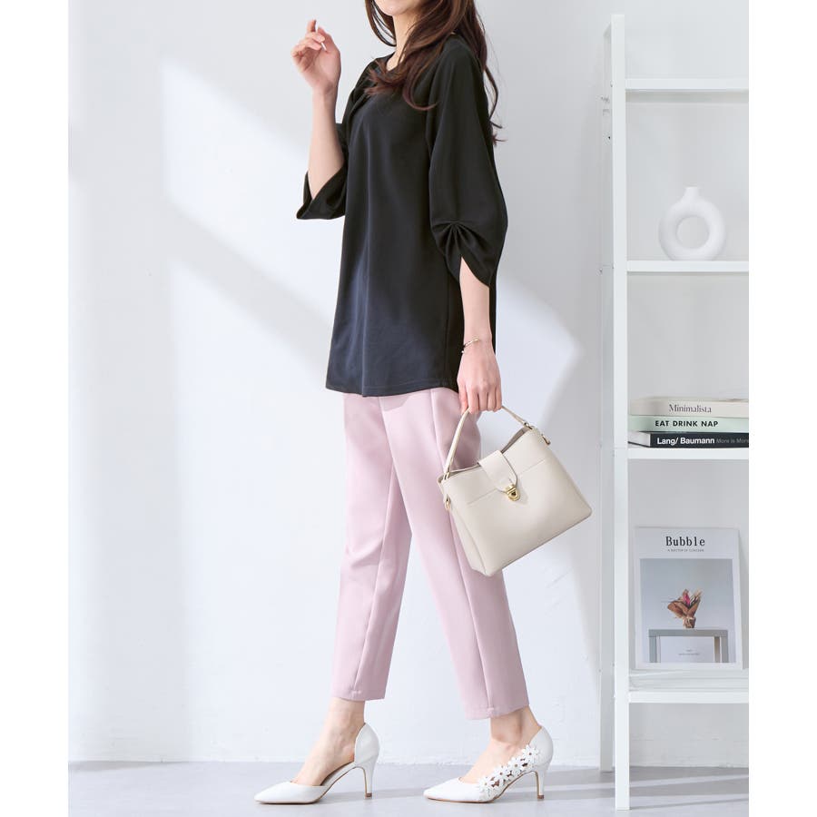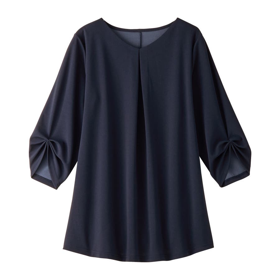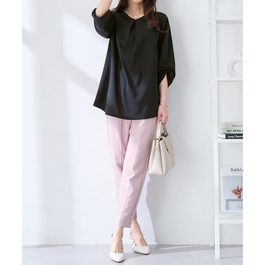 衿元と袖口のタックデザインが大人可愛く、上品魅せを叶えます!