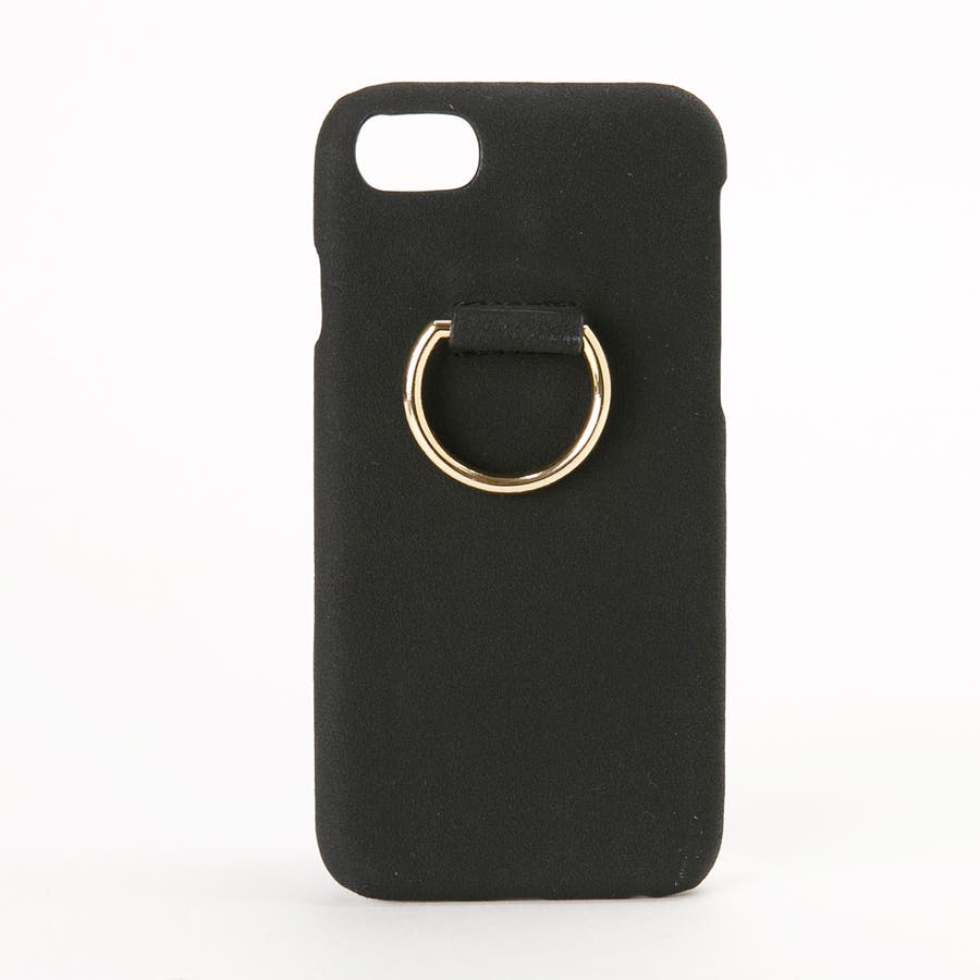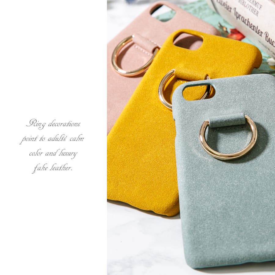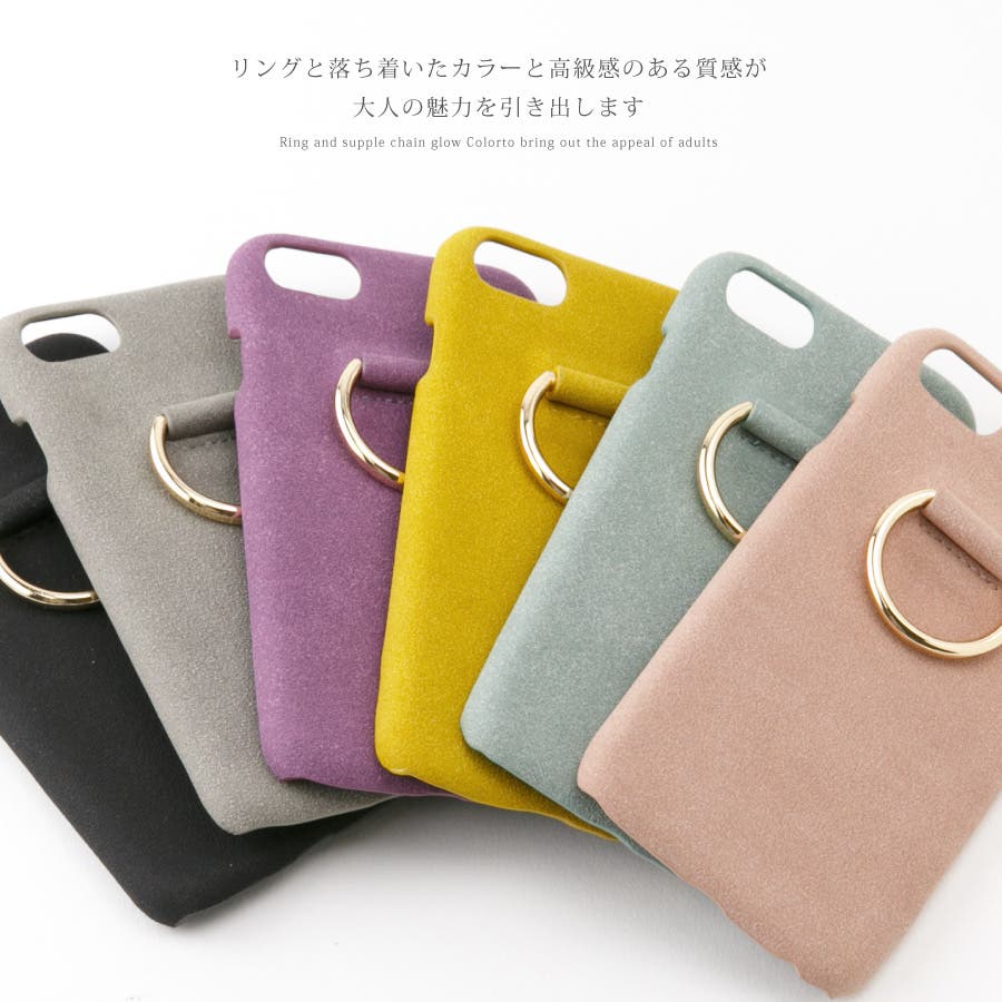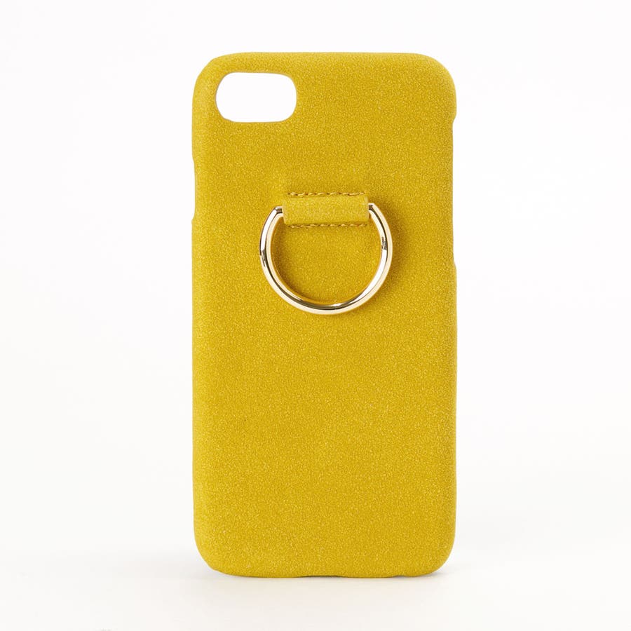 ◆特徴:プレーンなスエード調ケースに、華やぎゴールドリングをトッピングしたシンプルなデザイン。