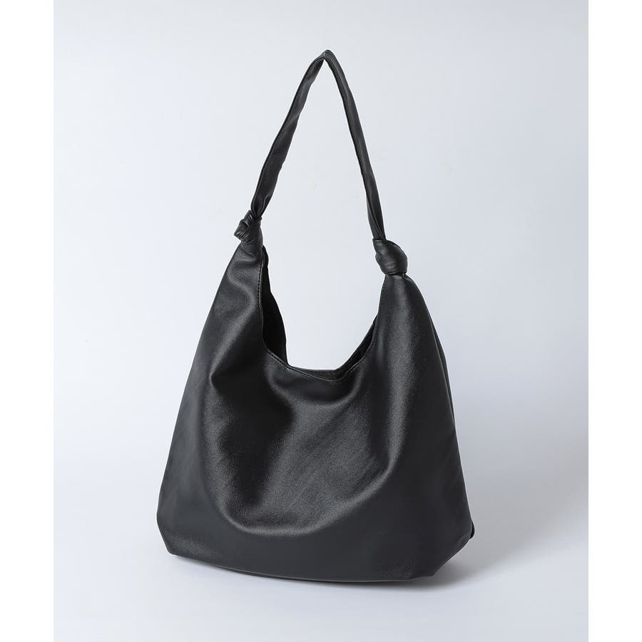 ・ハンドルを結んだデザインがシンプルなバッグにアクセントをプラス。
