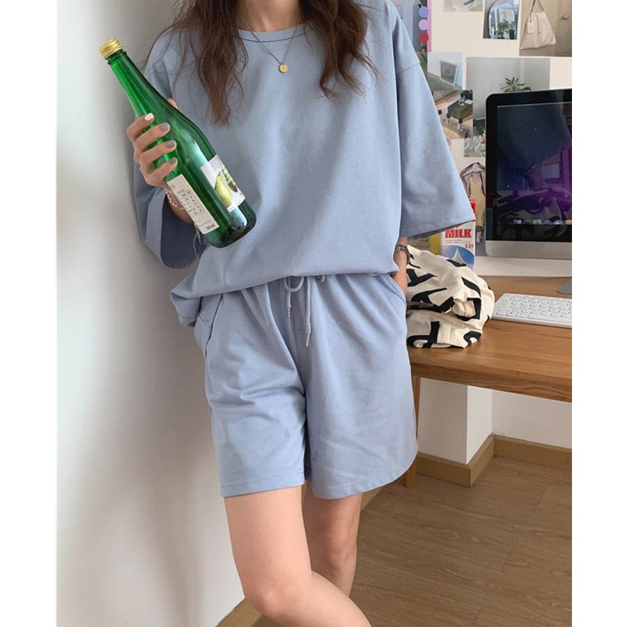 オーバーサイズトップス ハーフパンツセットアップ ルームウェア
