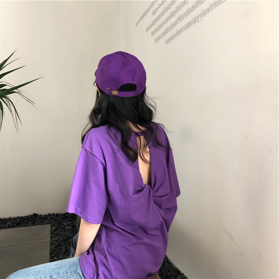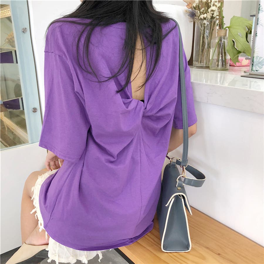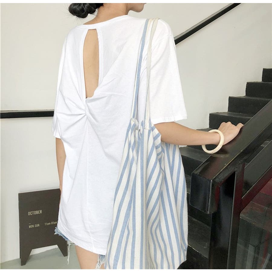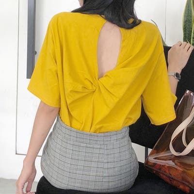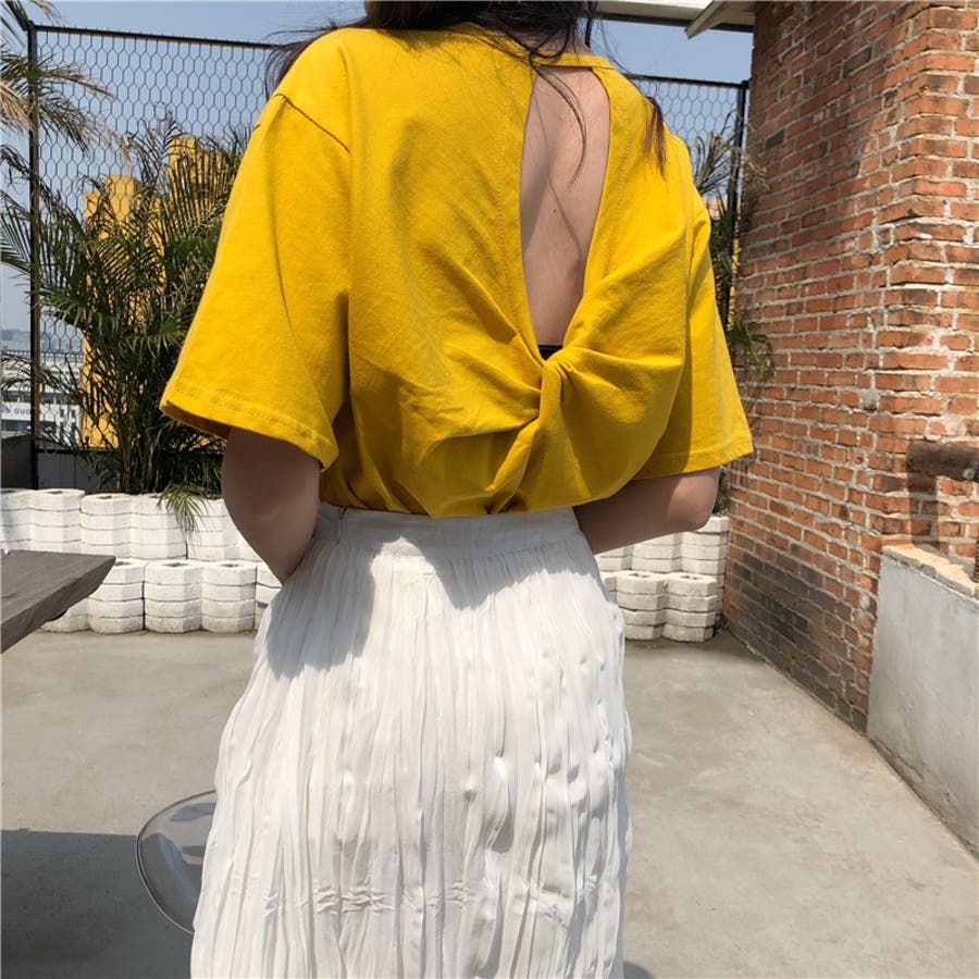バックツイスト開きルーズTシャツ 春 夏