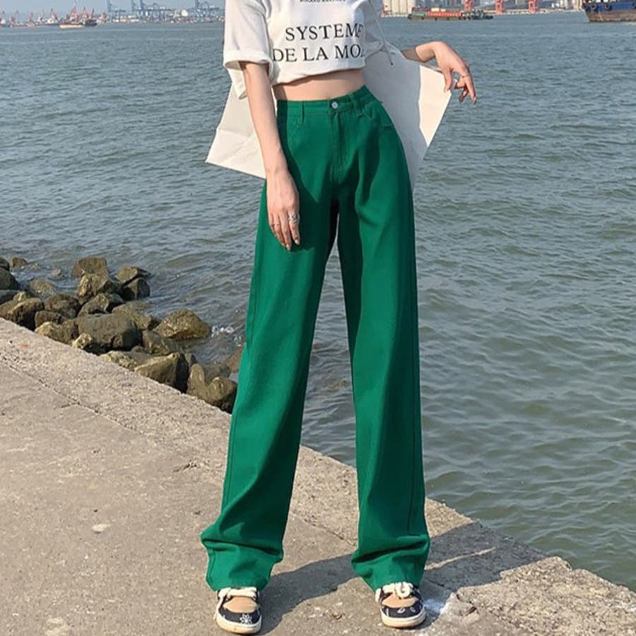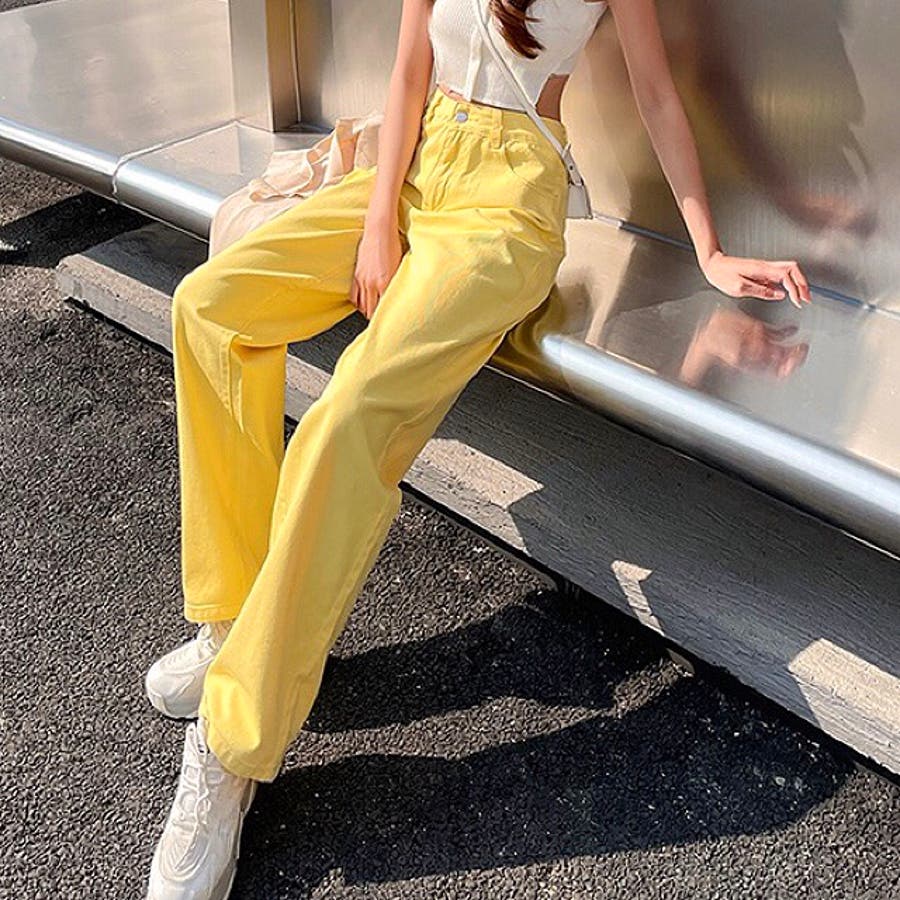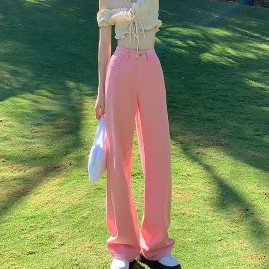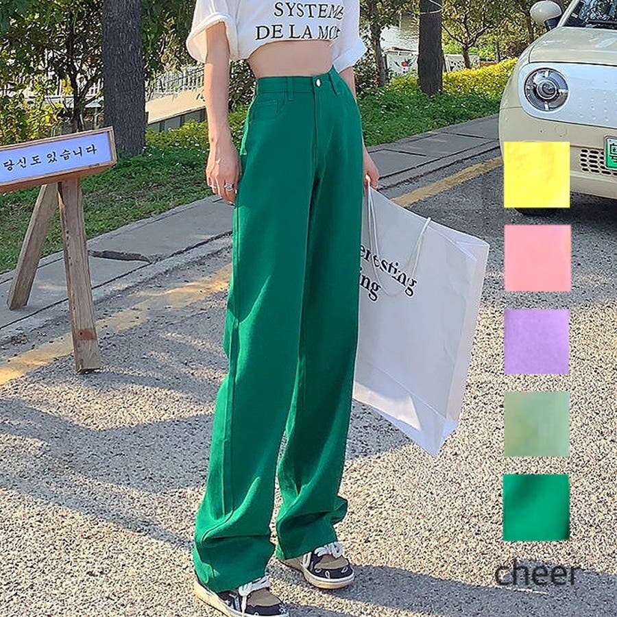 ハイウエストワイドストレートカラーパンツ 韓国 パンツ
