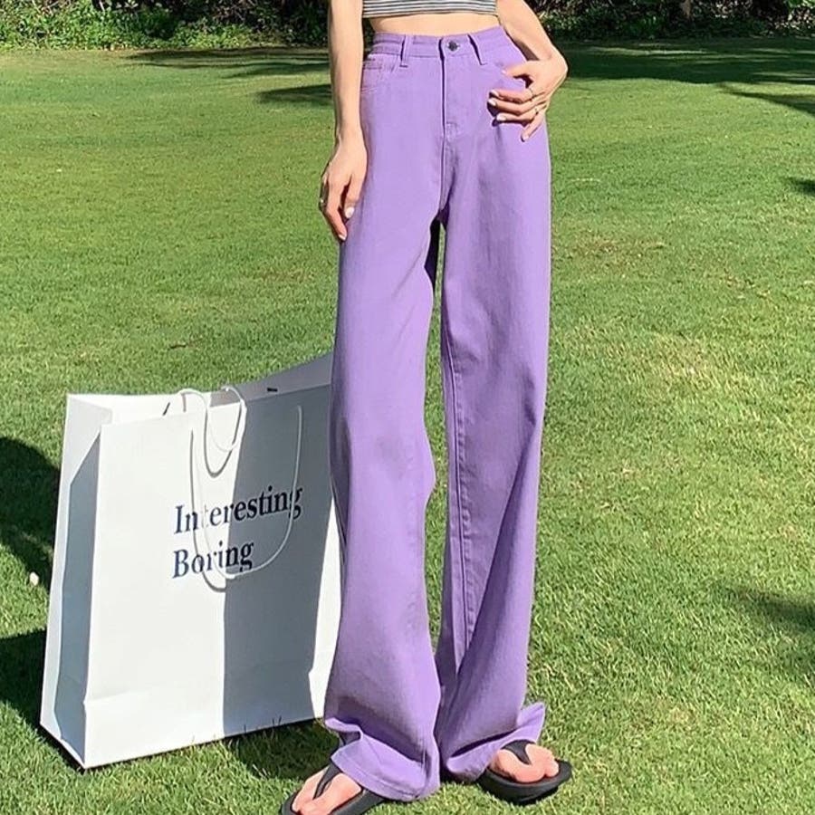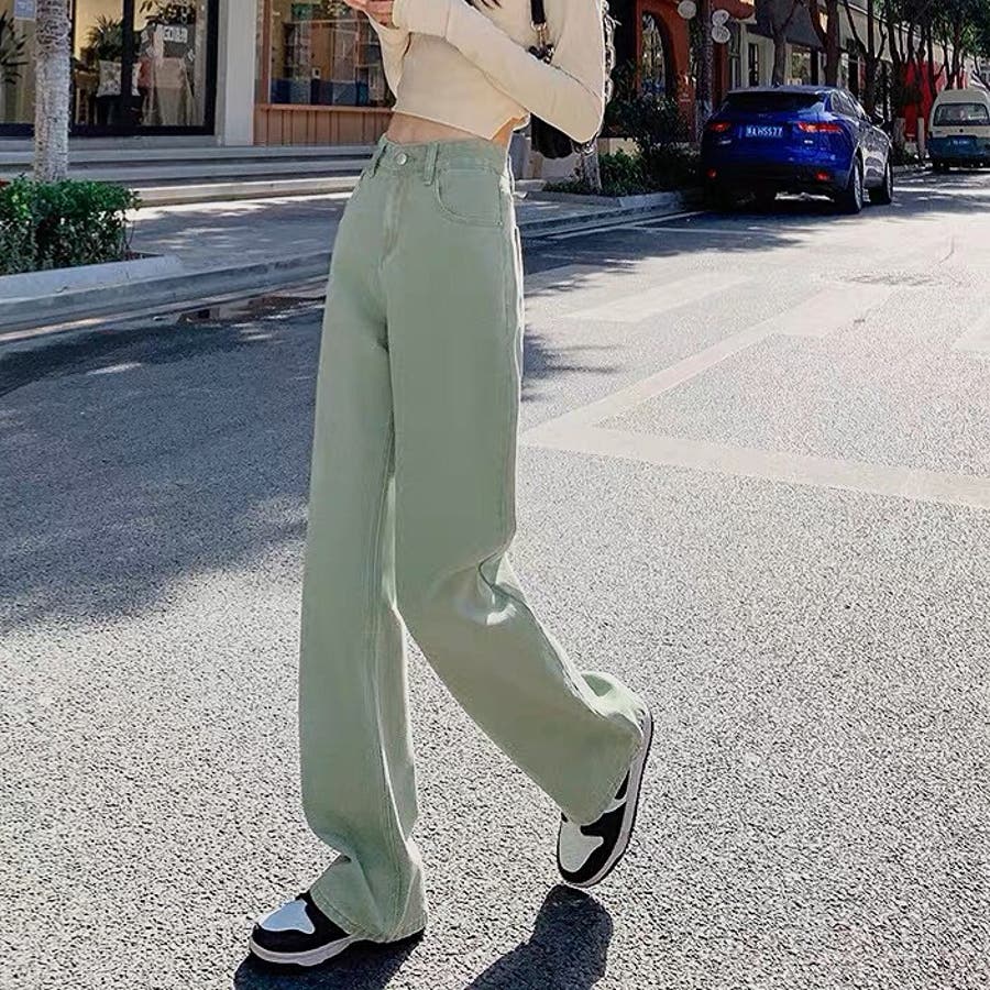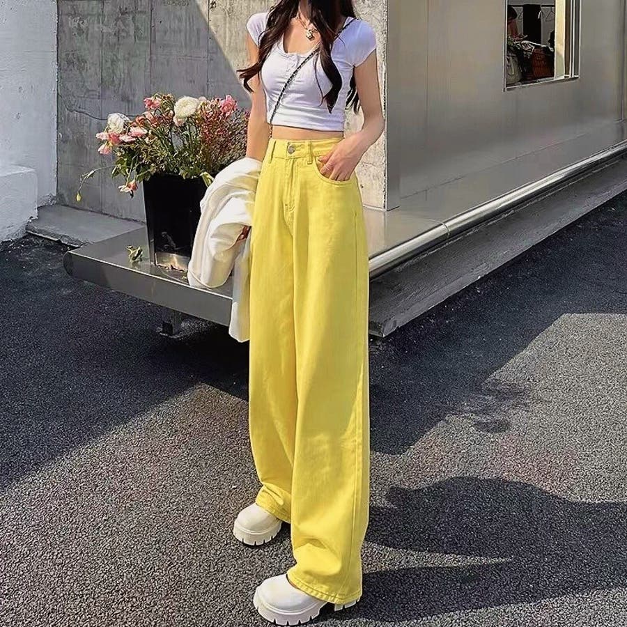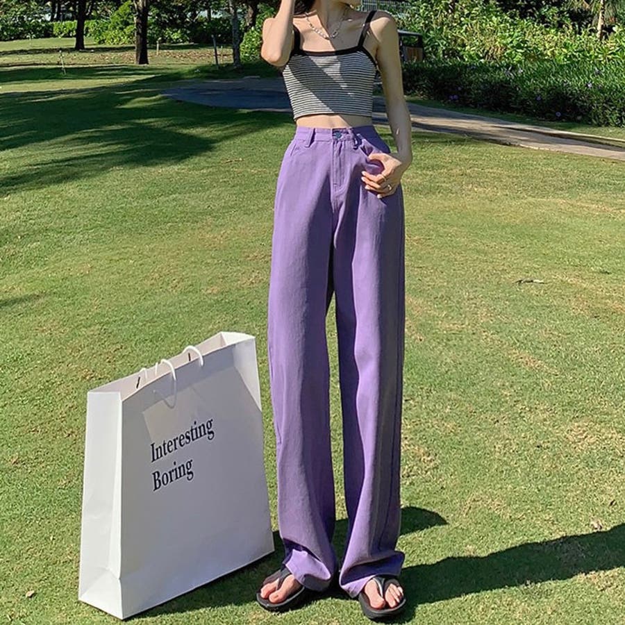 ハイウエストワイドストレートカラーパンツ 韓国 パンツ