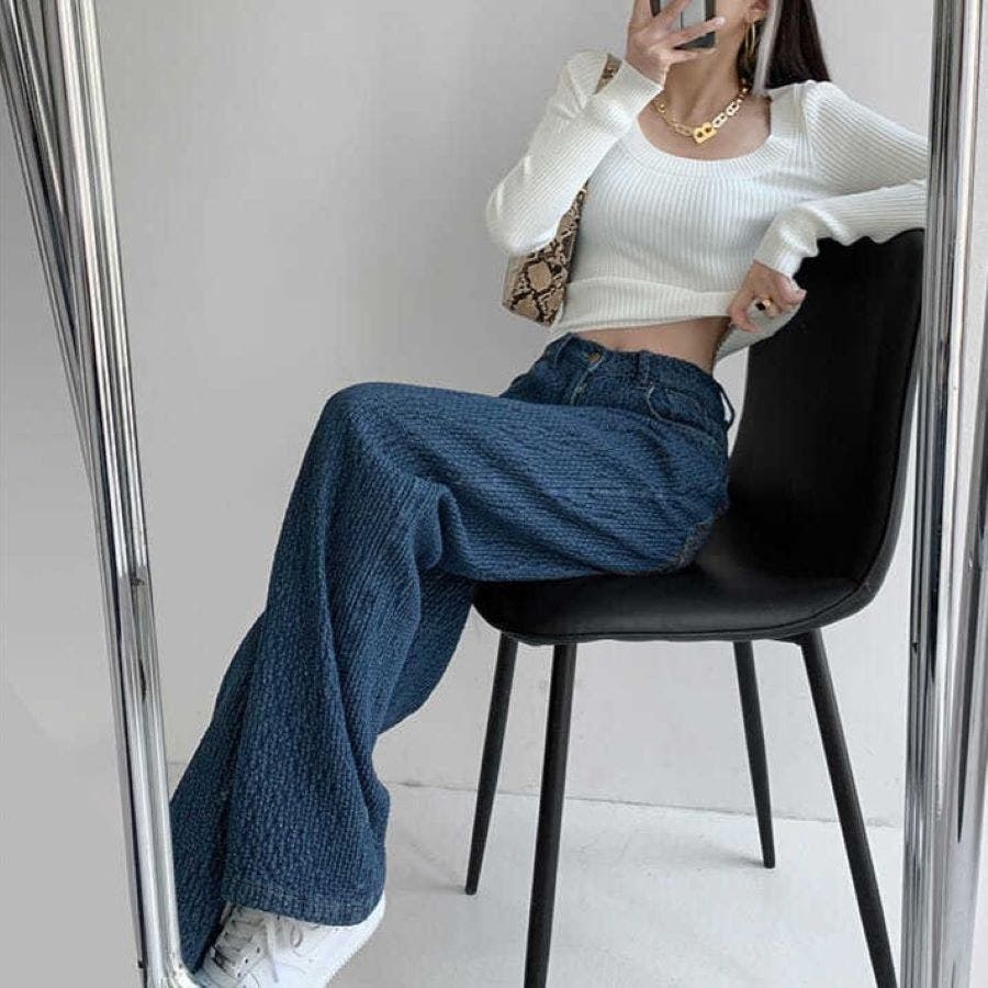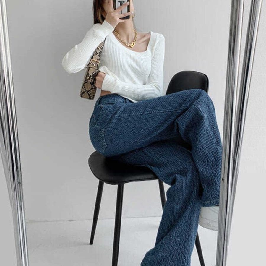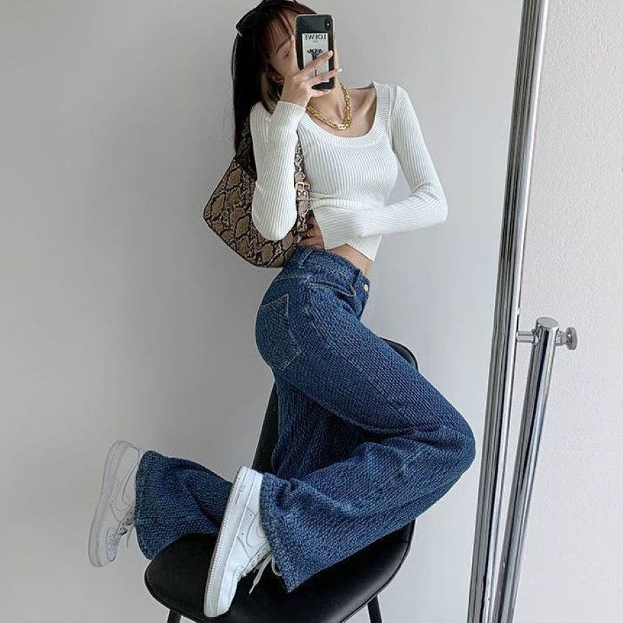 立体デニムパンツ 秋 冬