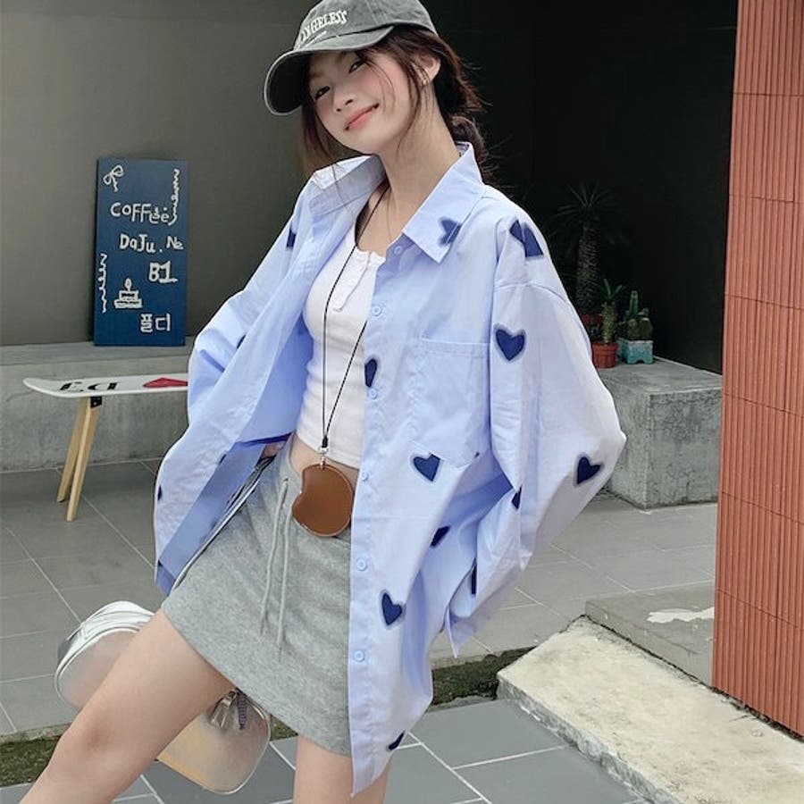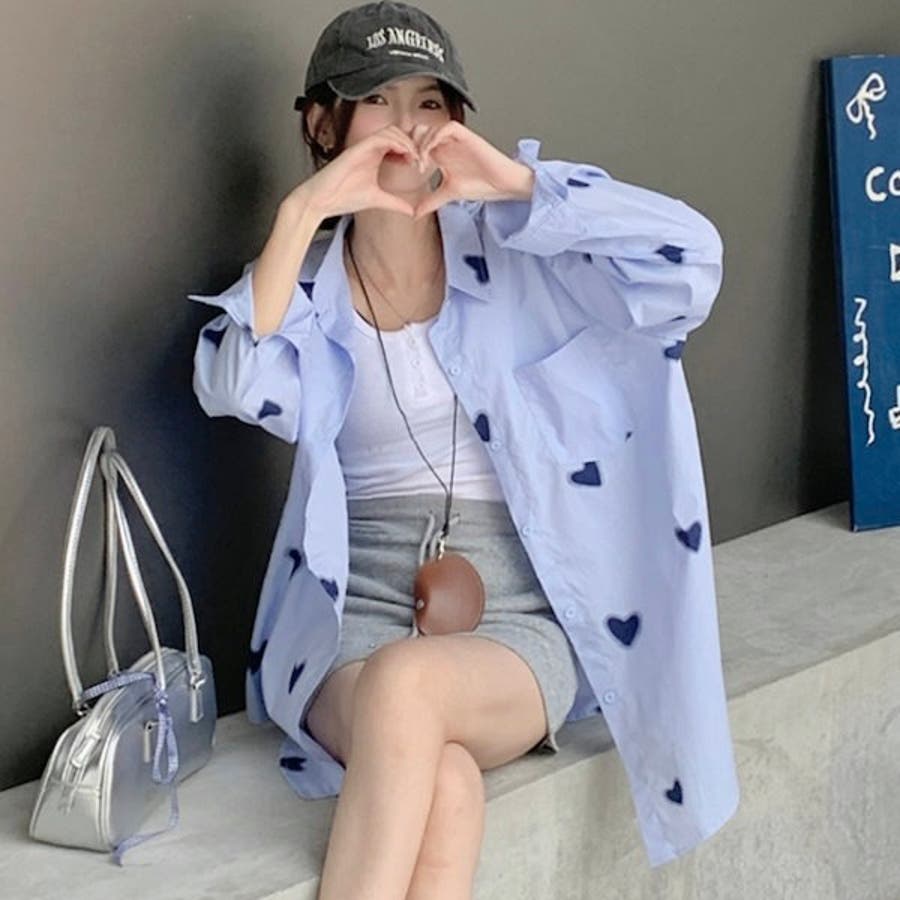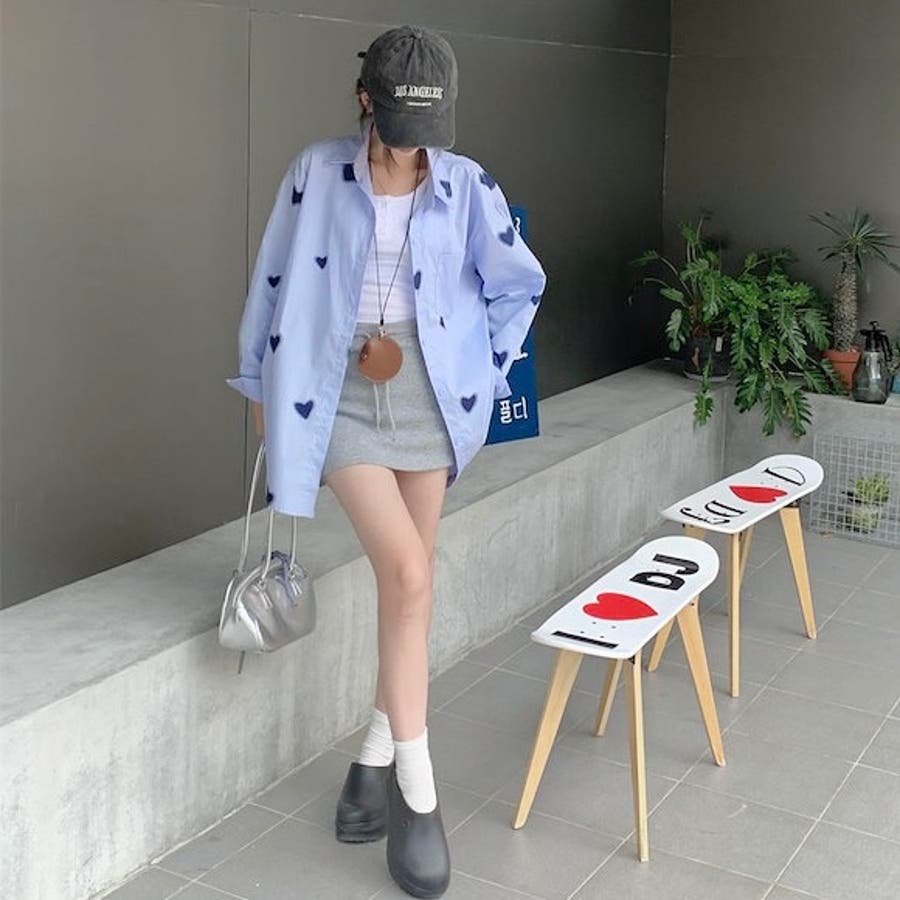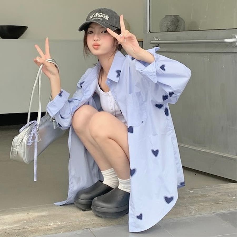 オーバーサイズなのでワンピースっぽくして一枚で着るのも可愛い。