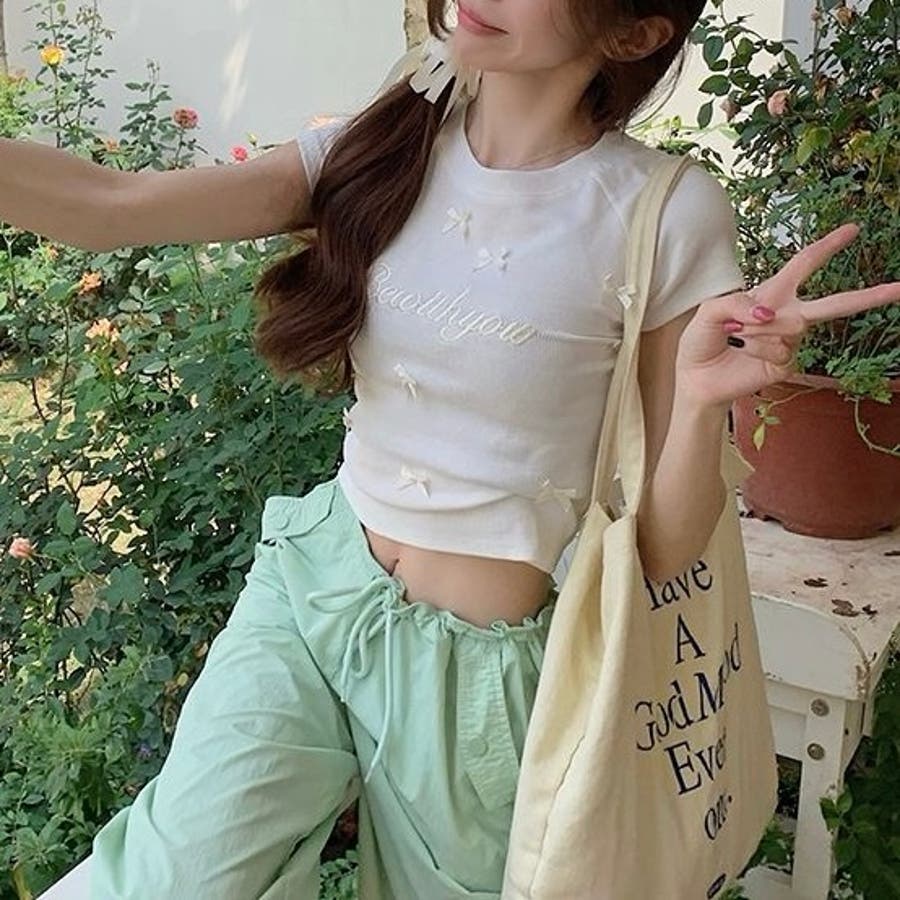 ショート丈のスカートやボリュームスカートと合わせて、量産・地雷系コーデにもぴったり。