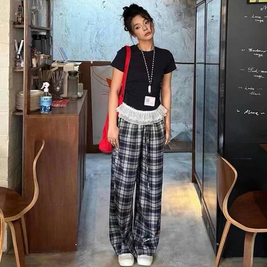 袖や裾のレース切り替えがふんわり甘く、韓国っぽガーリームードを演出してくれます