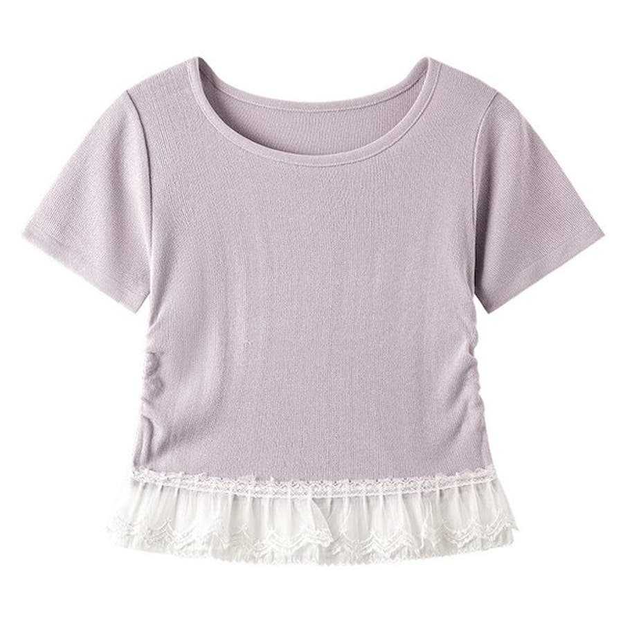 サイドギャザーレースニットトップス