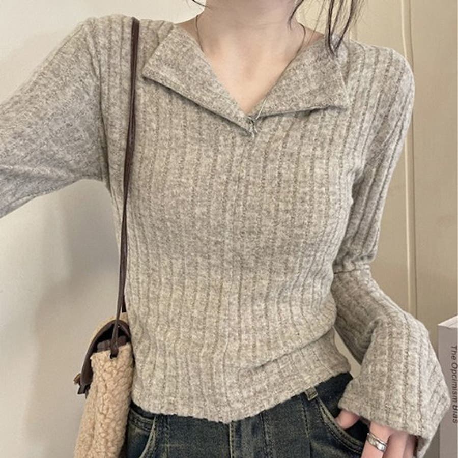 ふんわり袖×Vネックの黄金バランスで、1枚で“映え”が叶うニットトップスが登場♡