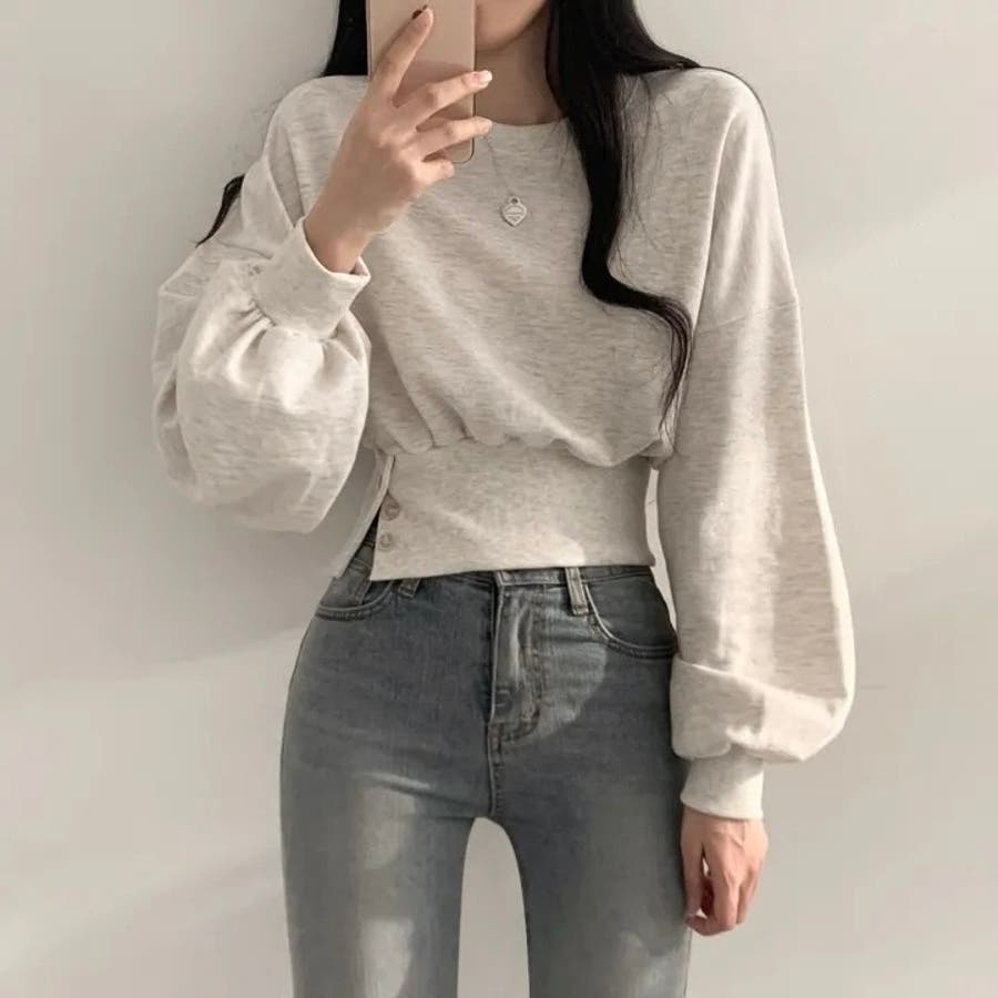 ドロップショルダー×ボリューミーパフスリーブが旬コーデにおすすめです。