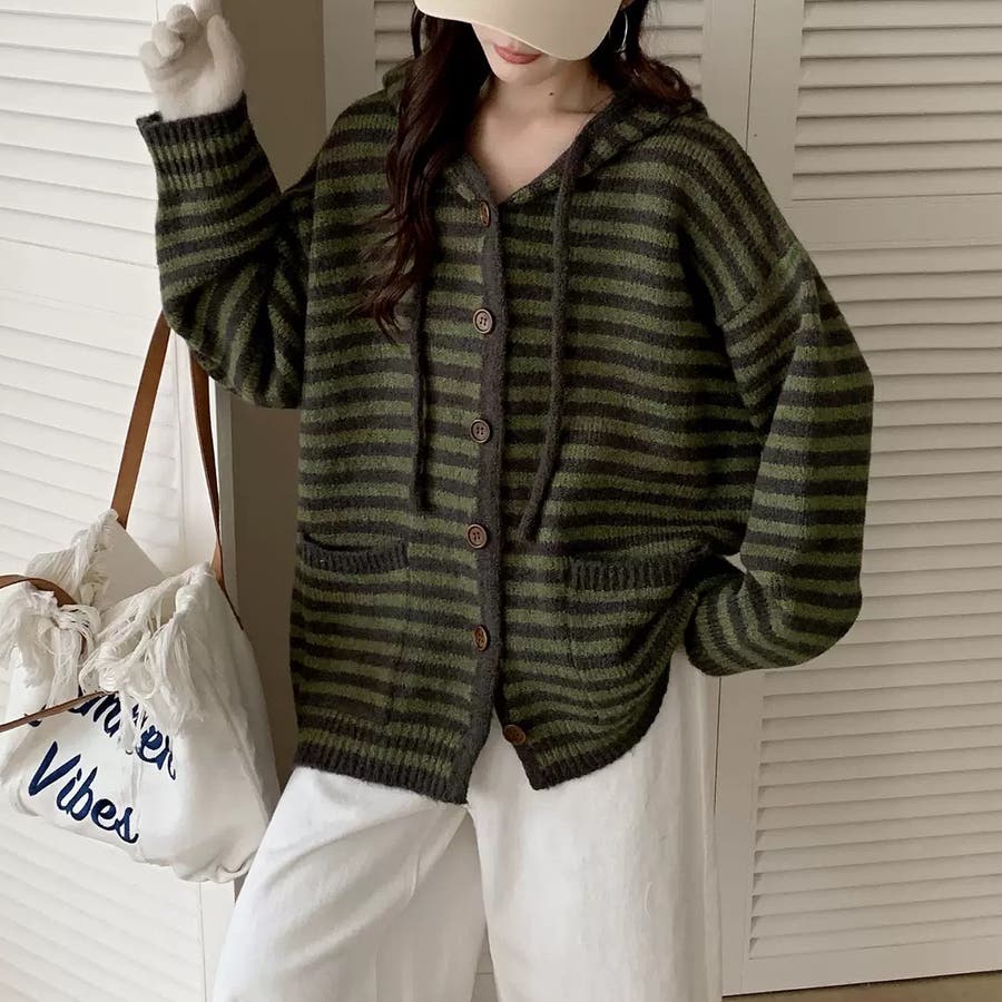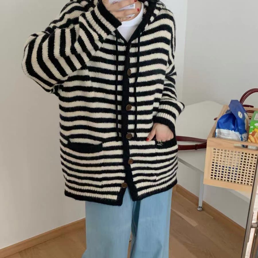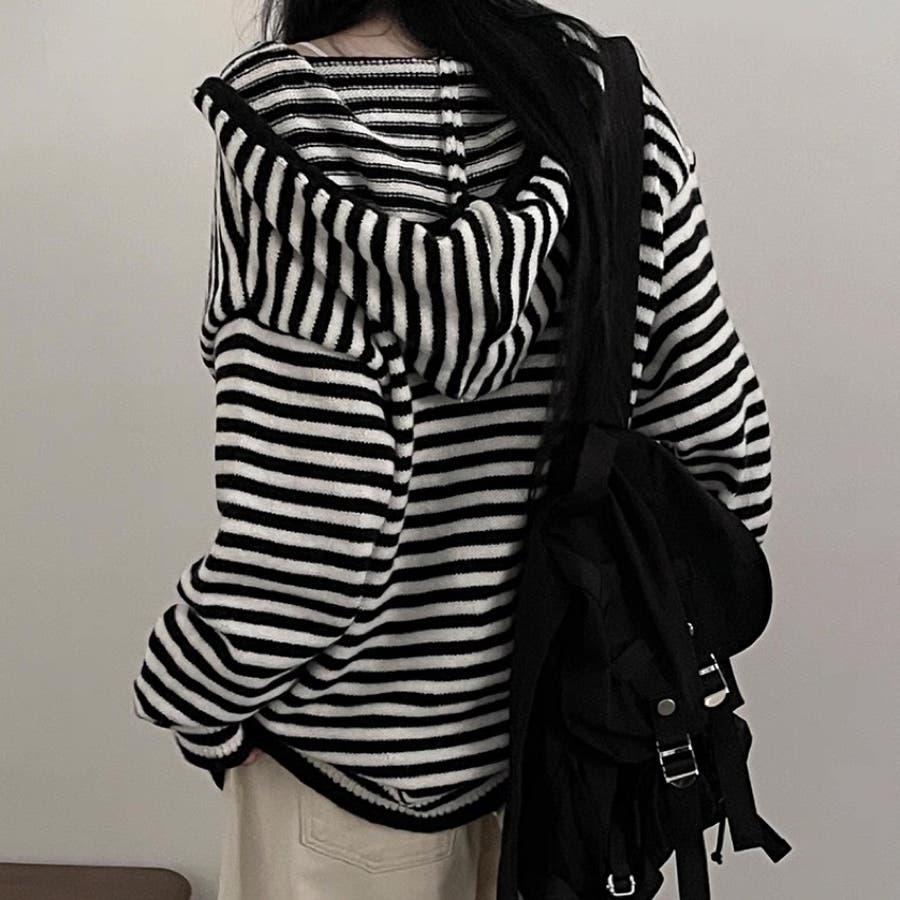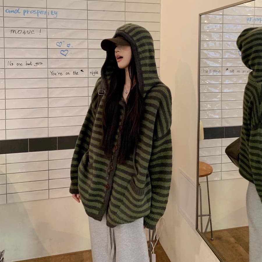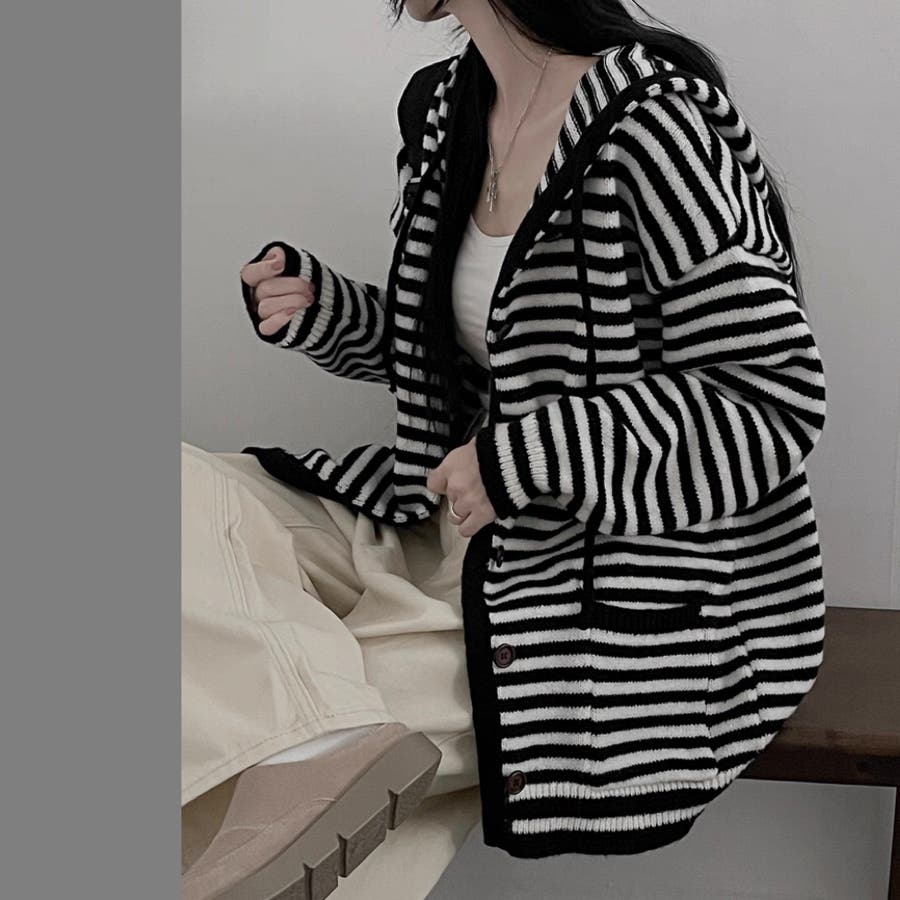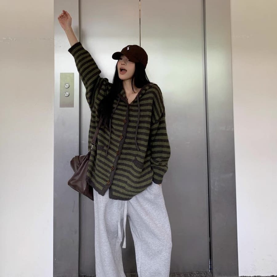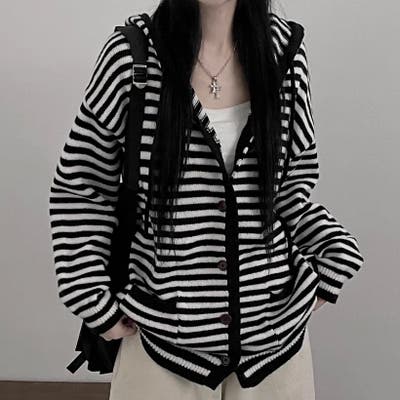 ゆるっとしたオーバーサイズ感がストリートライクなボーダーニットカーディガン。