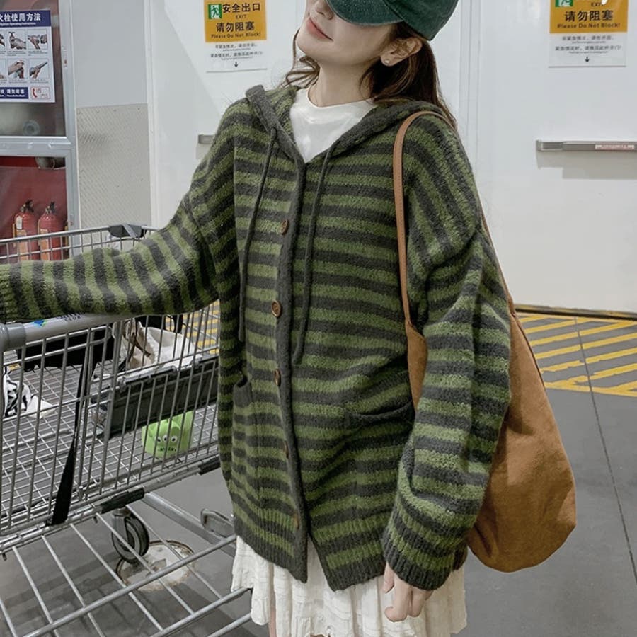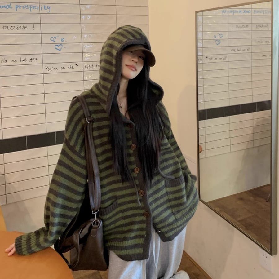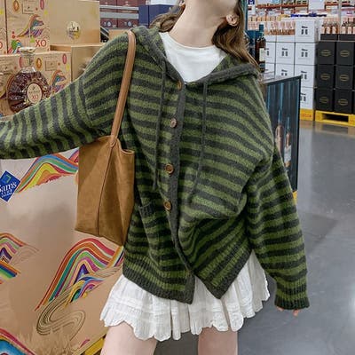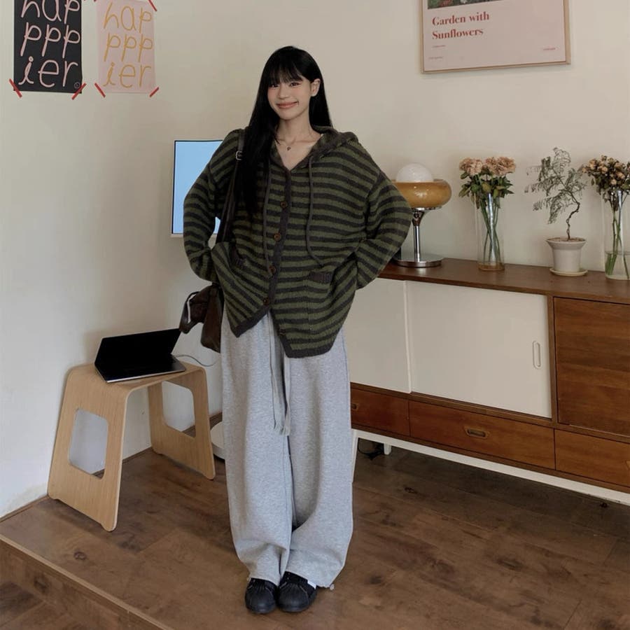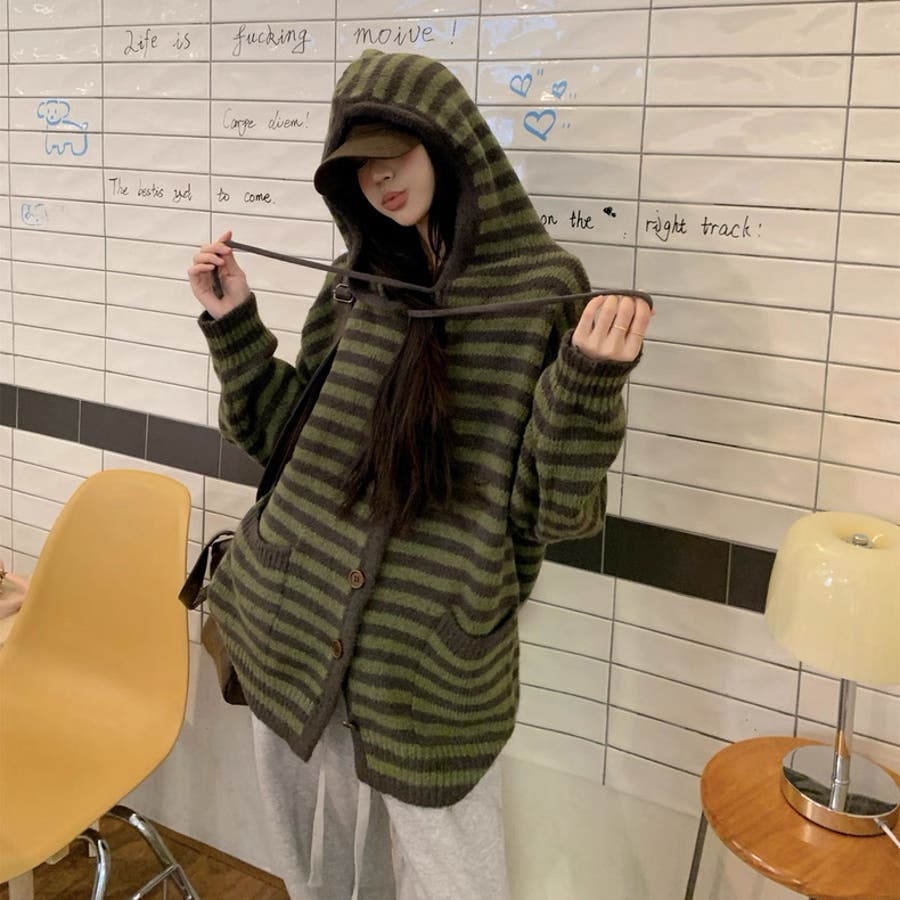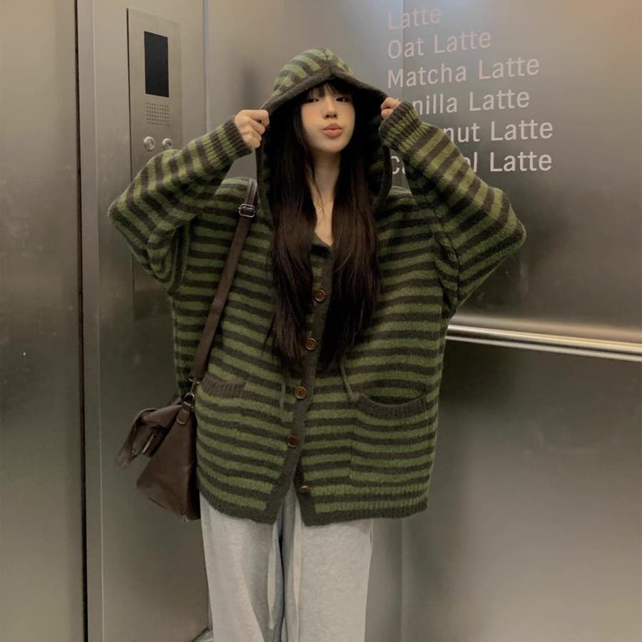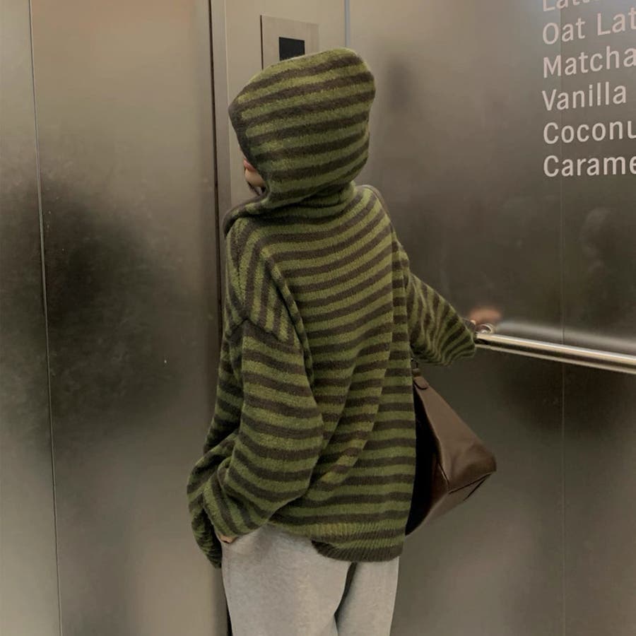 ゆるっとしたオーバーサイズ感がストリートライクなボーダーニットカーディガン。