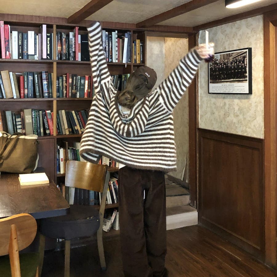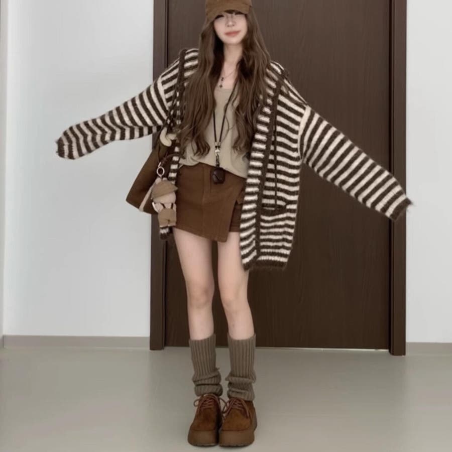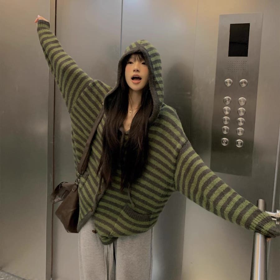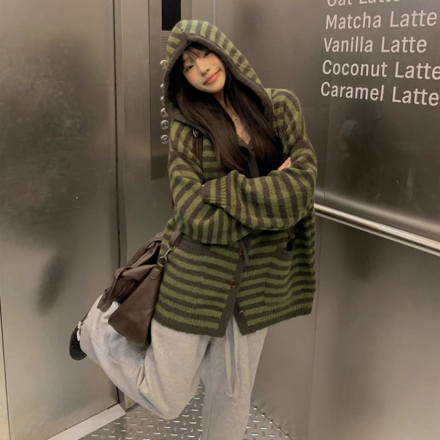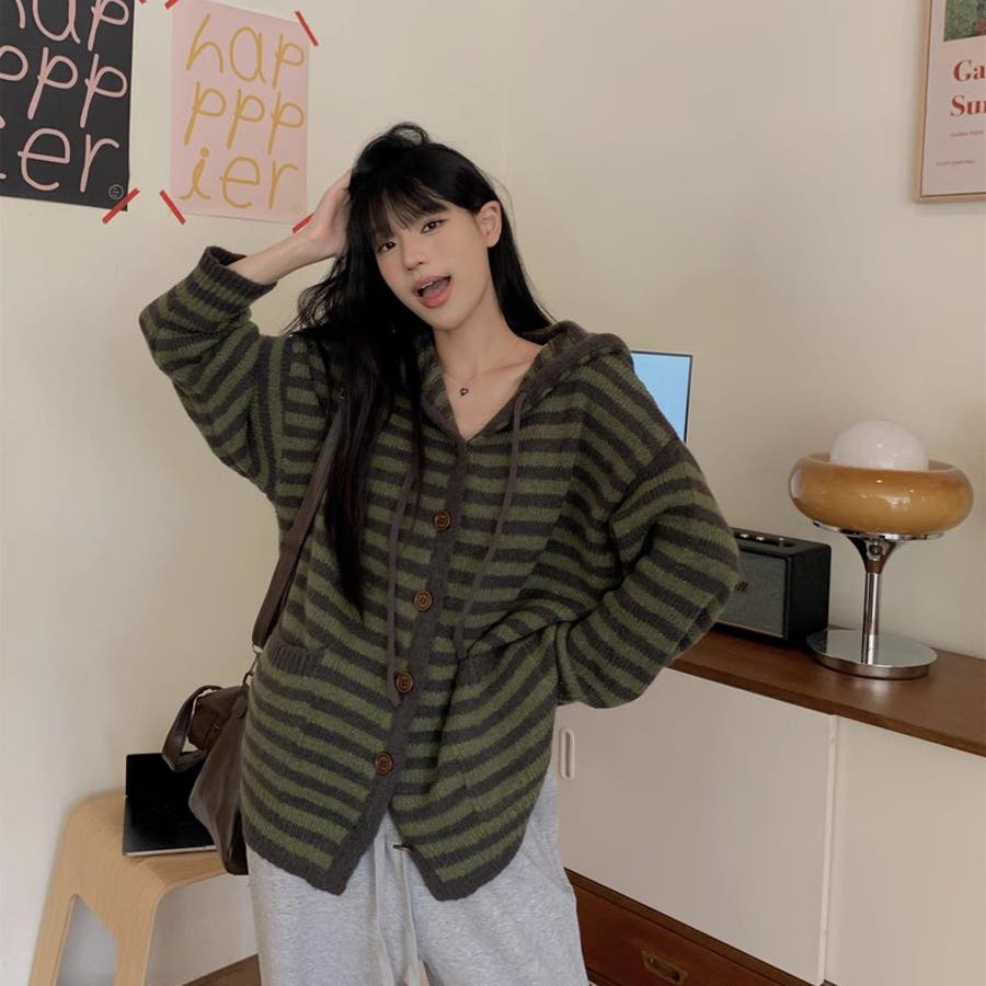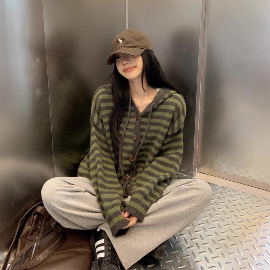 ゆるっとしたオーバーサイズ感がストリートライクなボーダーニットカーディガン。
