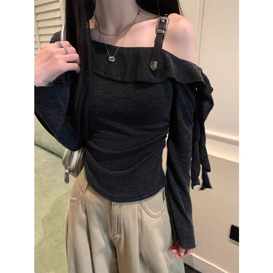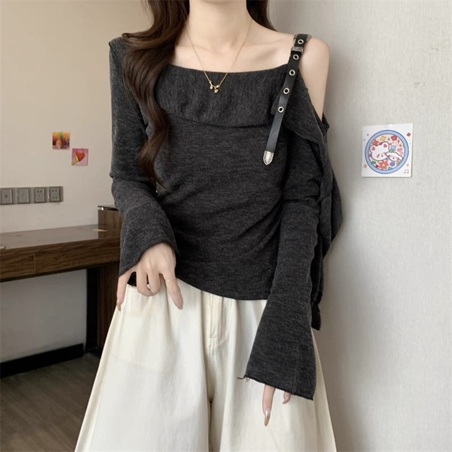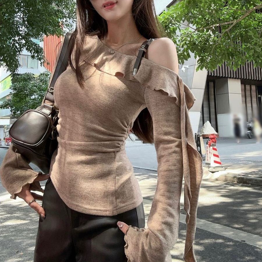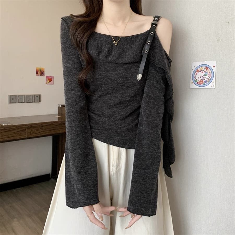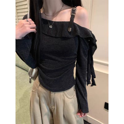 シンプルながら今年らしいデザインのオフショルダーニットトップス