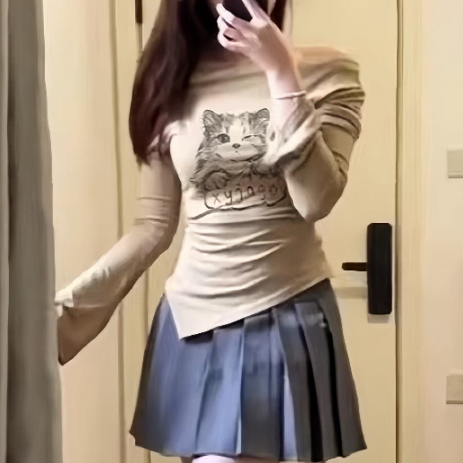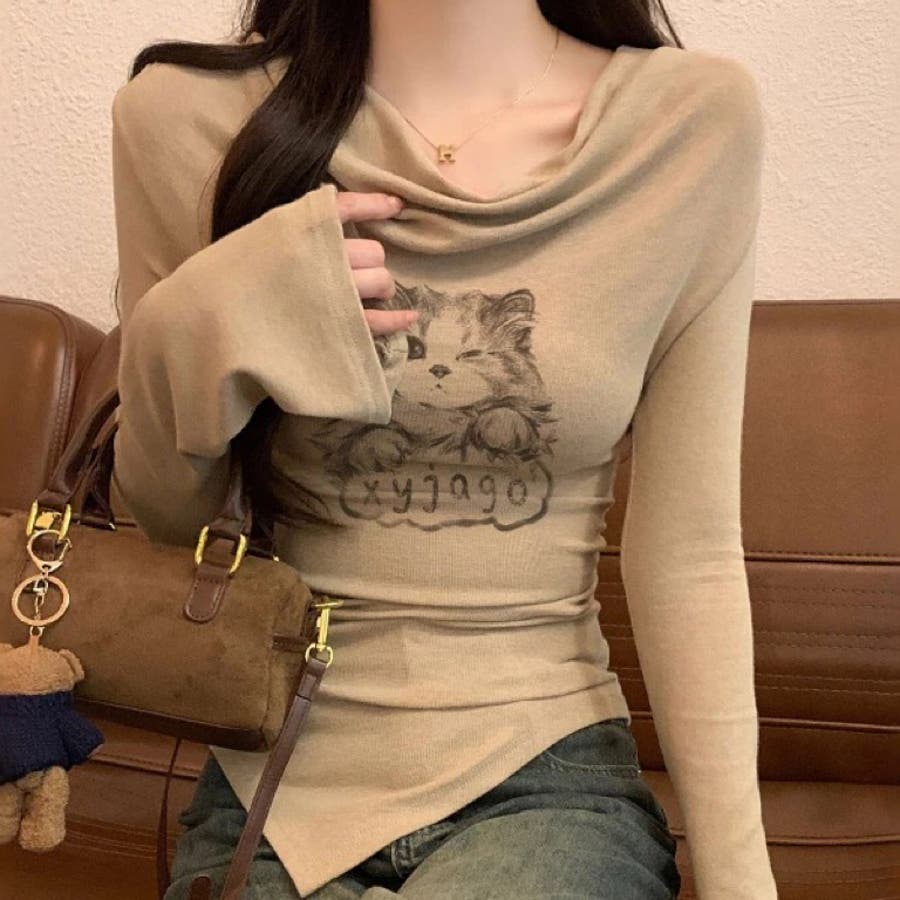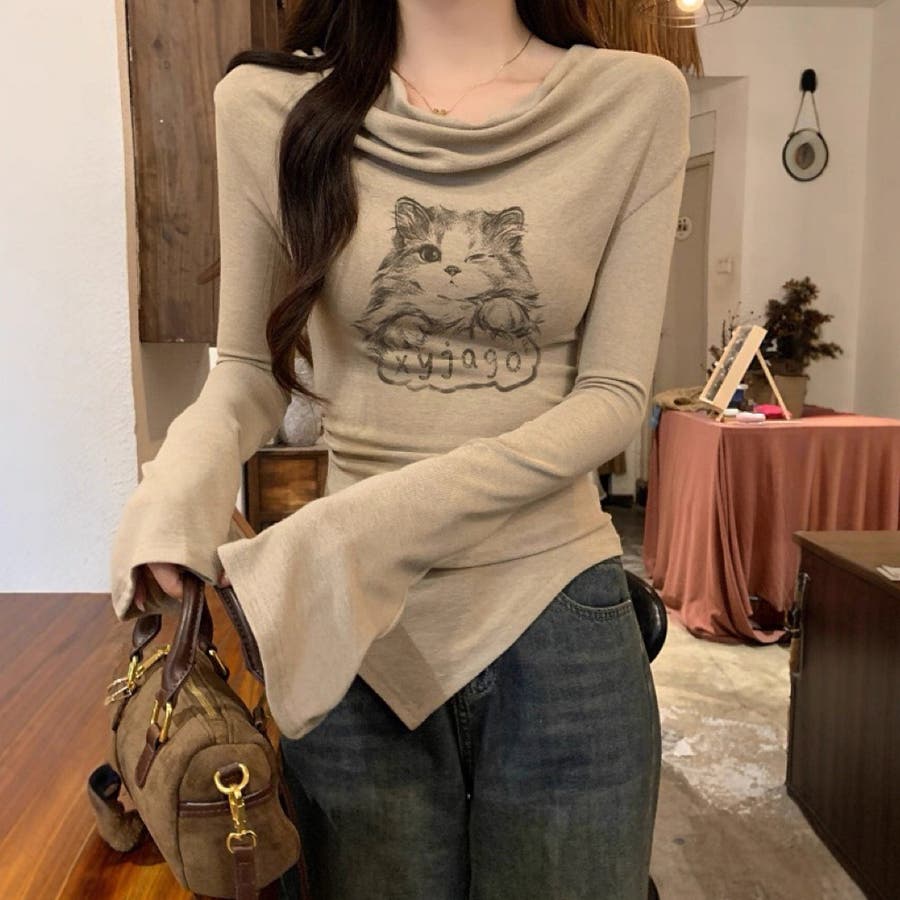 catプリントがアクセントになり、一枚でもレイヤードでも楽しめます◎