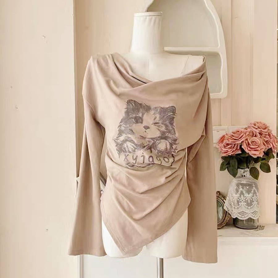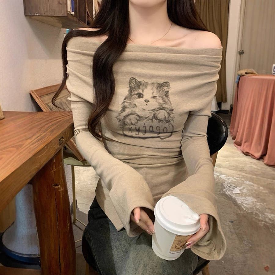 catプリント オフショルアシメ2WAYトップス