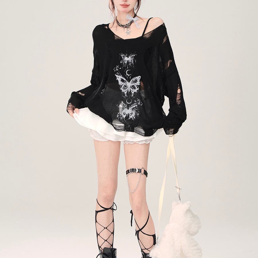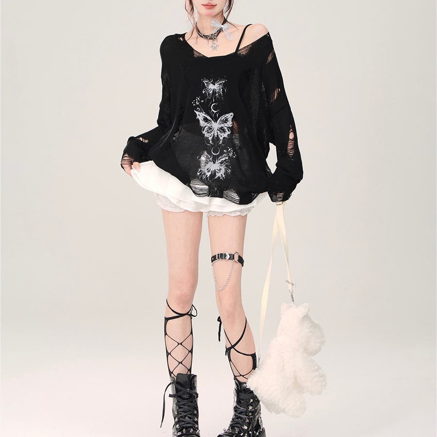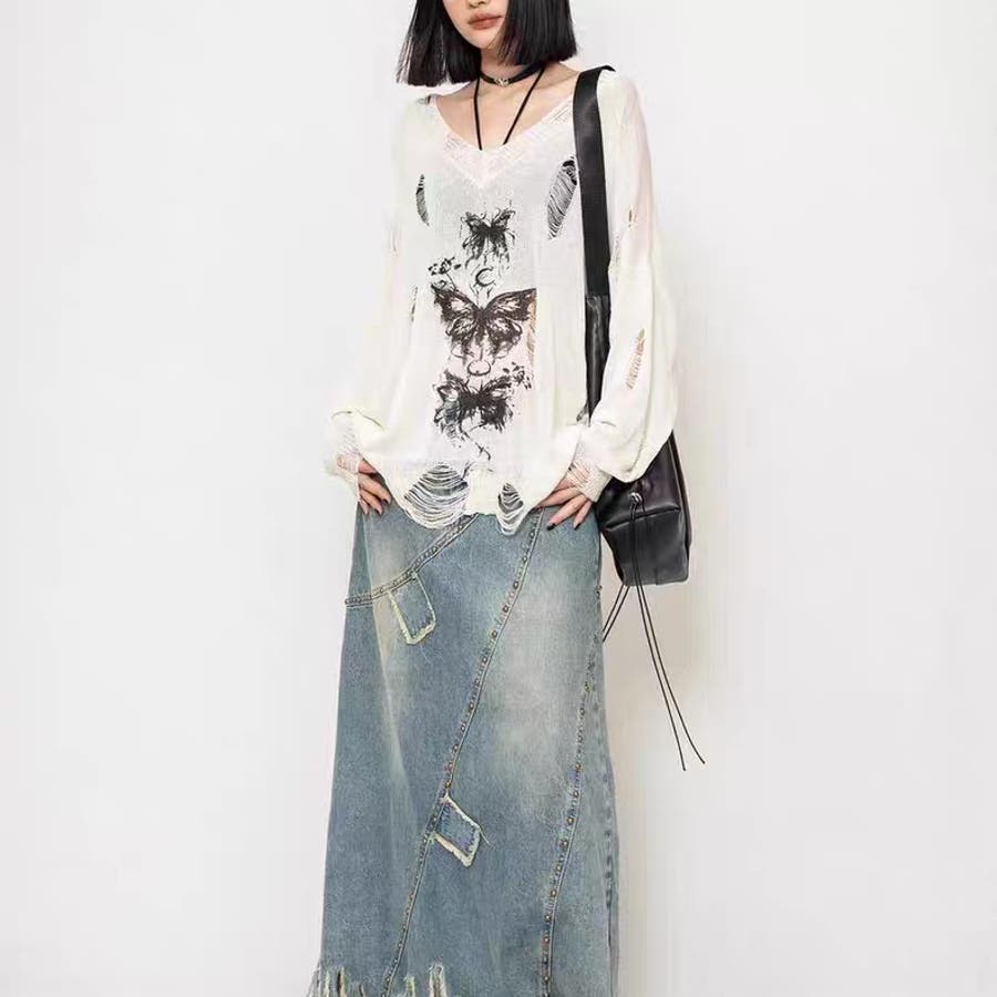 ダメージデザインが抜け感をプラスし、ガーリーにもストリートにも着まわせる万能アイテム。